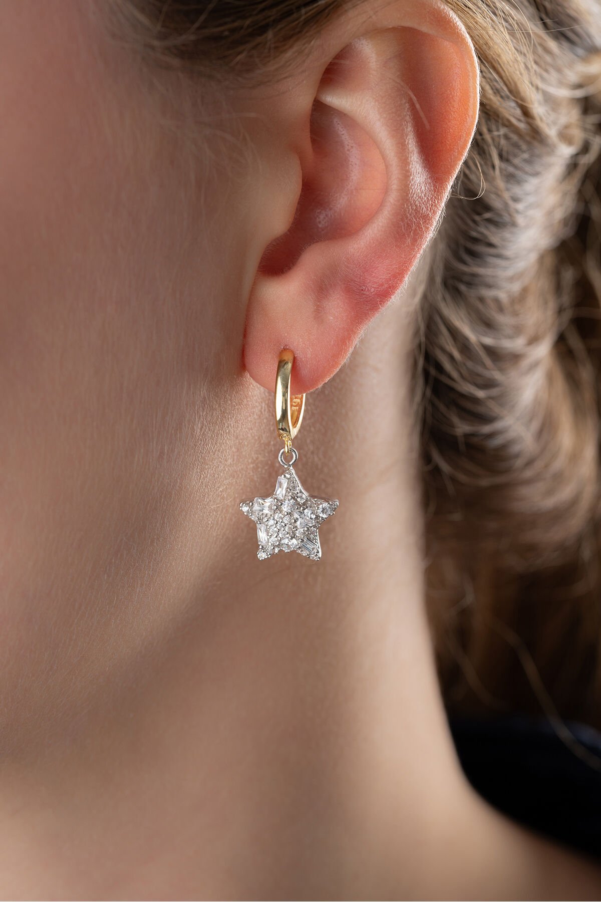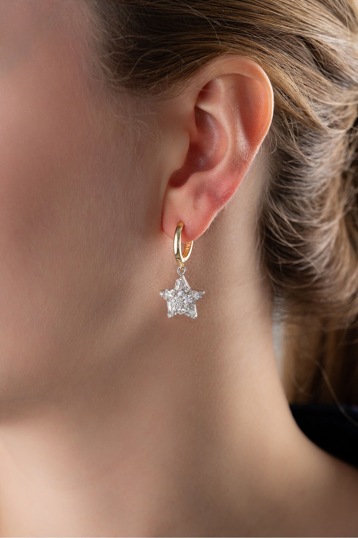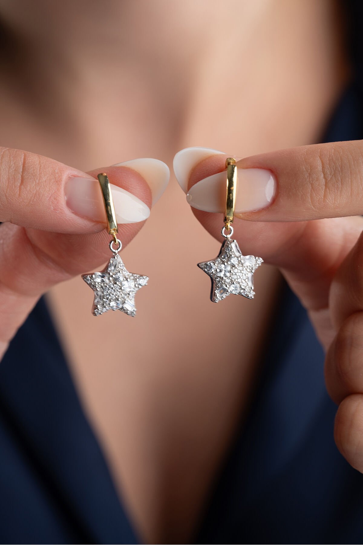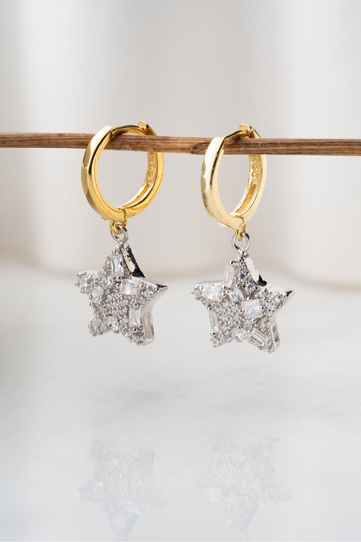 92 5Ayar Gümüş Baget Taşlı Yıldız Küpe