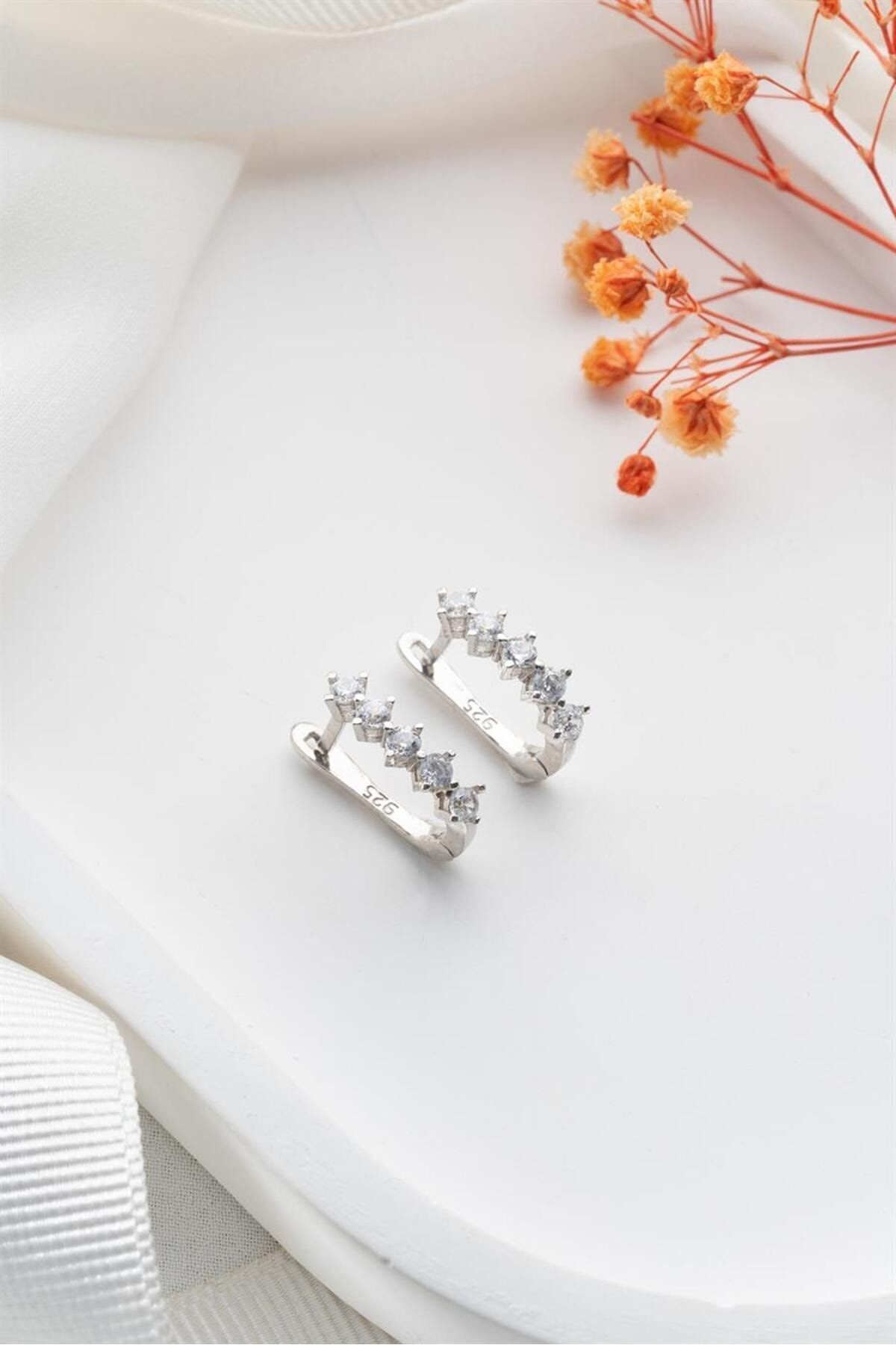 925 Ayar 5 Taşlı Tasarım Gümüş Küpe