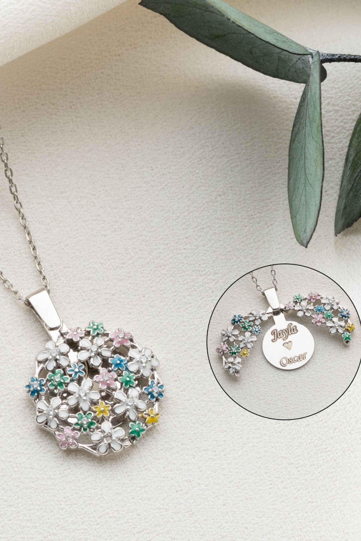 925 Ayar Açılabilen İsimli Çiçek Buketi Gümüş Kolye
