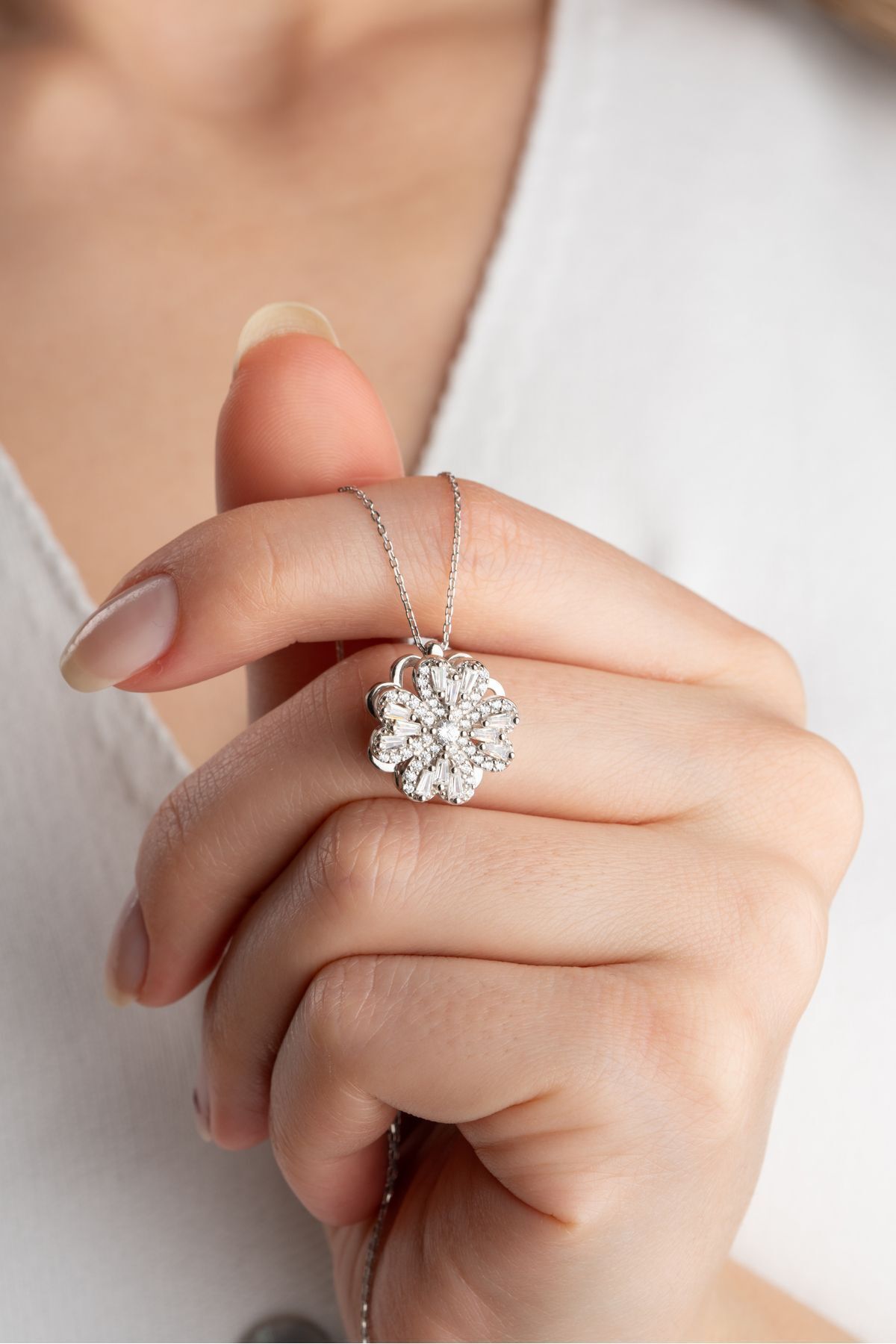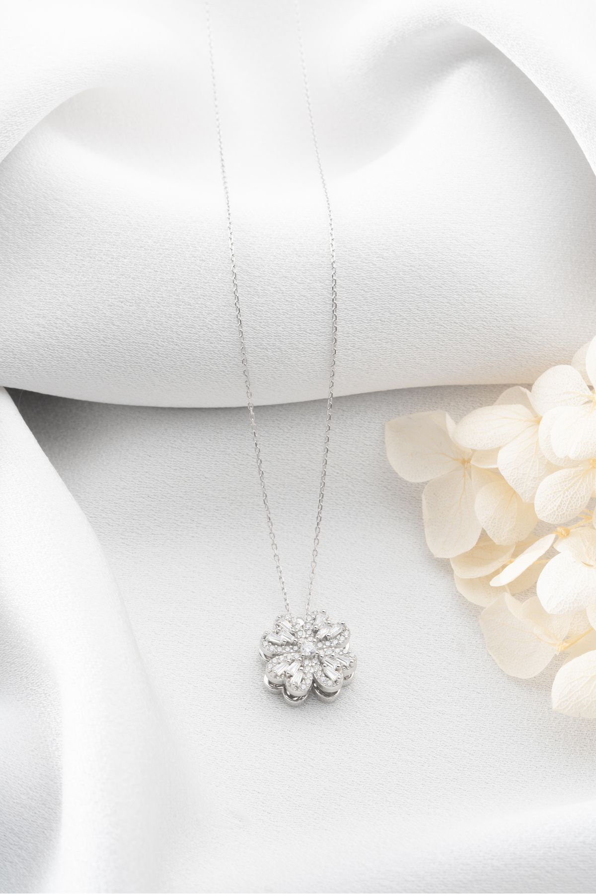 925 Ayar Dönen Yonca Gümüş Kolye