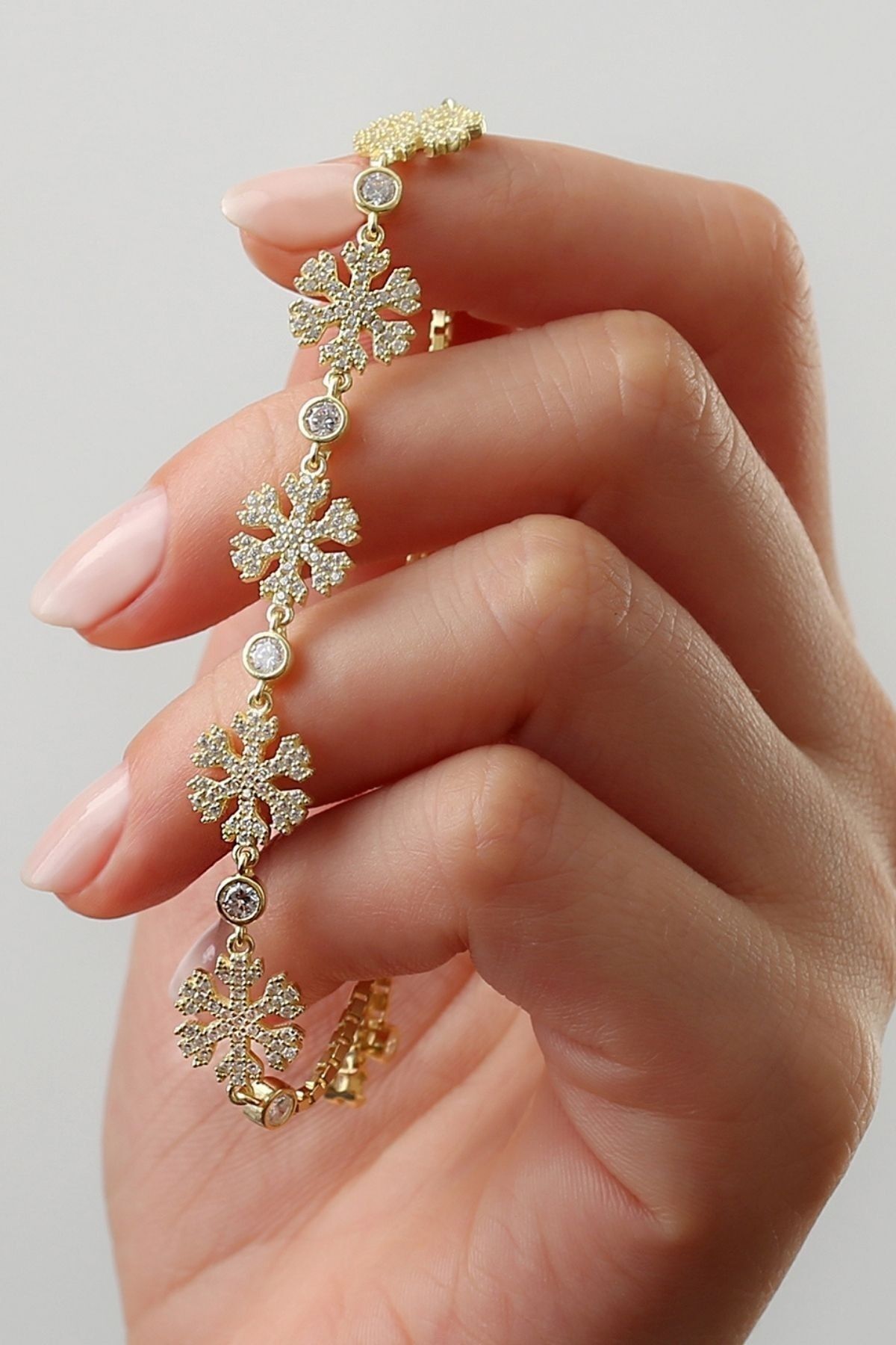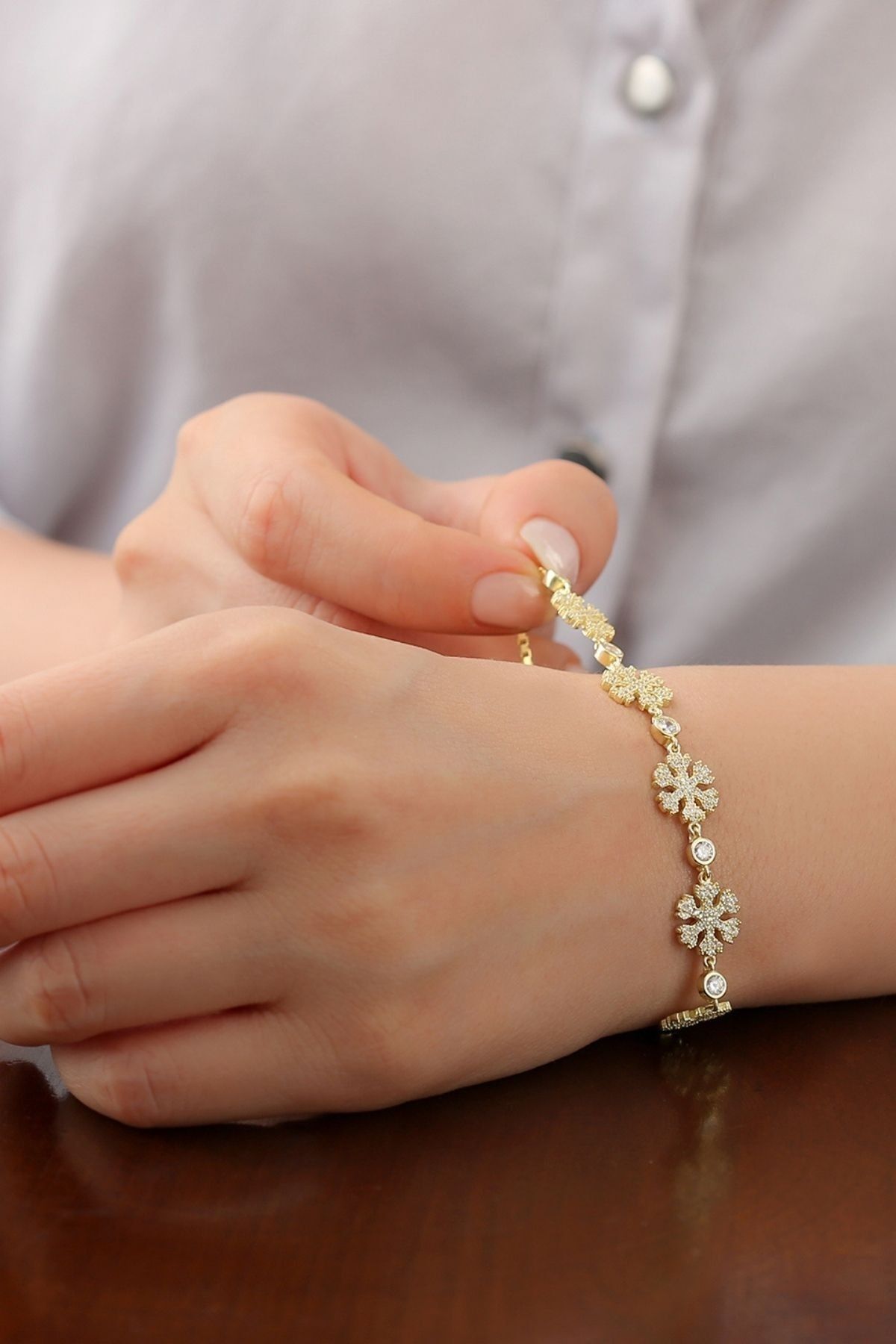 925 Ayar Gold 3'lü Kar Tanesi Gümüş Bileklik
