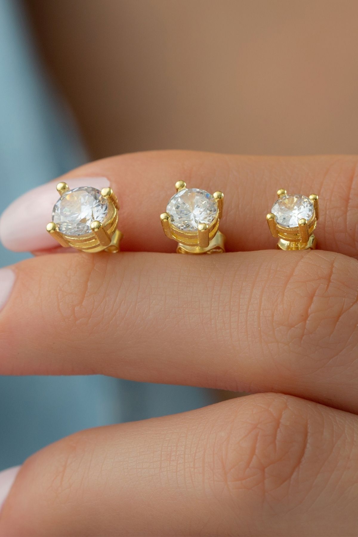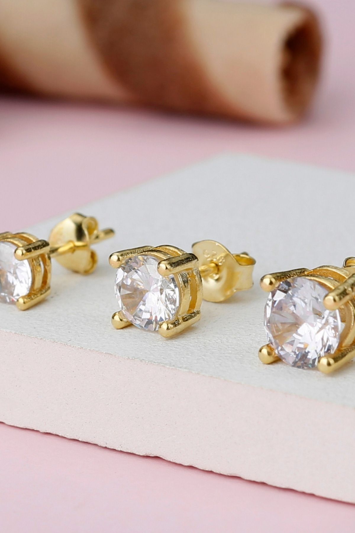 925 Ayar Gold 3'lü Tektaş Gümüş Küpe