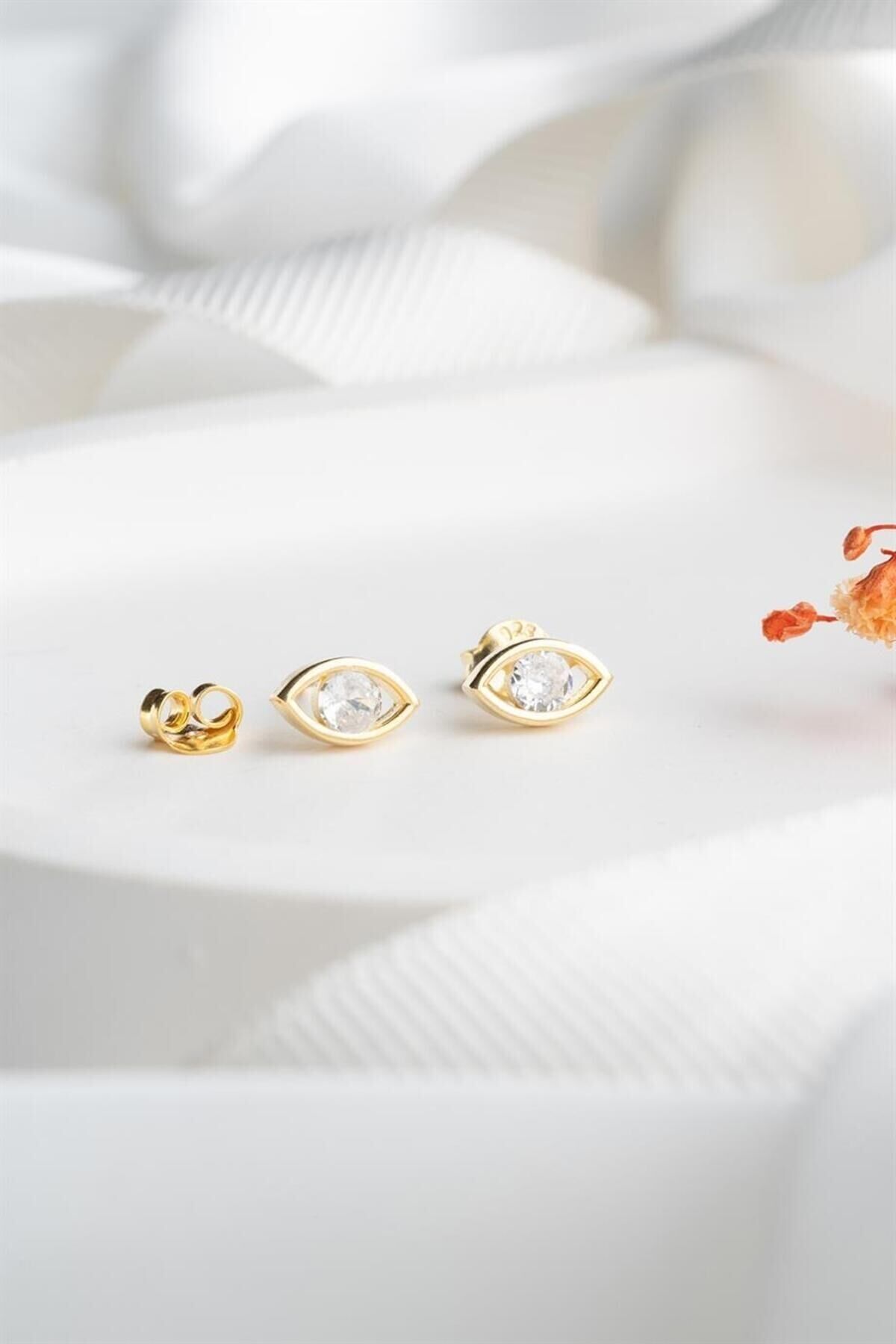 925 Ayar Gold Badem Göz Gümüş Küpe