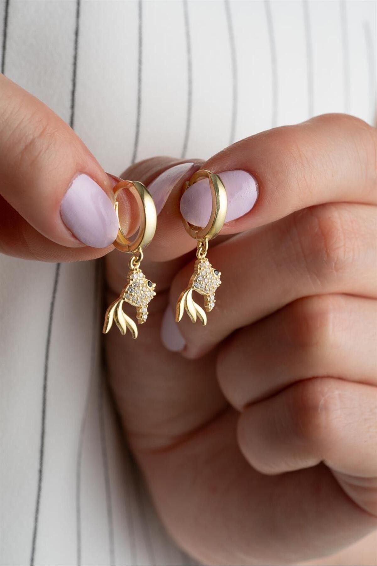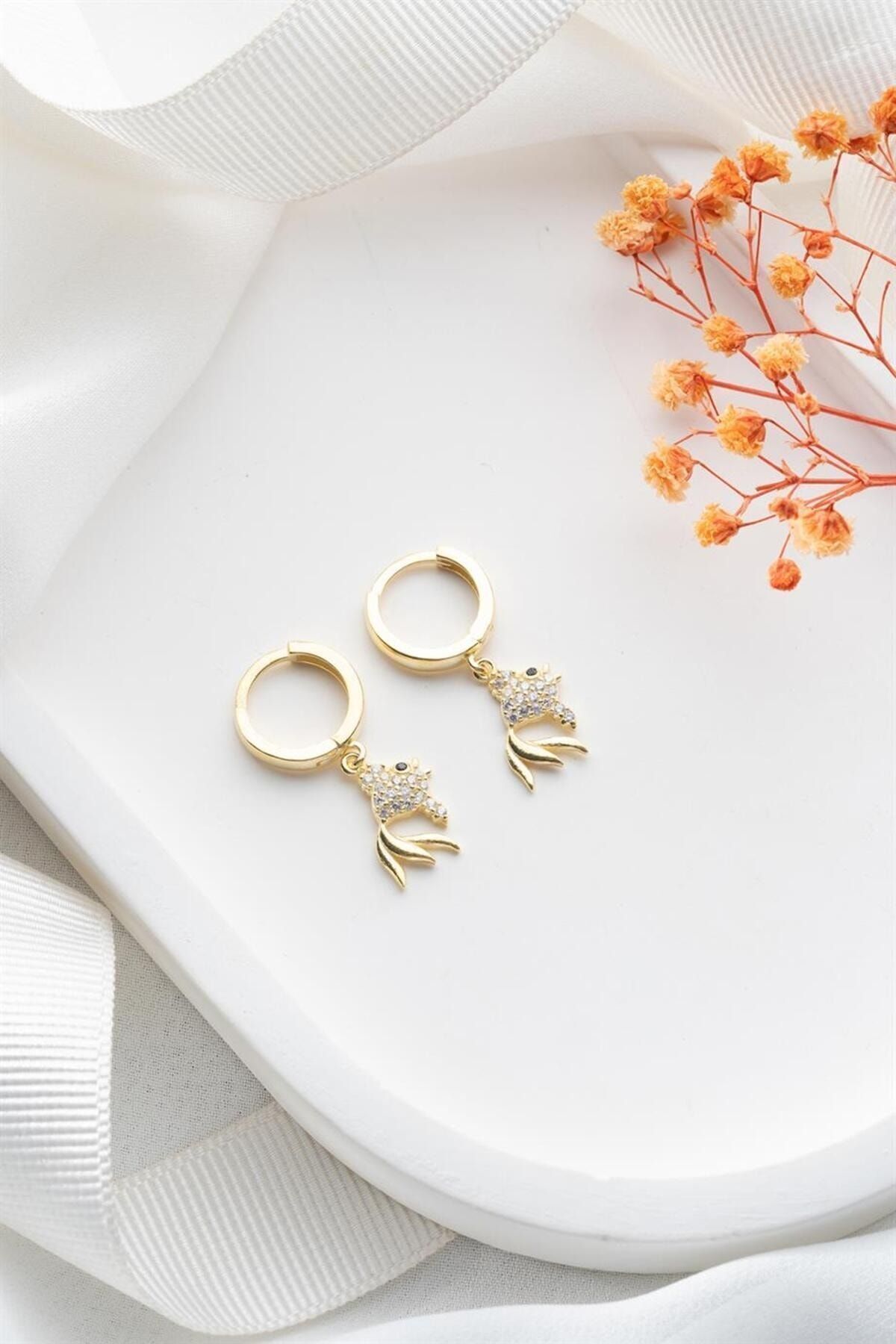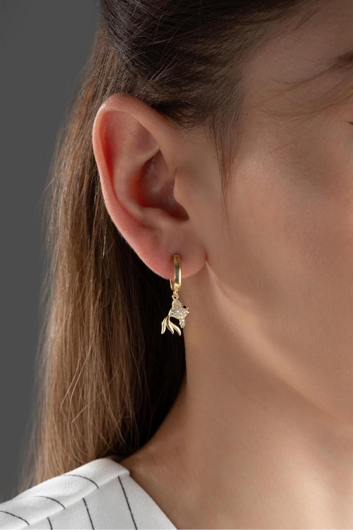 925 Ayar Gold Balık Gümüş Küpe