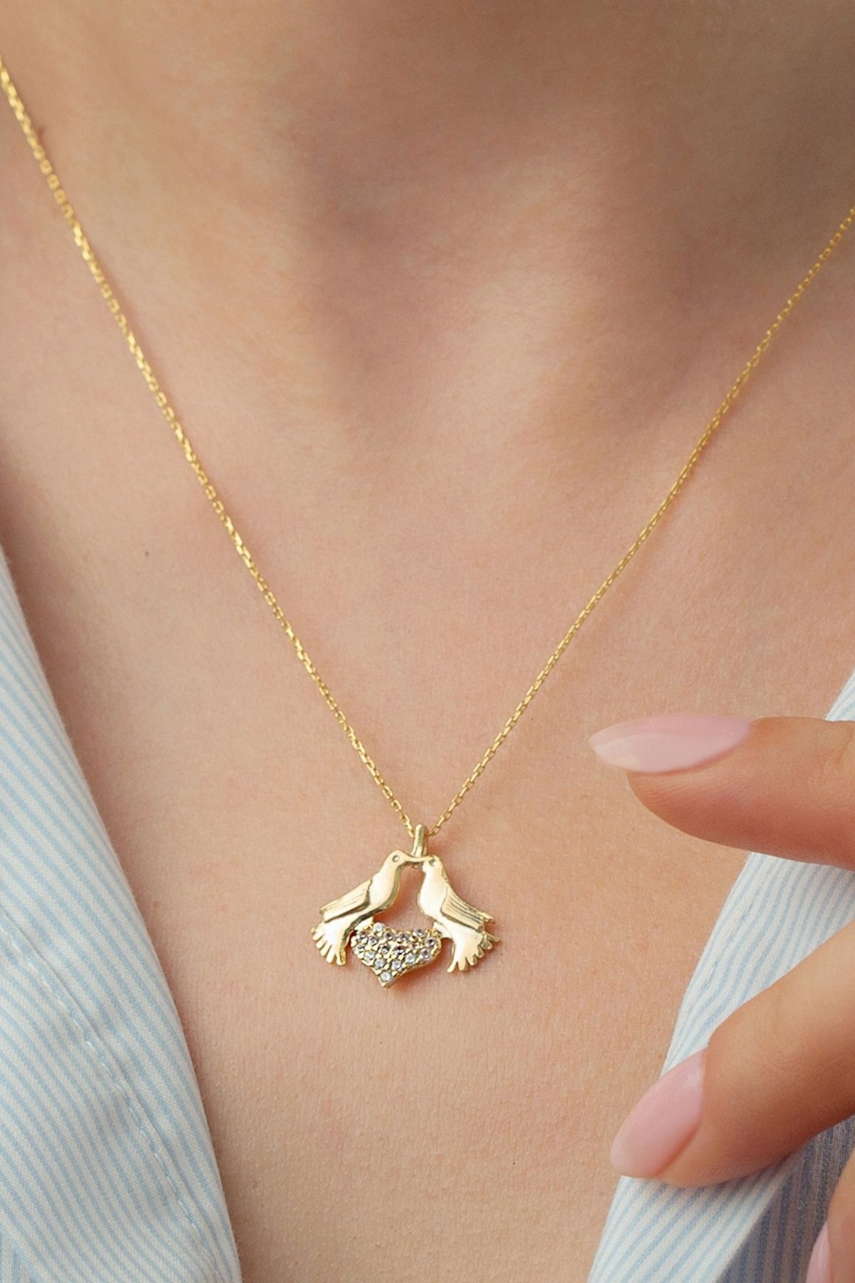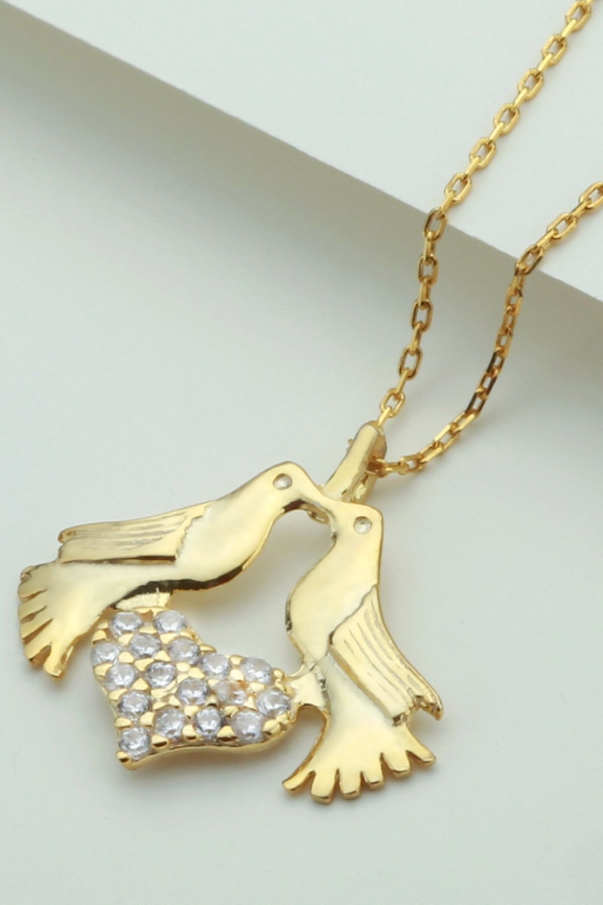 925 Ayar Gold Çifte Kumru Kalpli Gümüş Kolye