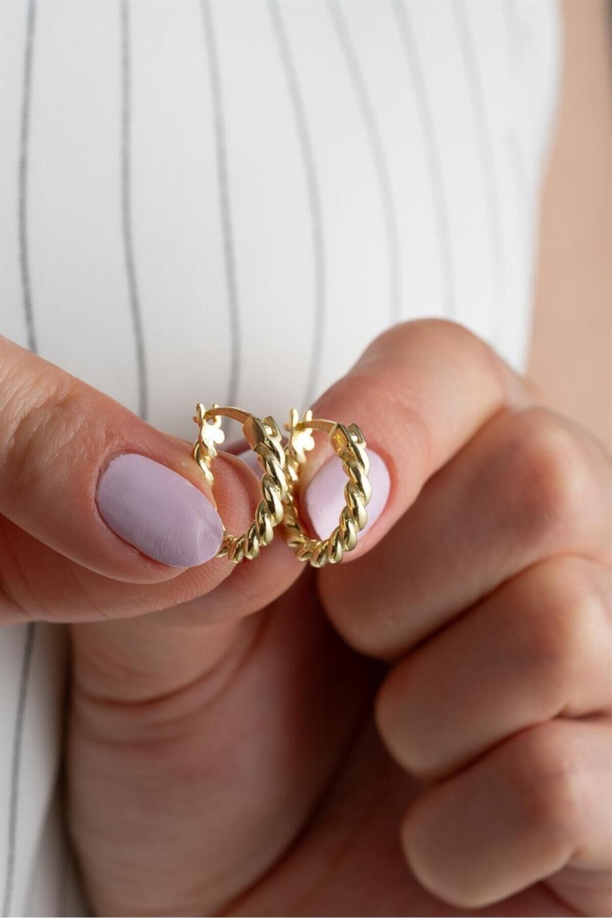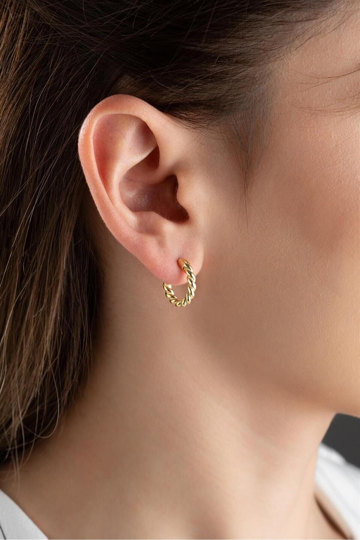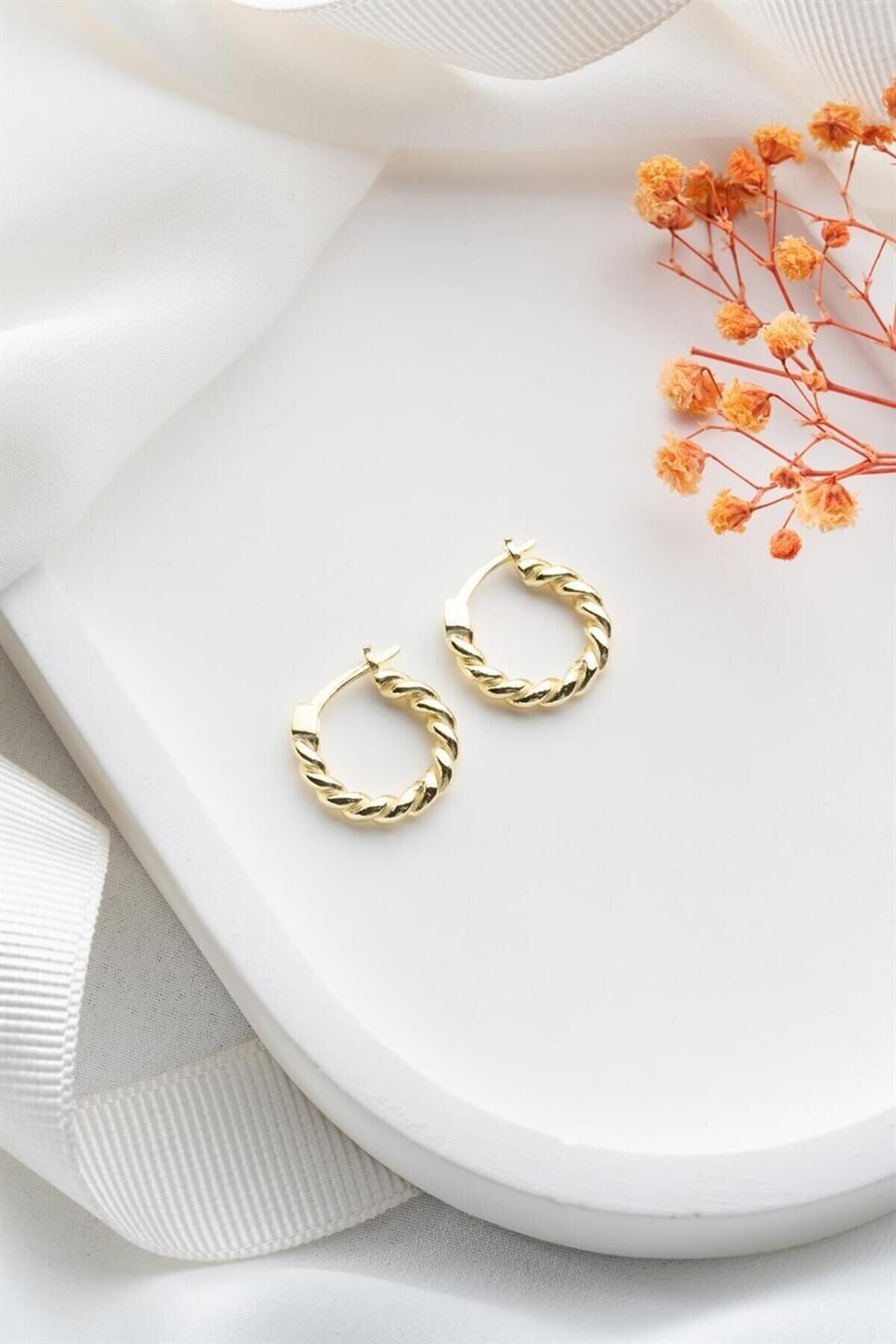 925 Ayar Gold Desenli Halka Gümüş Küpe