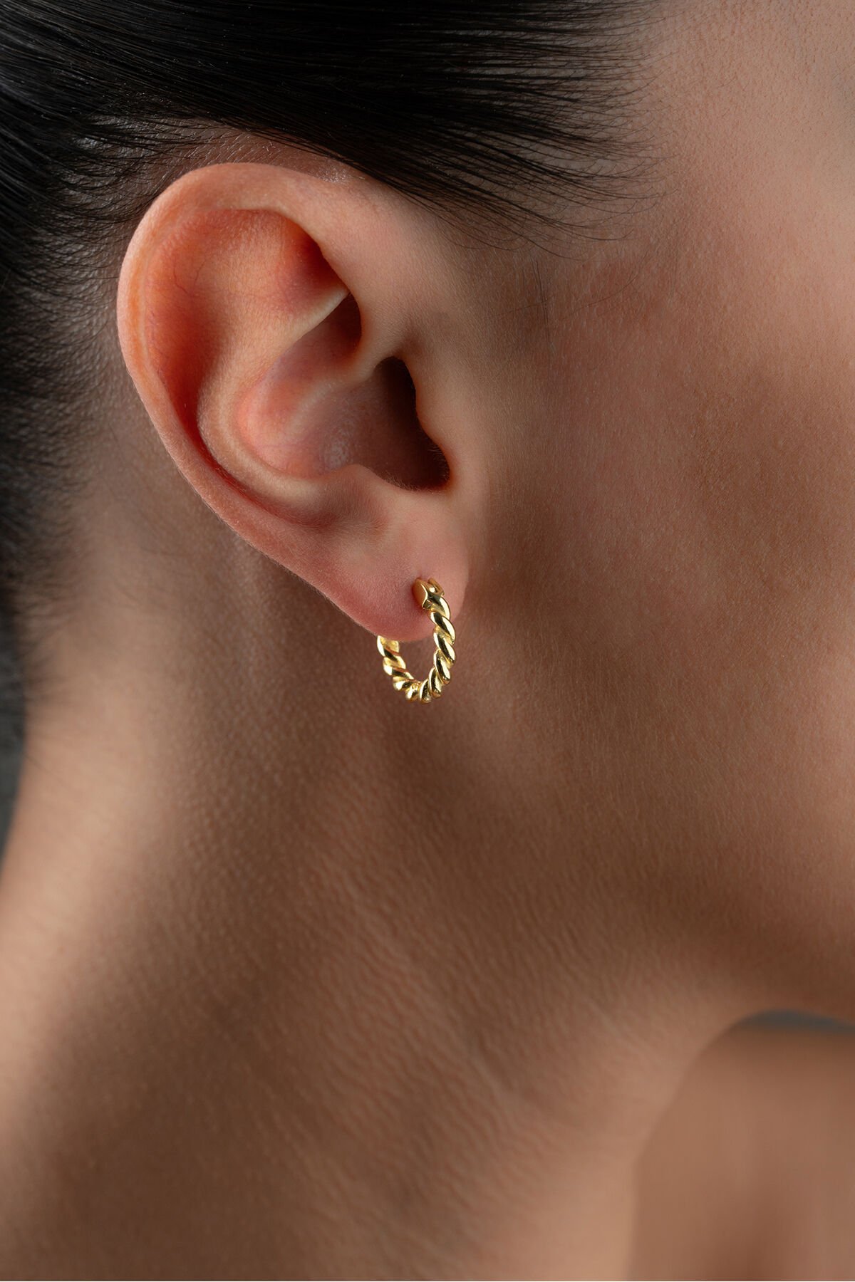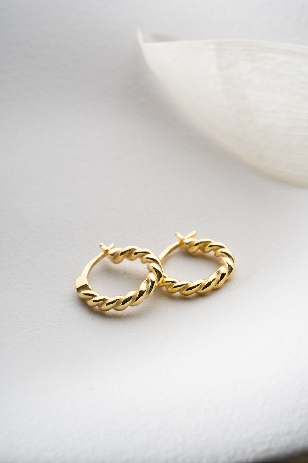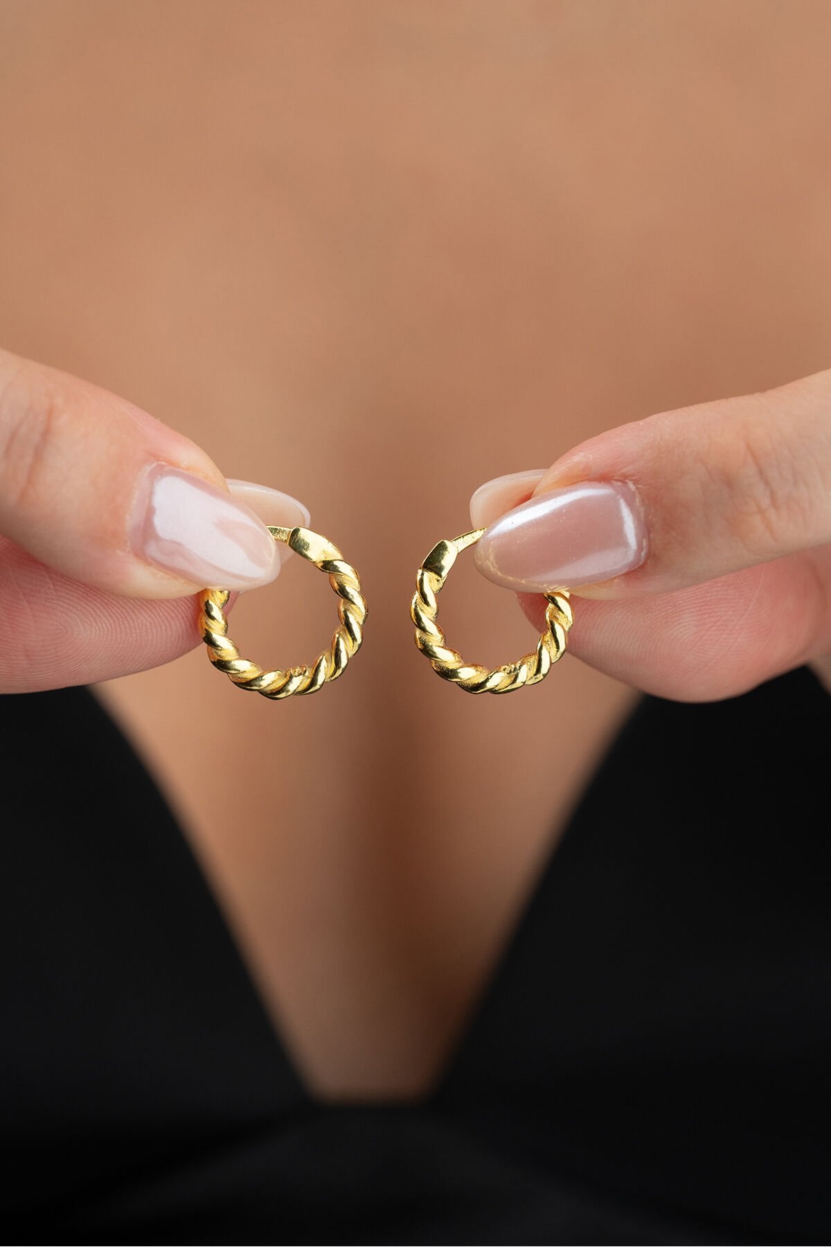 925 Ayar Gold Desenli Halka Gümüş Küpe