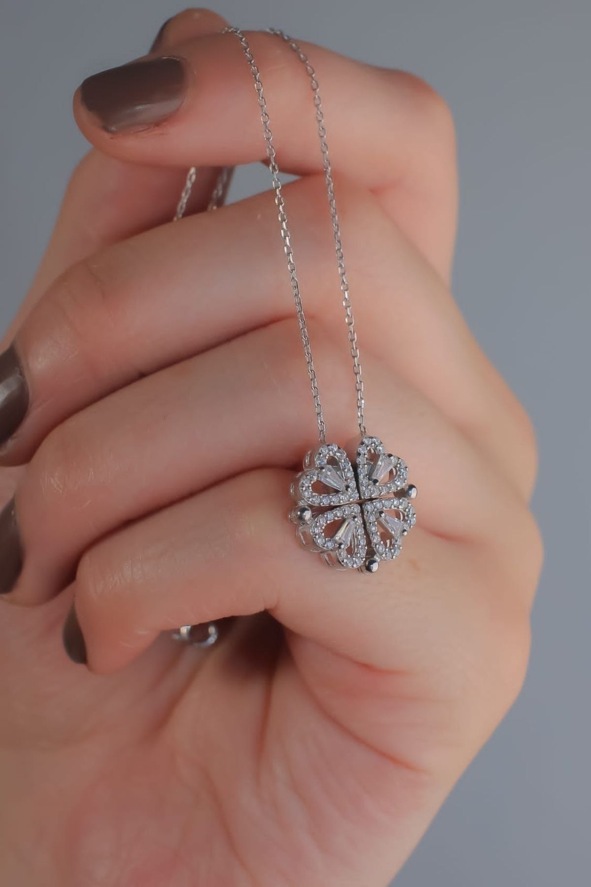 925 Ayar Gold Gümüş Açılan Kalpli Yonca Kolye