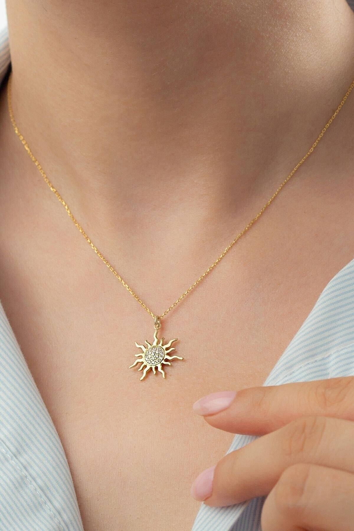 925 Ayar Gold Gümüş Güneş Kolye