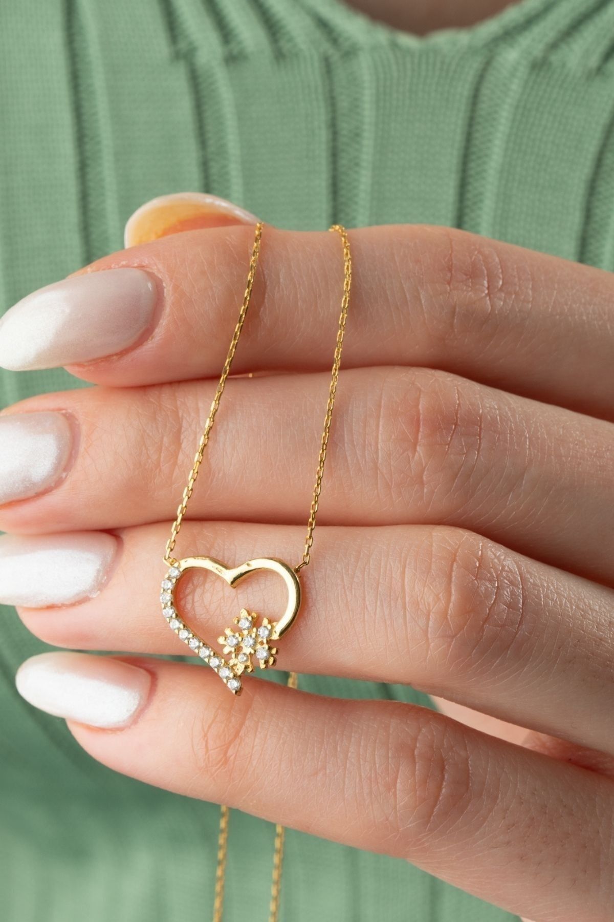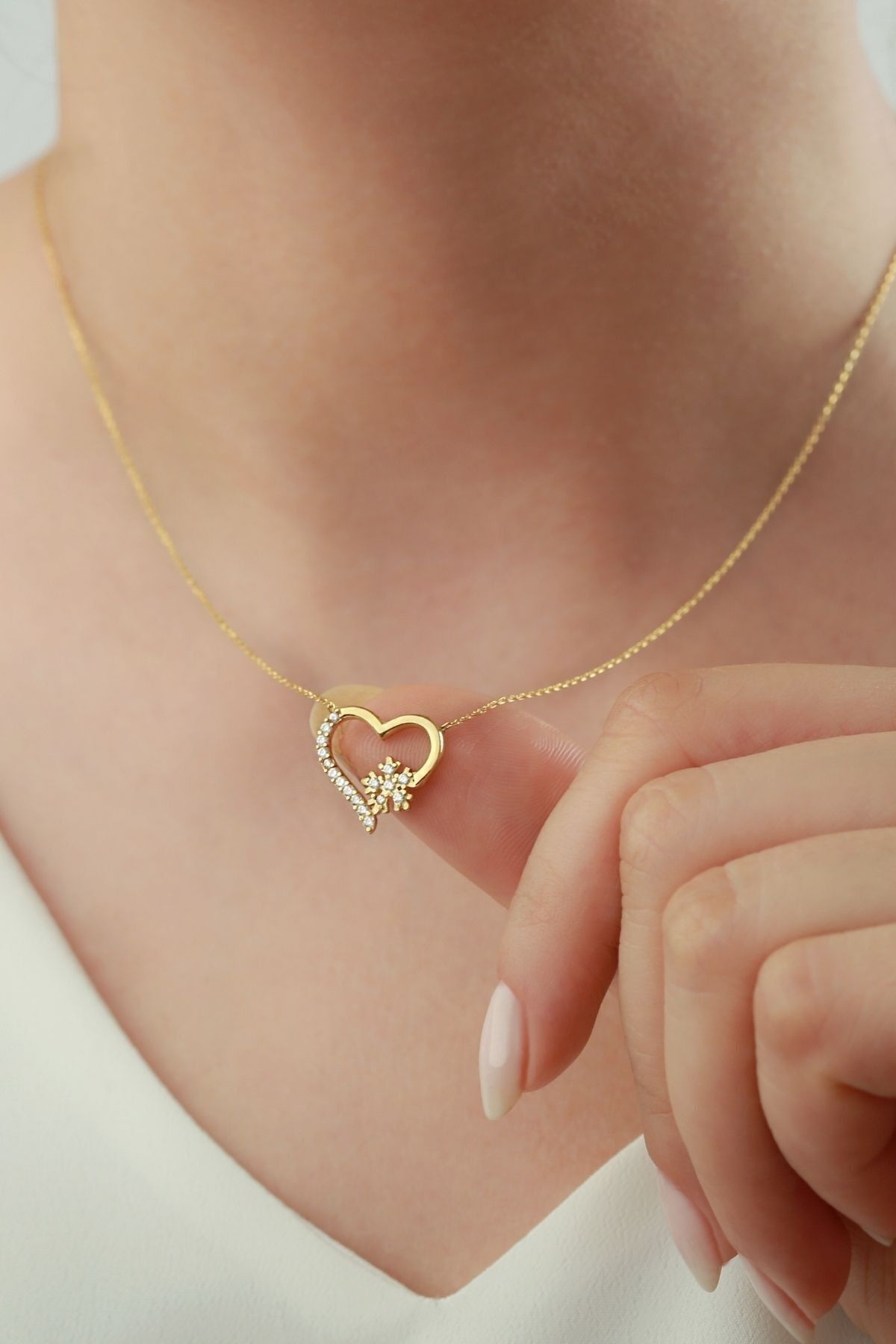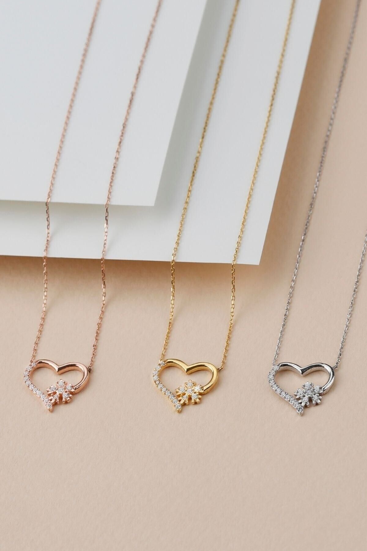 925 Ayar Gold Gümüş Kalpli Kartanesi Kolye