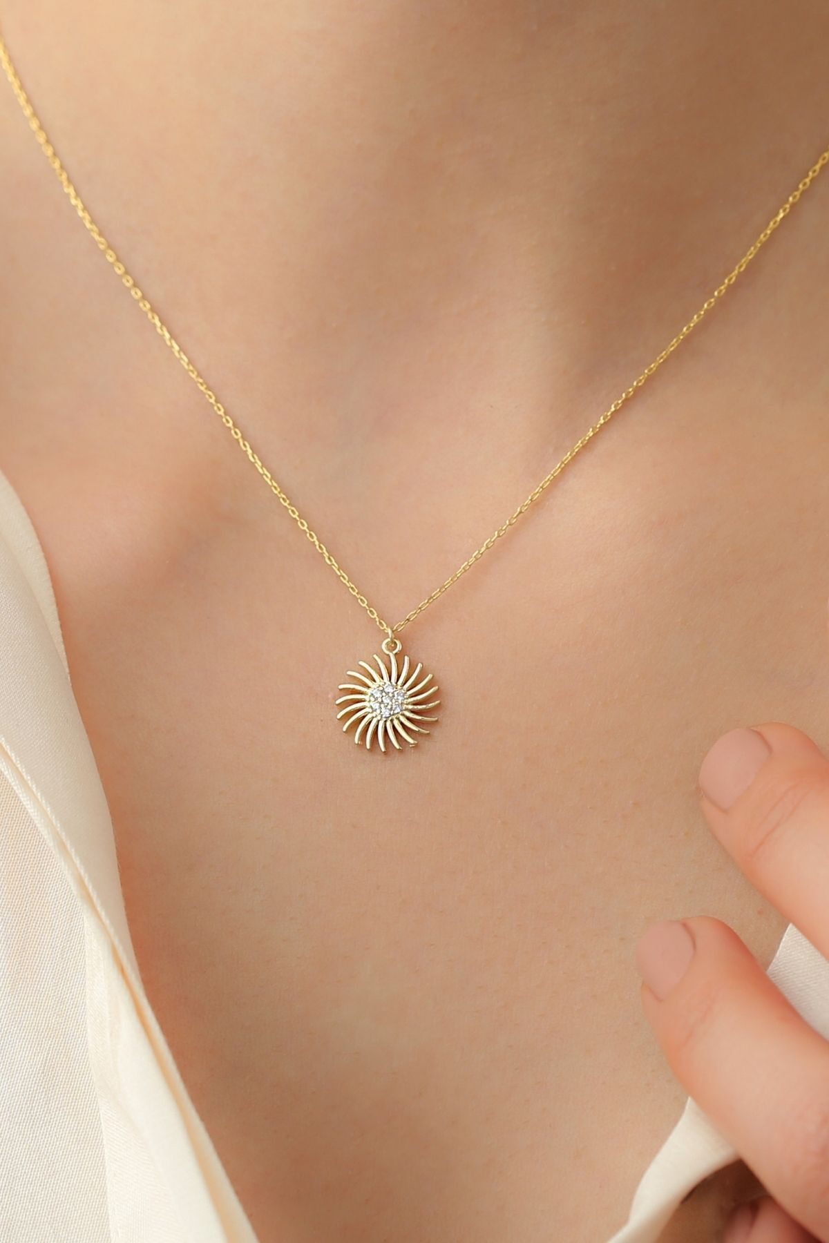 925 Ayar Gold Güneş Gümüş Kolye
