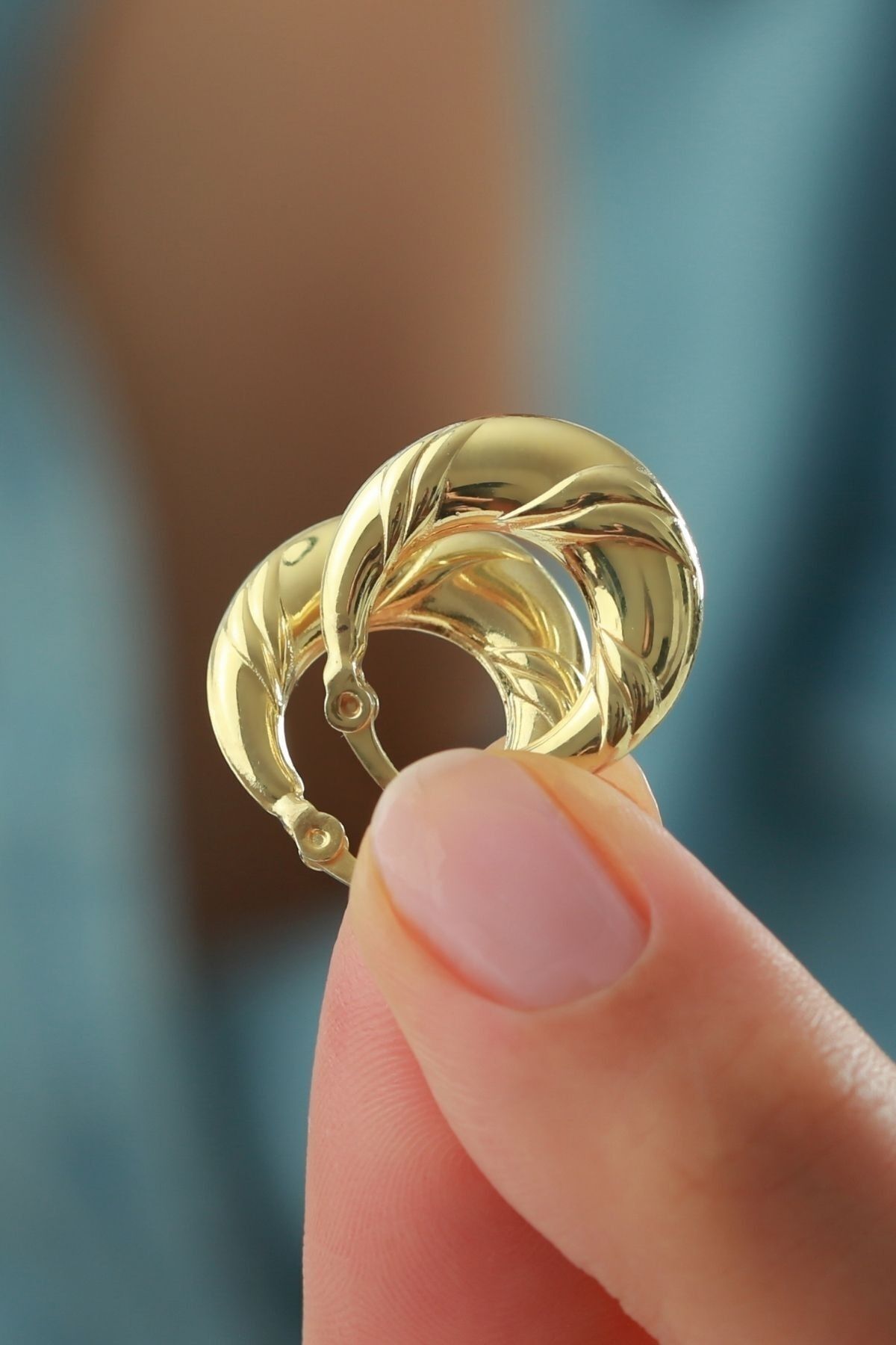 925 Ayar Gold Hilal Desenli Gümüş Küpe