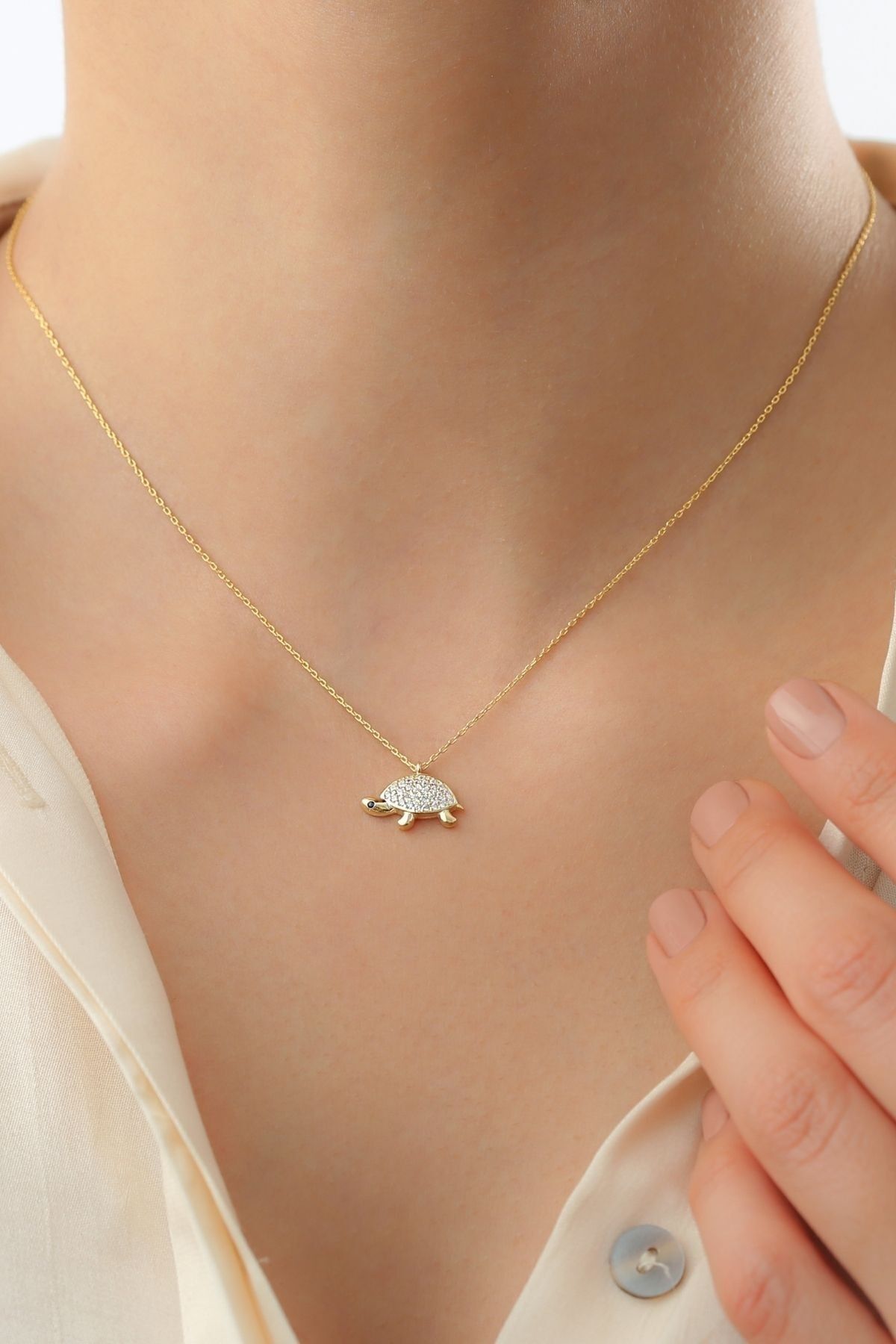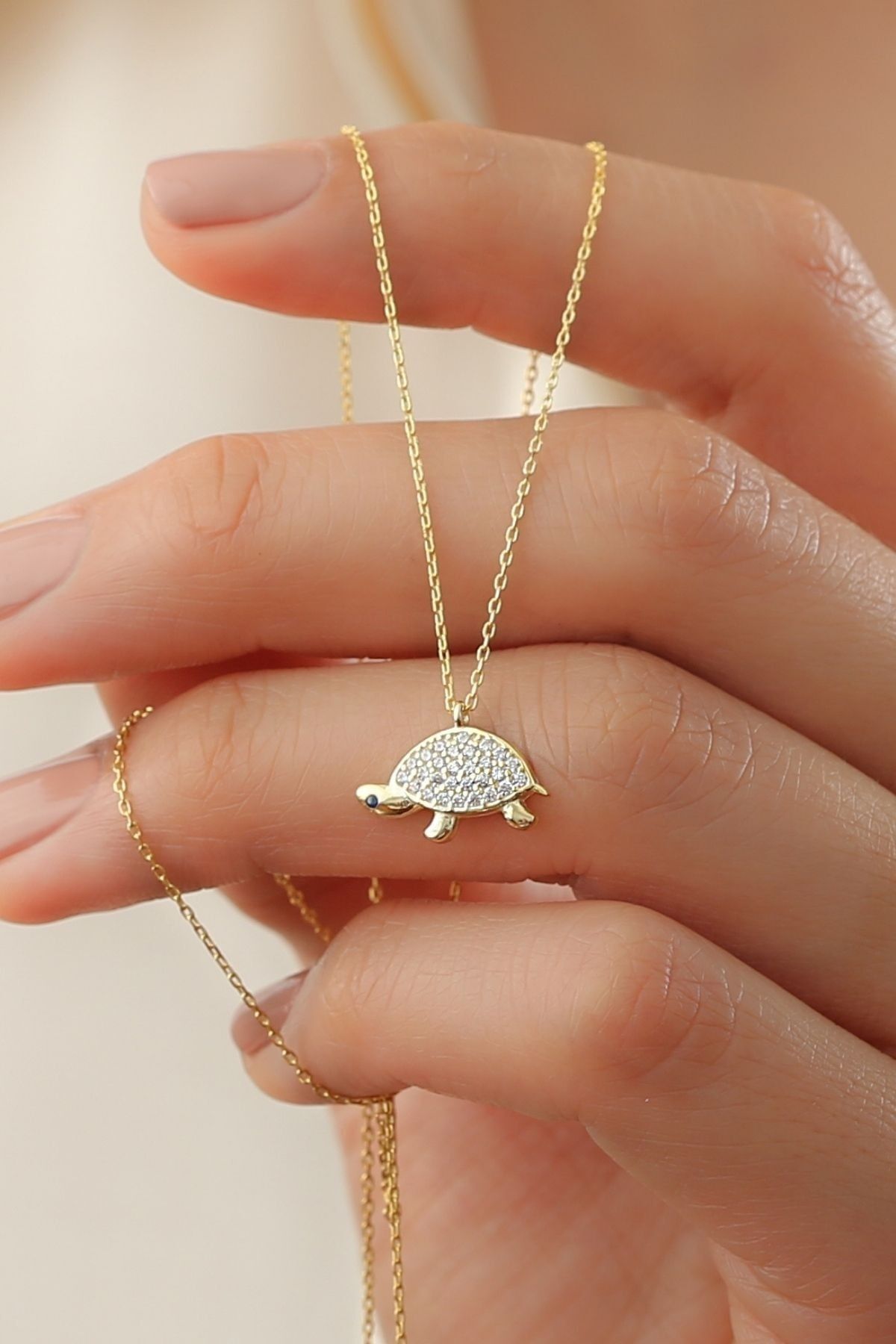 925 Ayar Gold Kaplumbağa Gümüş Kolye