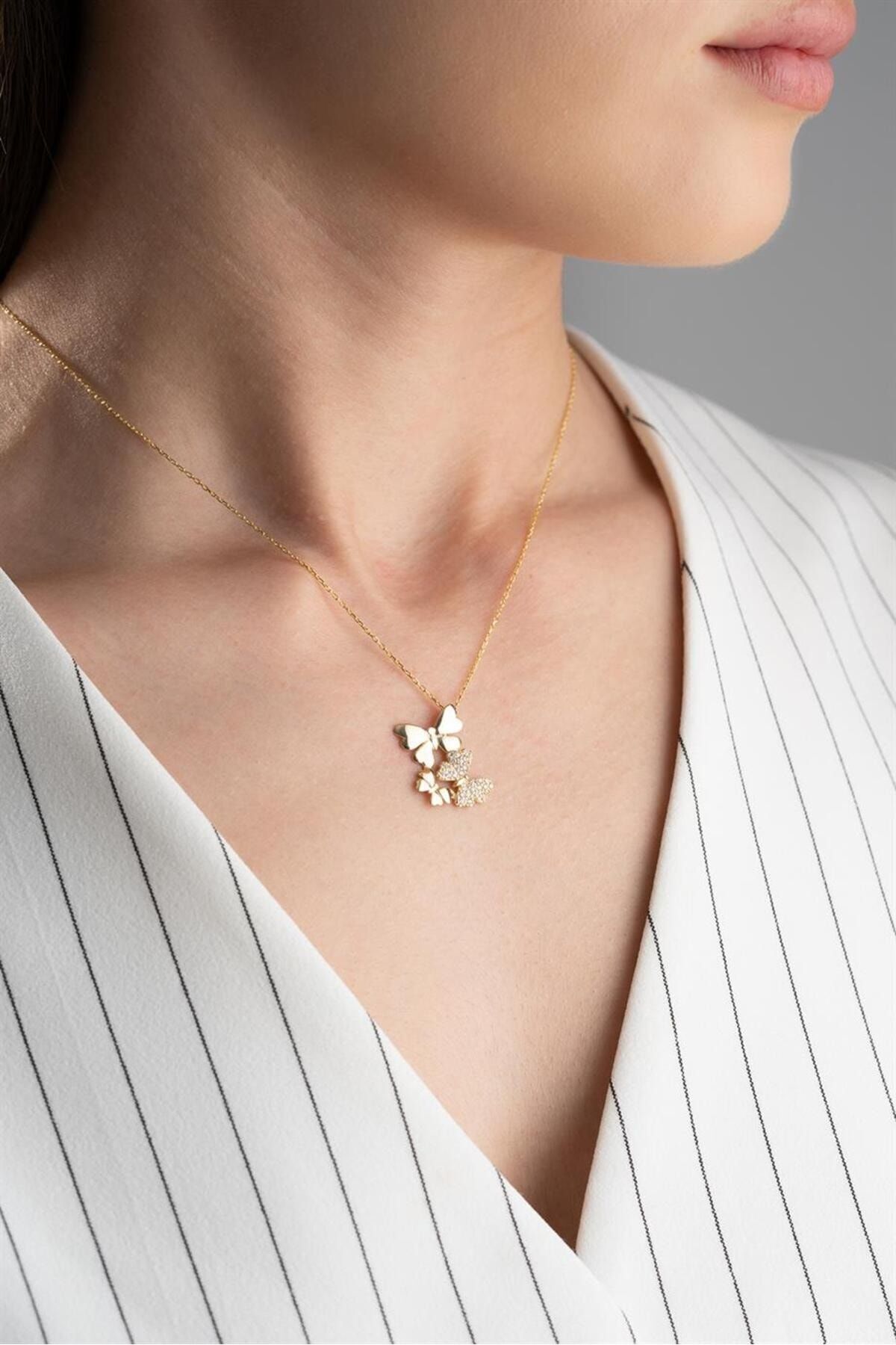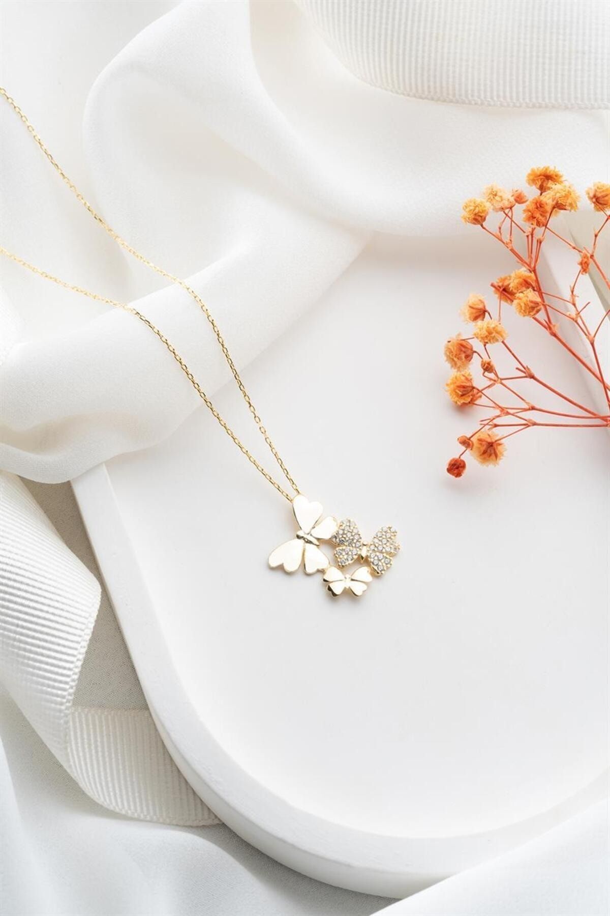 925 Ayar Gold Kelebek Gümüş Kolye