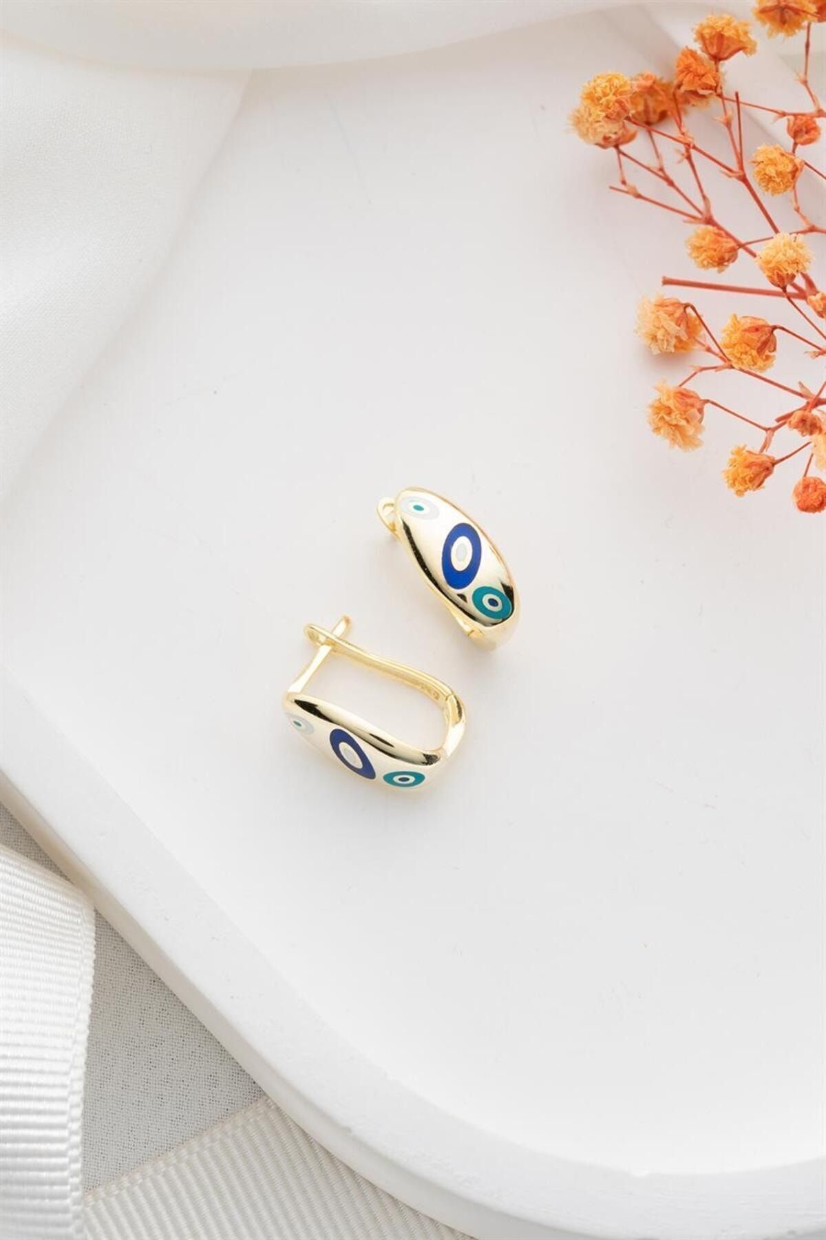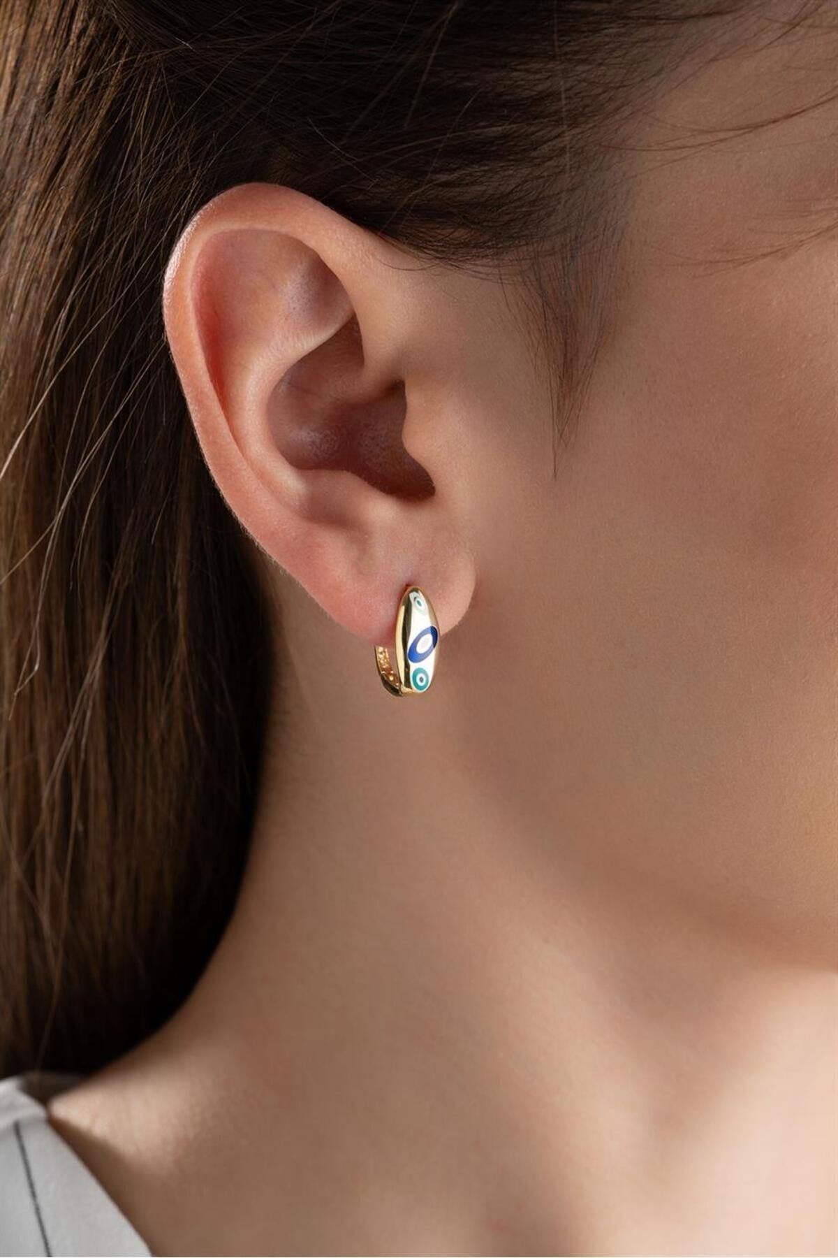 925 Ayar Gold Mineli Nazar Gümüş Küpe