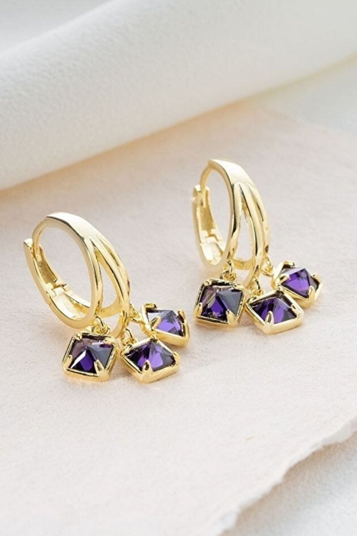 925 Ayar Gold Mor Taşlı Gümüş Küpe