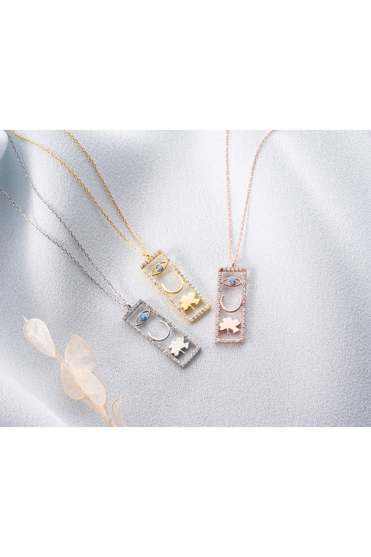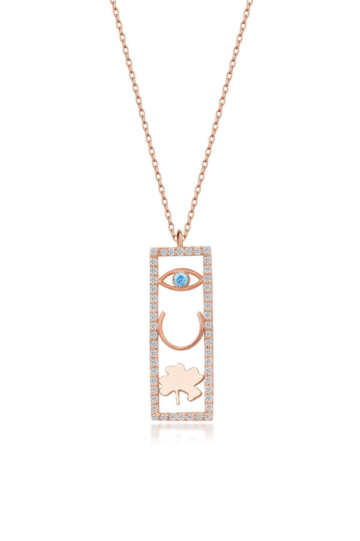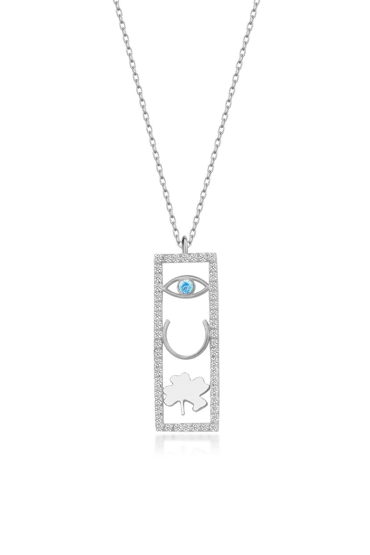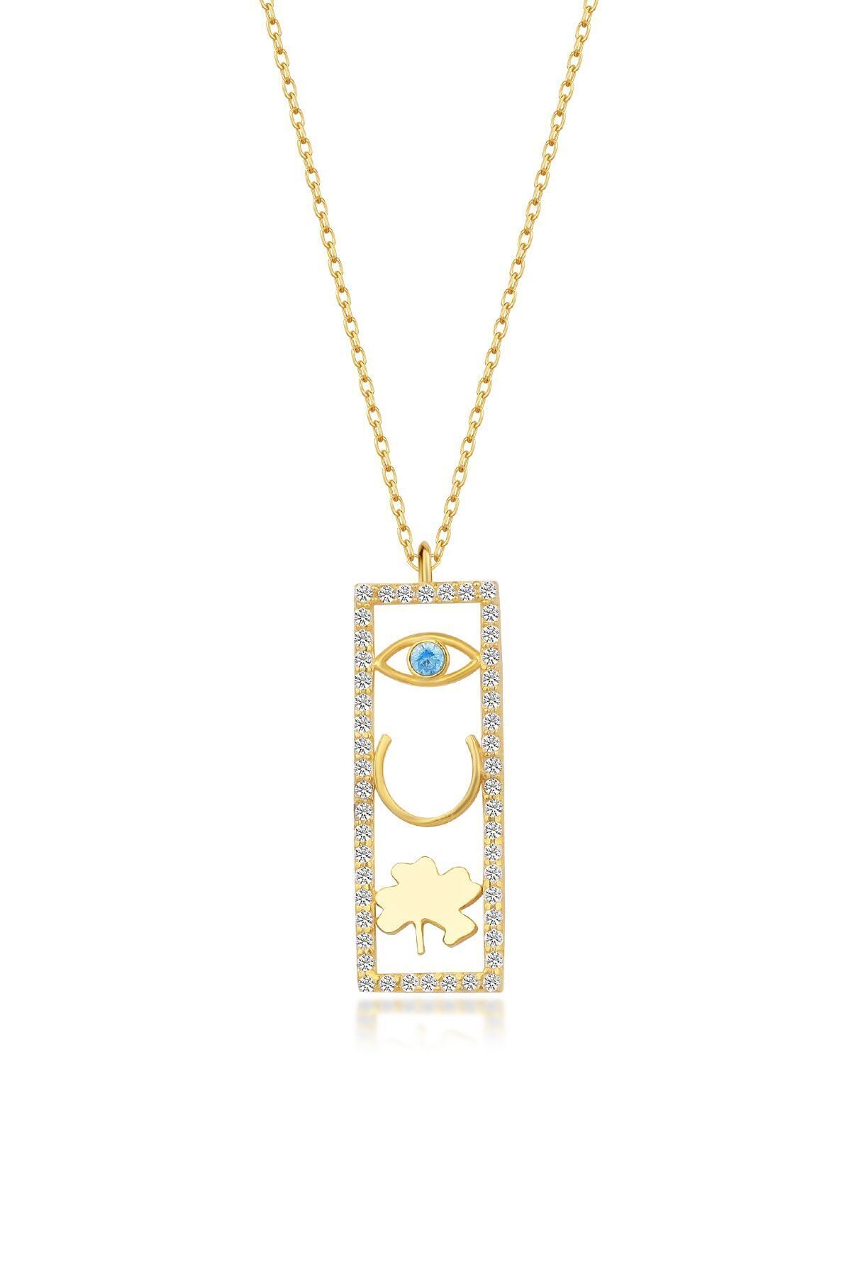 925 Ayar Gold Plaka Şans Gümüş Kolye