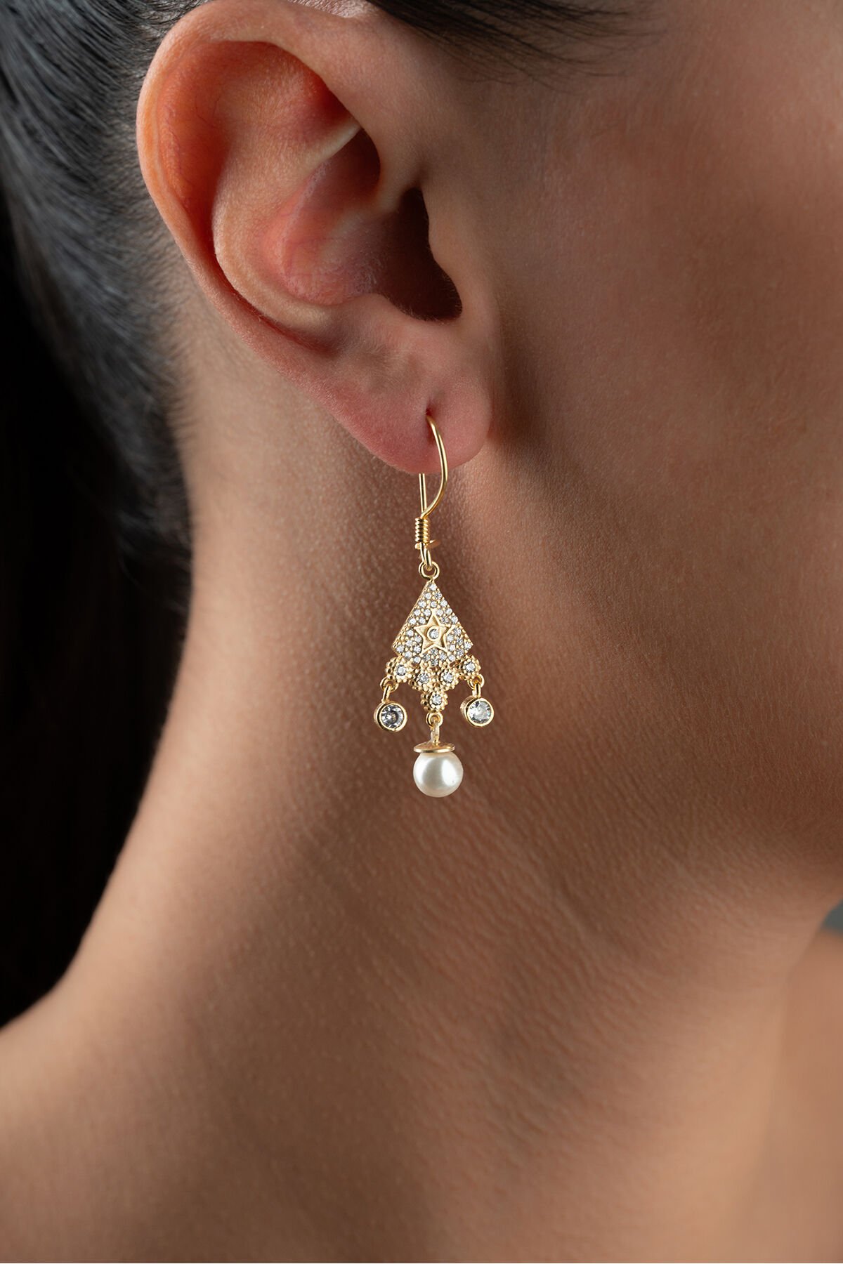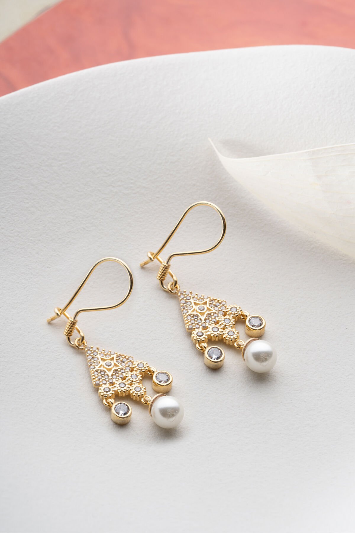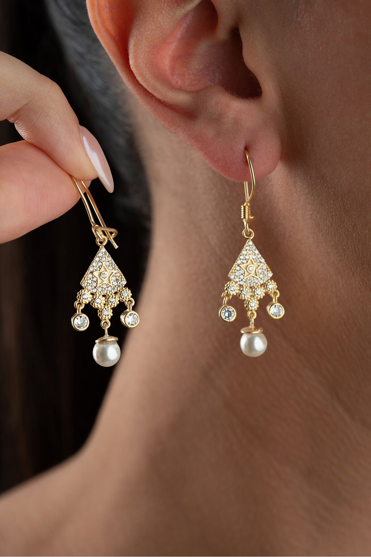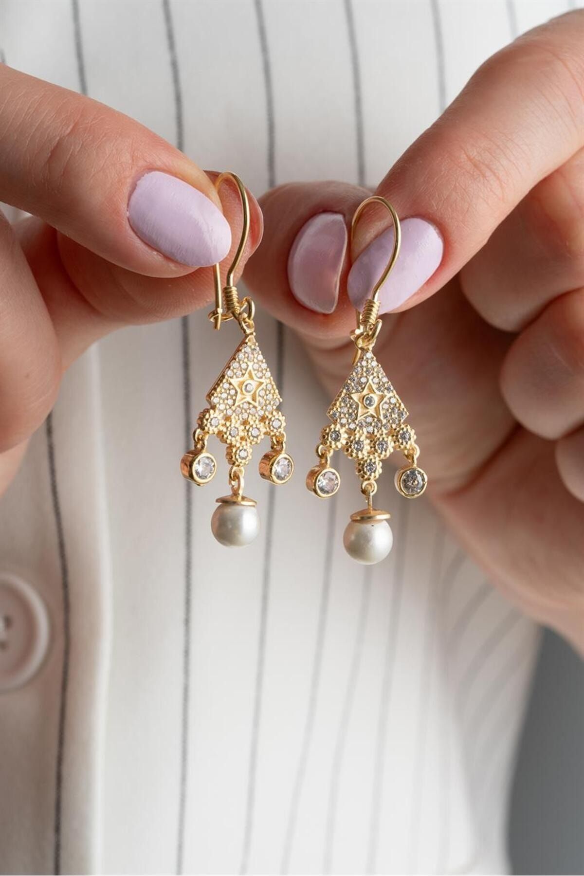 925 Ayar Gold Sallantılı İnci Gümüş Küpe