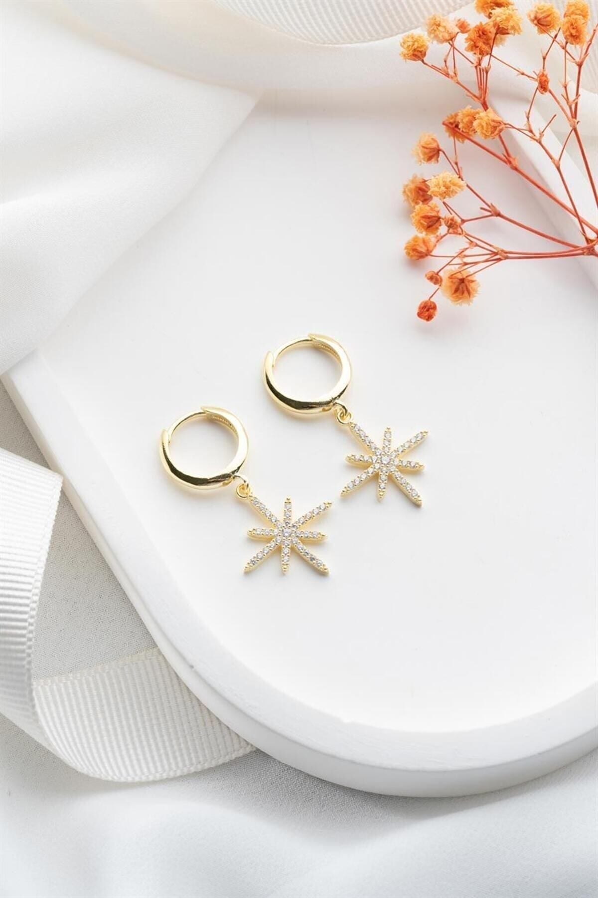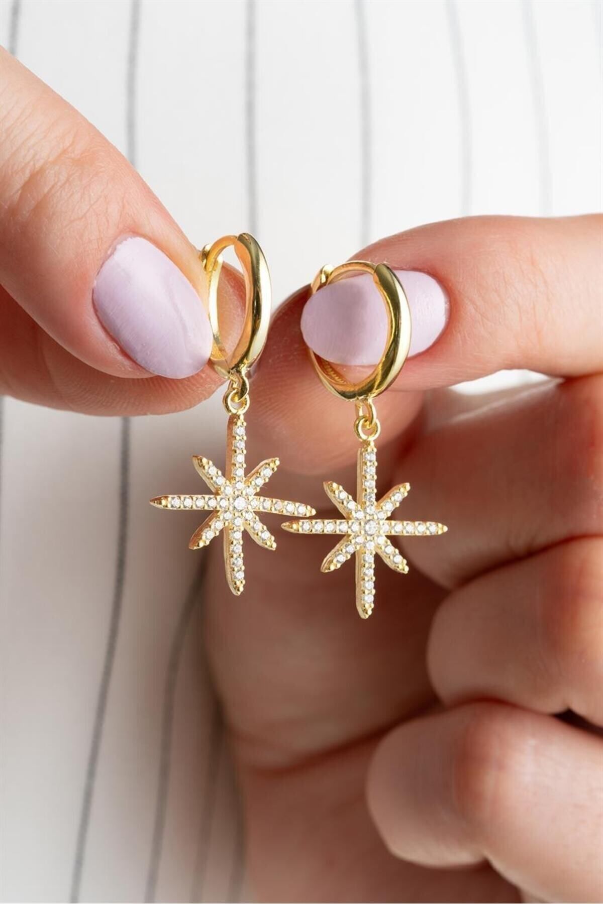 925 Ayar Gold Sallantılı Kutup Yıldızı Gümüş Küpe