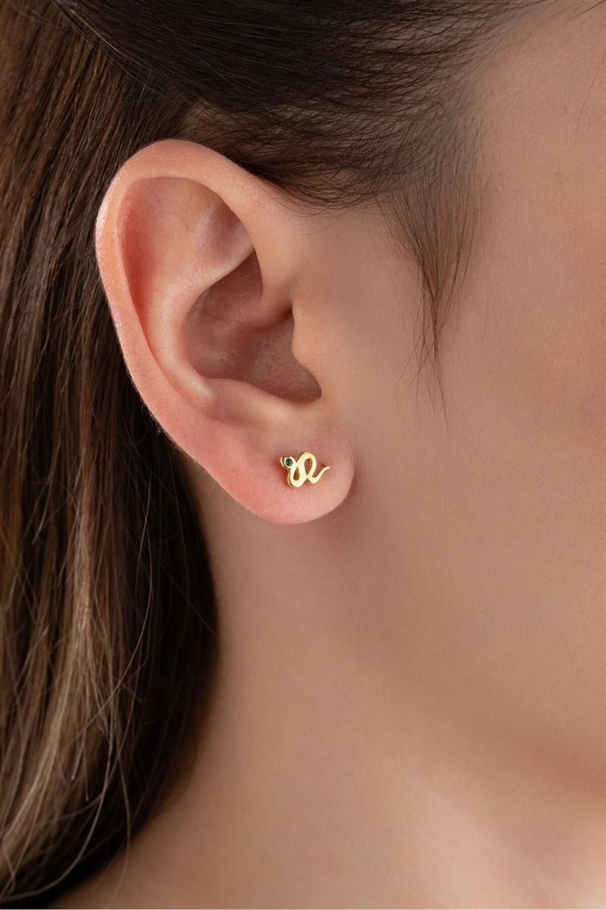 925 Ayar Gold Yılan Gümüş Küpe