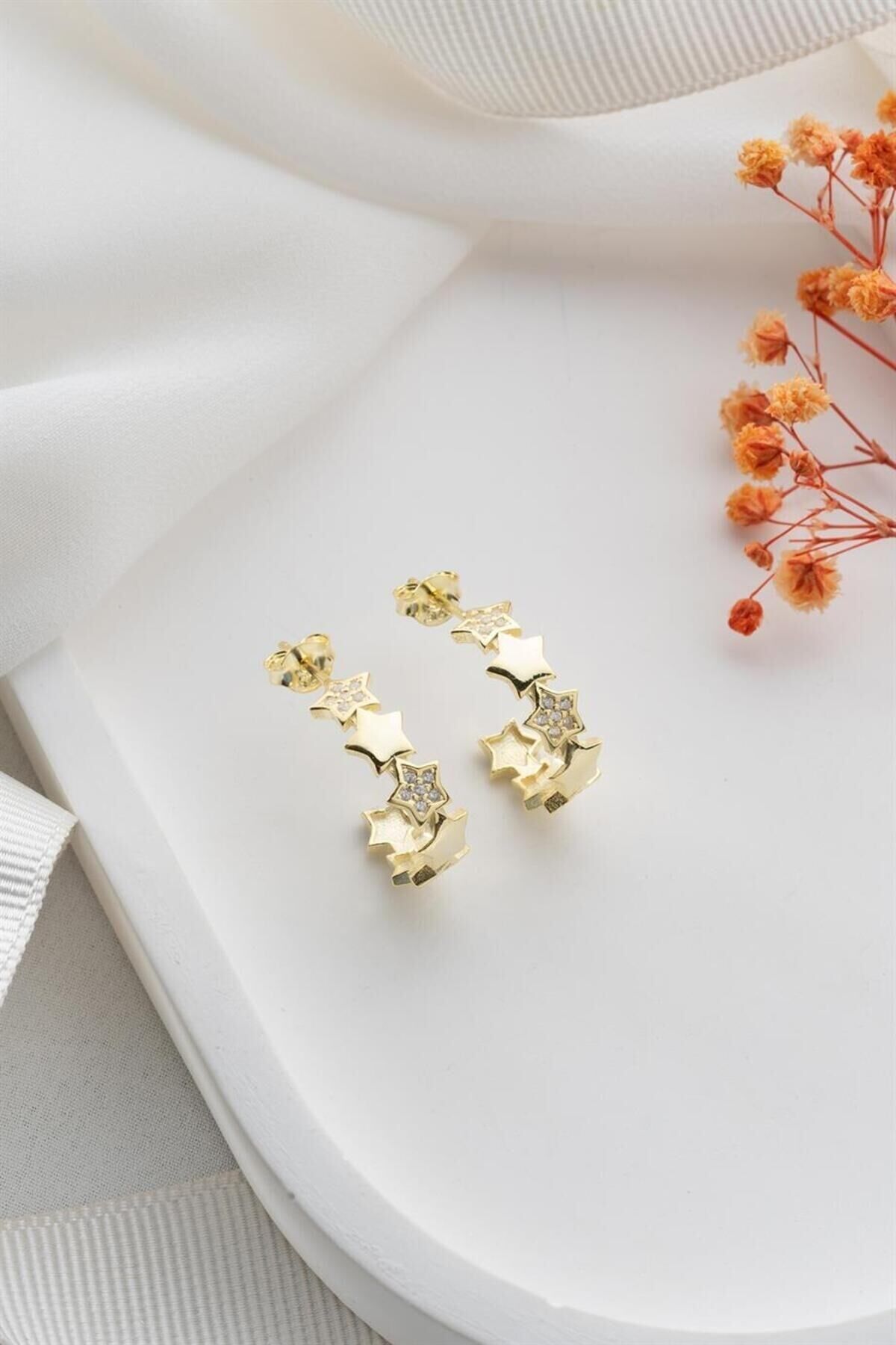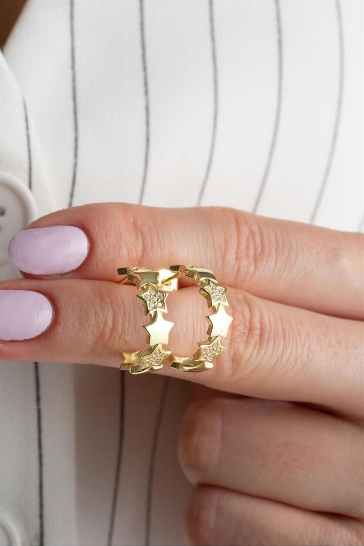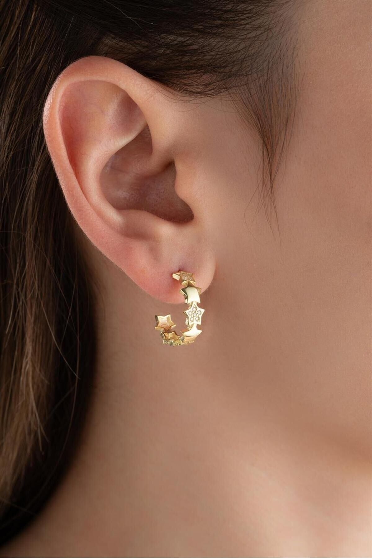 925 Ayar Gold Yıldızlı Halka Gümüş Küpe
