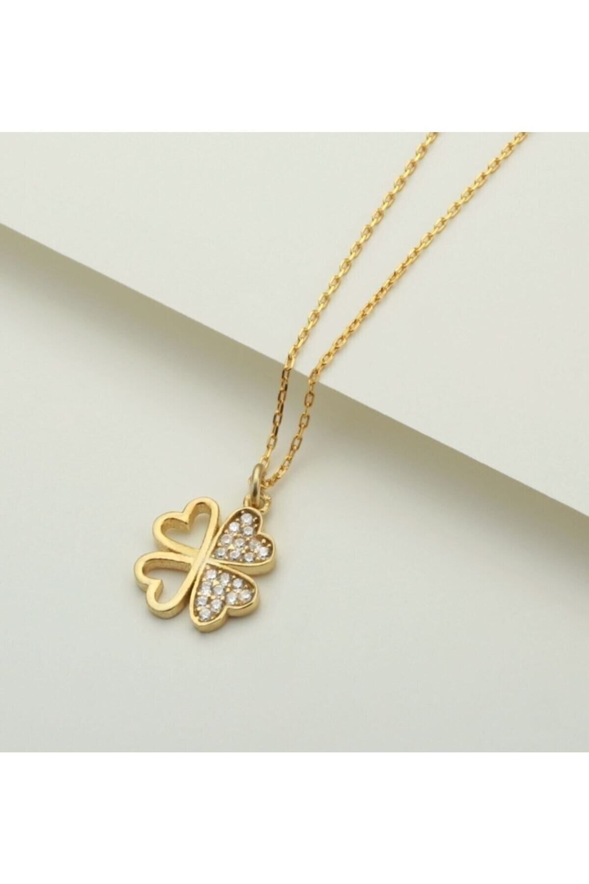 925 Ayar Gold Yonca Zirkon Taşlı Gümüş Kolye
