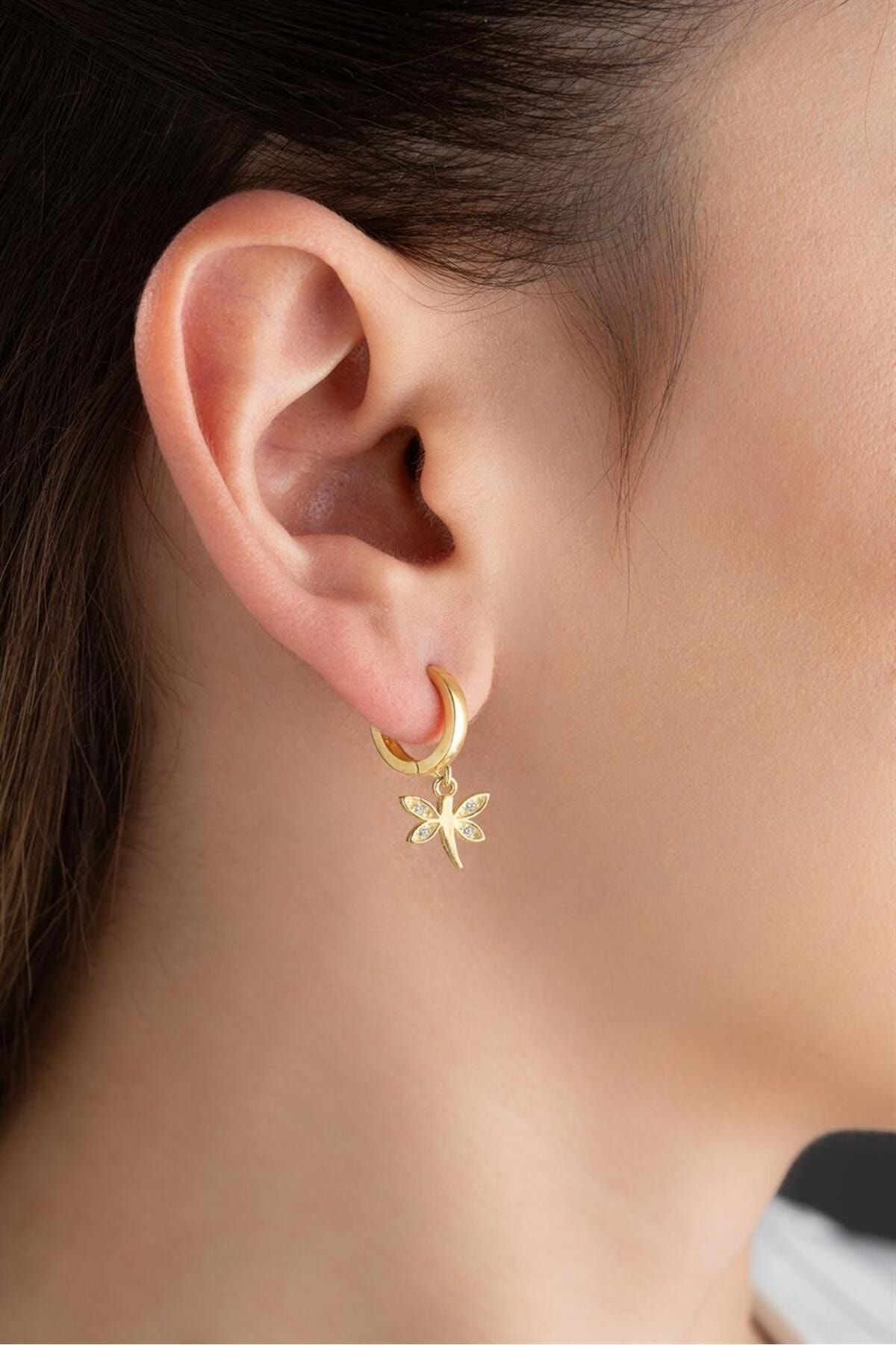 925 Ayar Gold Yusufçuk Gümüş Küpe