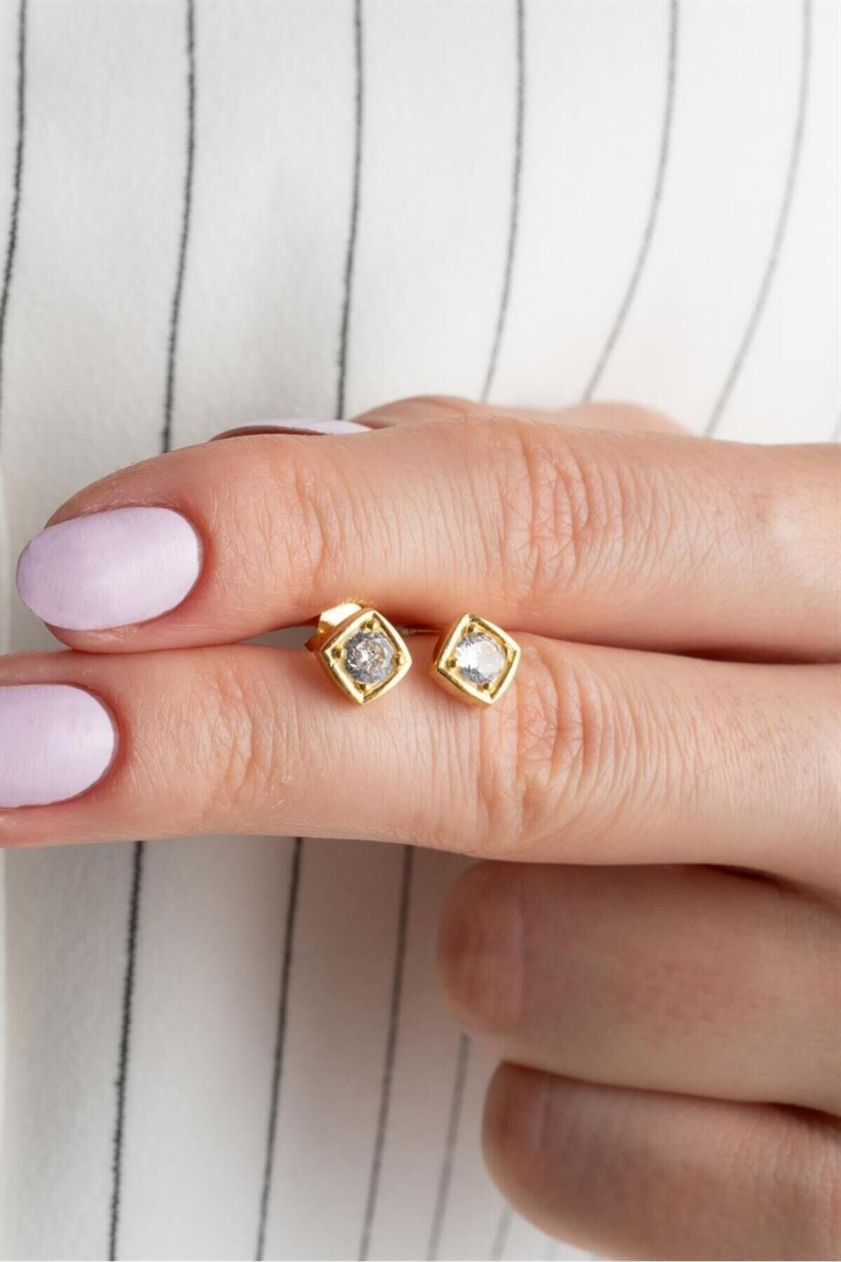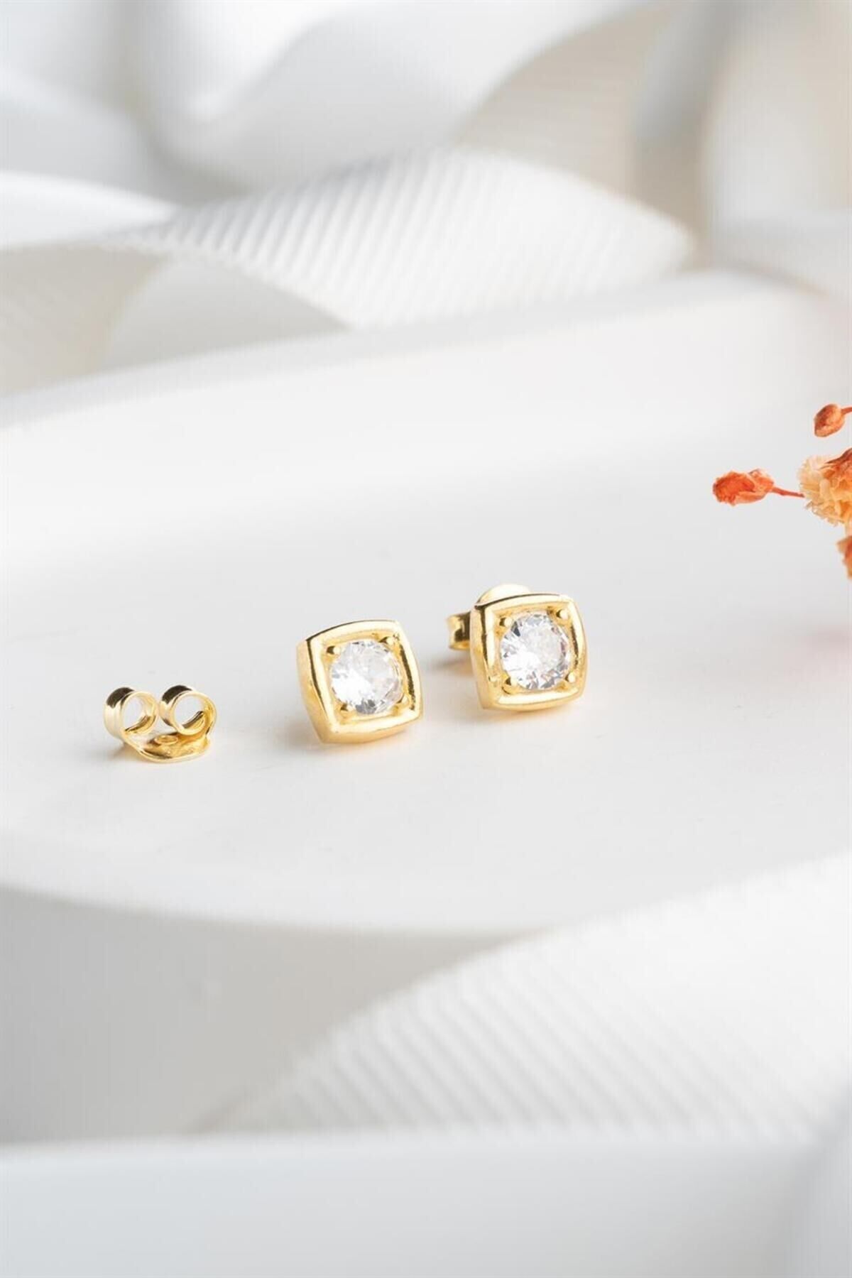 925 Ayar Gold Zirkon Taşlı Gümüş Küpe