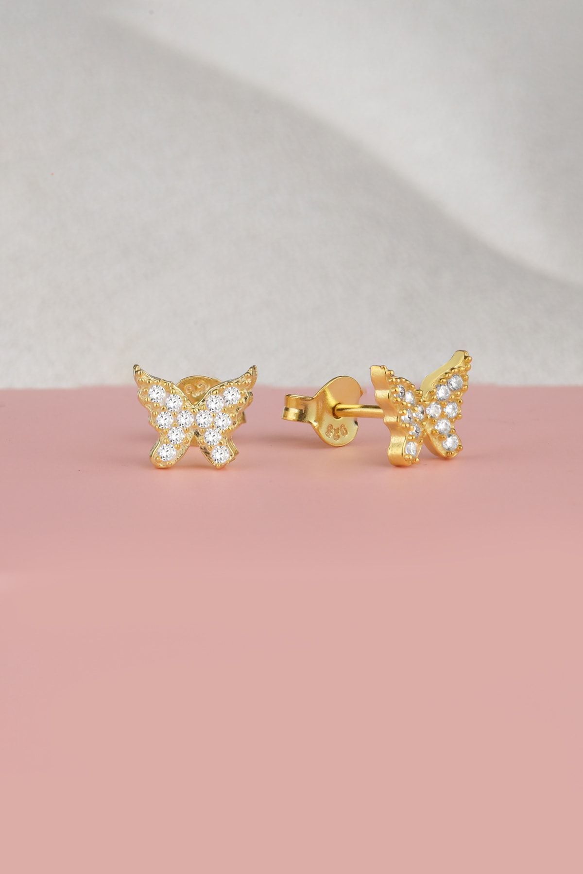925 Ayar Gold Zirkon Taşlı Kelebek Gümüş Küpe