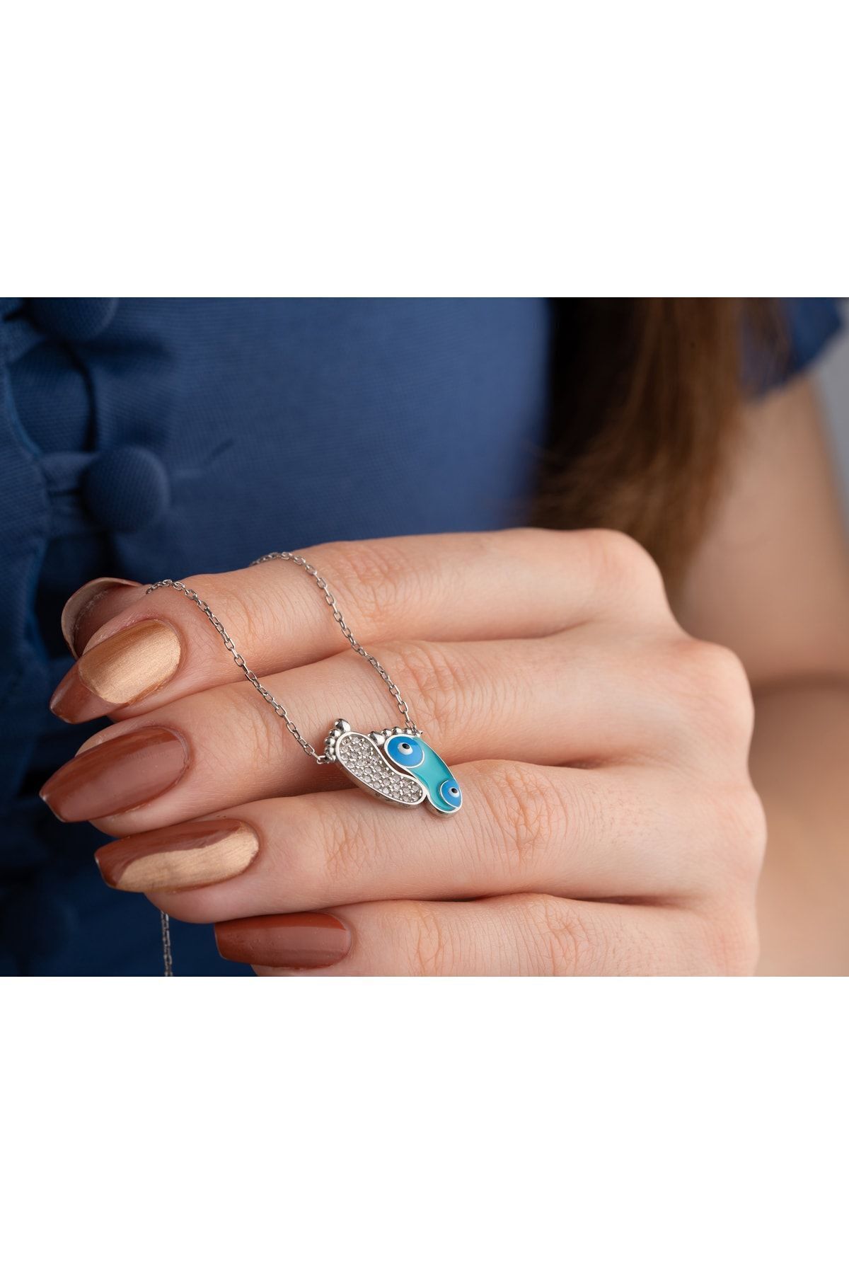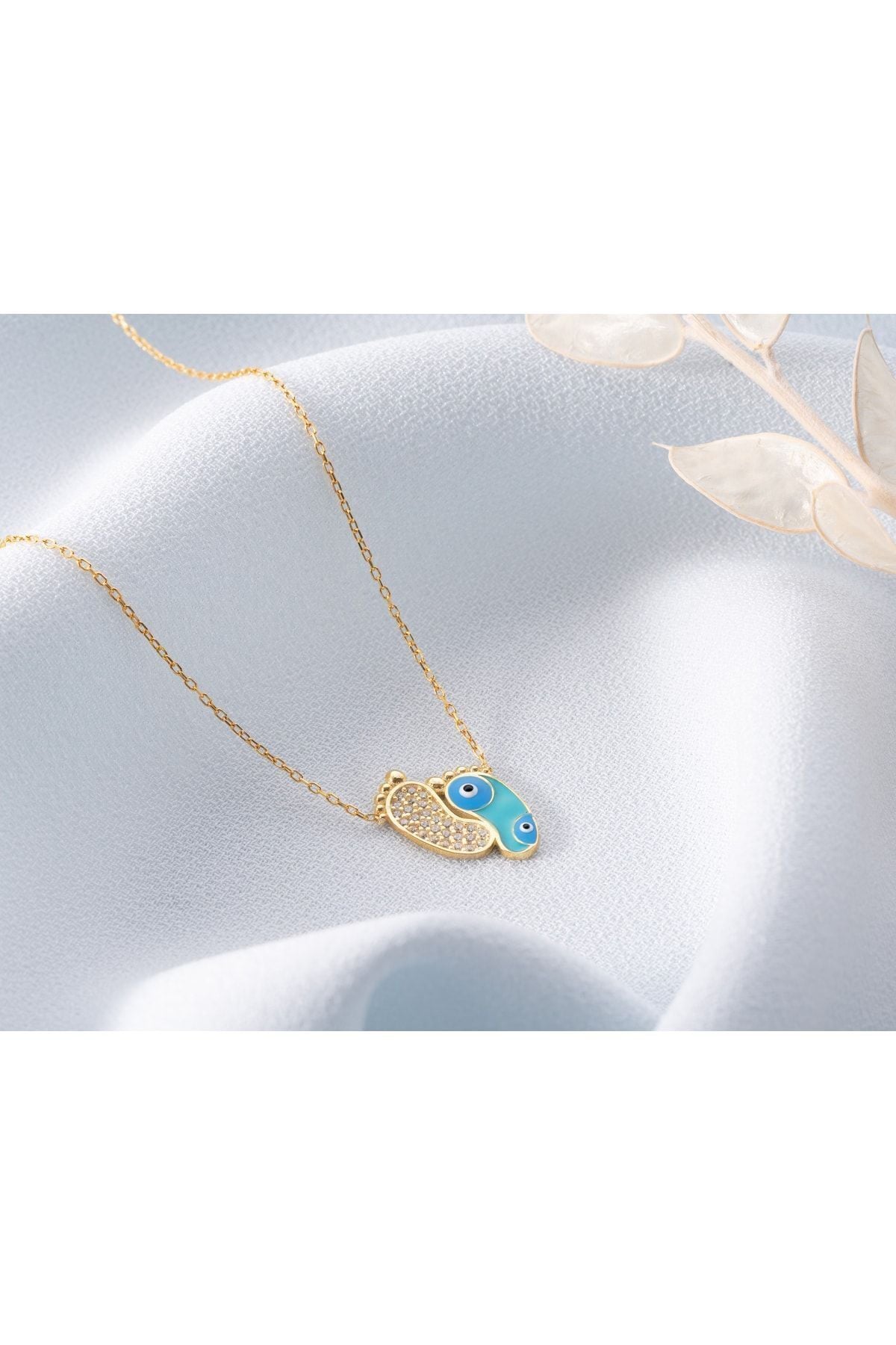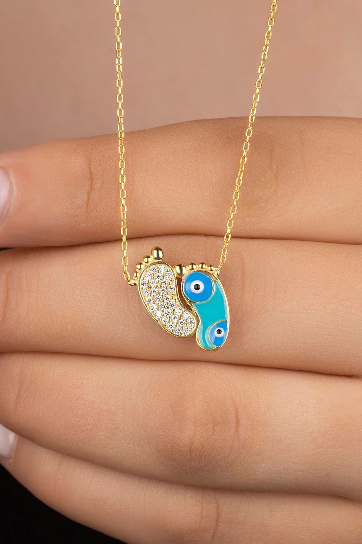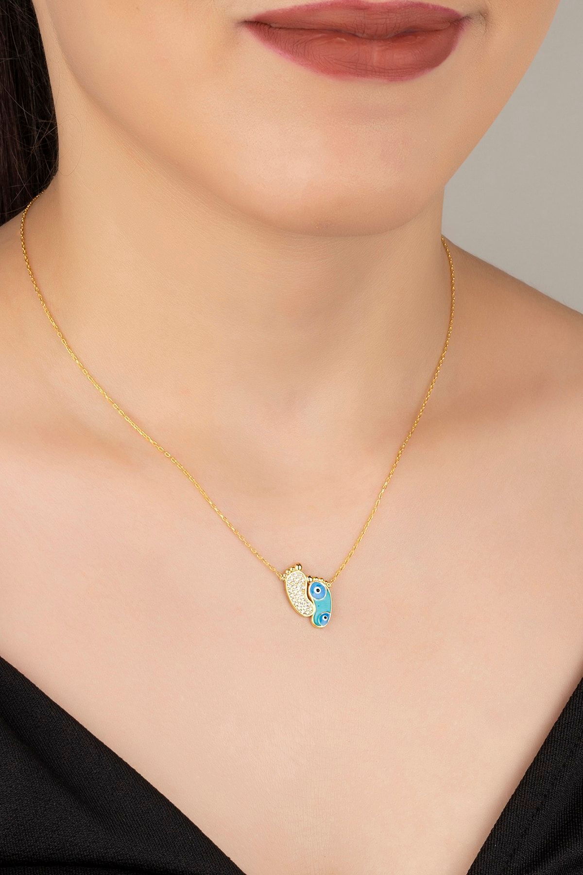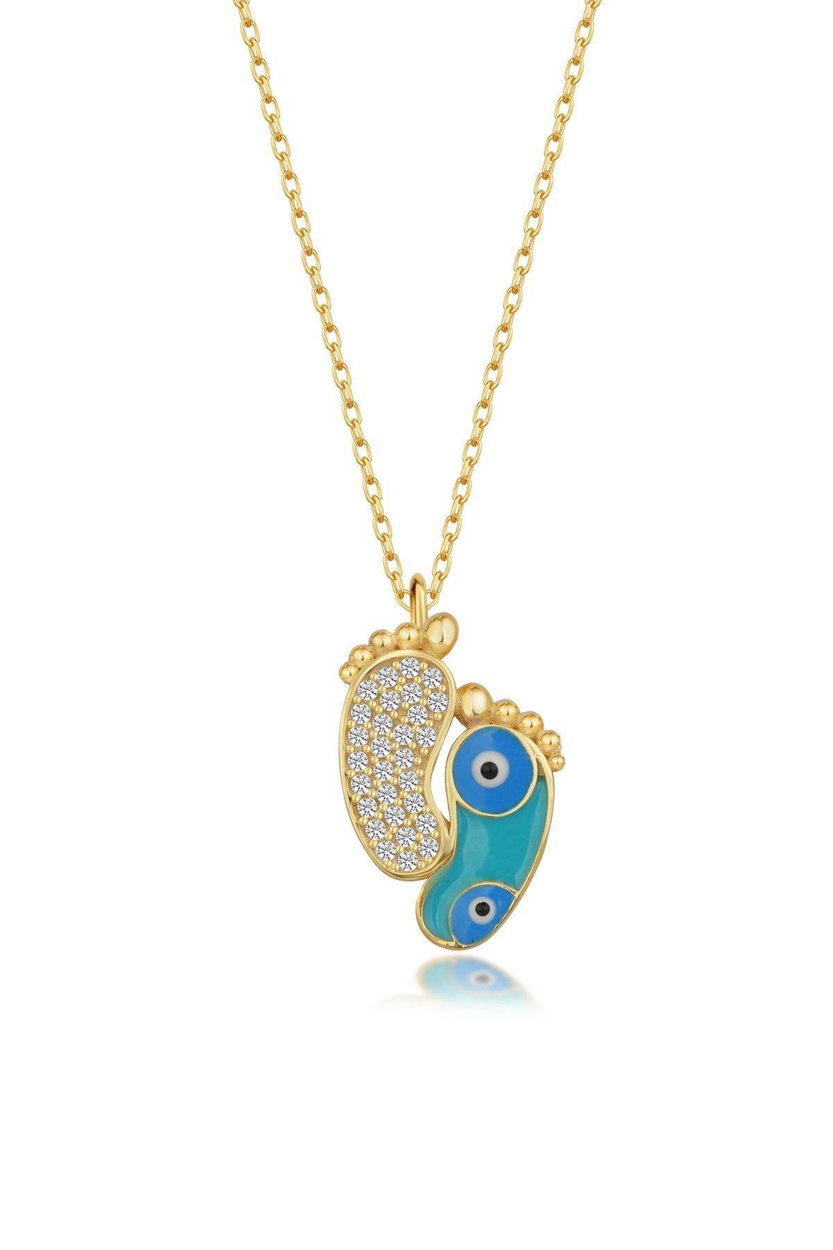 925 Ayar Gold Zirkon Taşli Nazarlı Ayak Gümüş Kolye