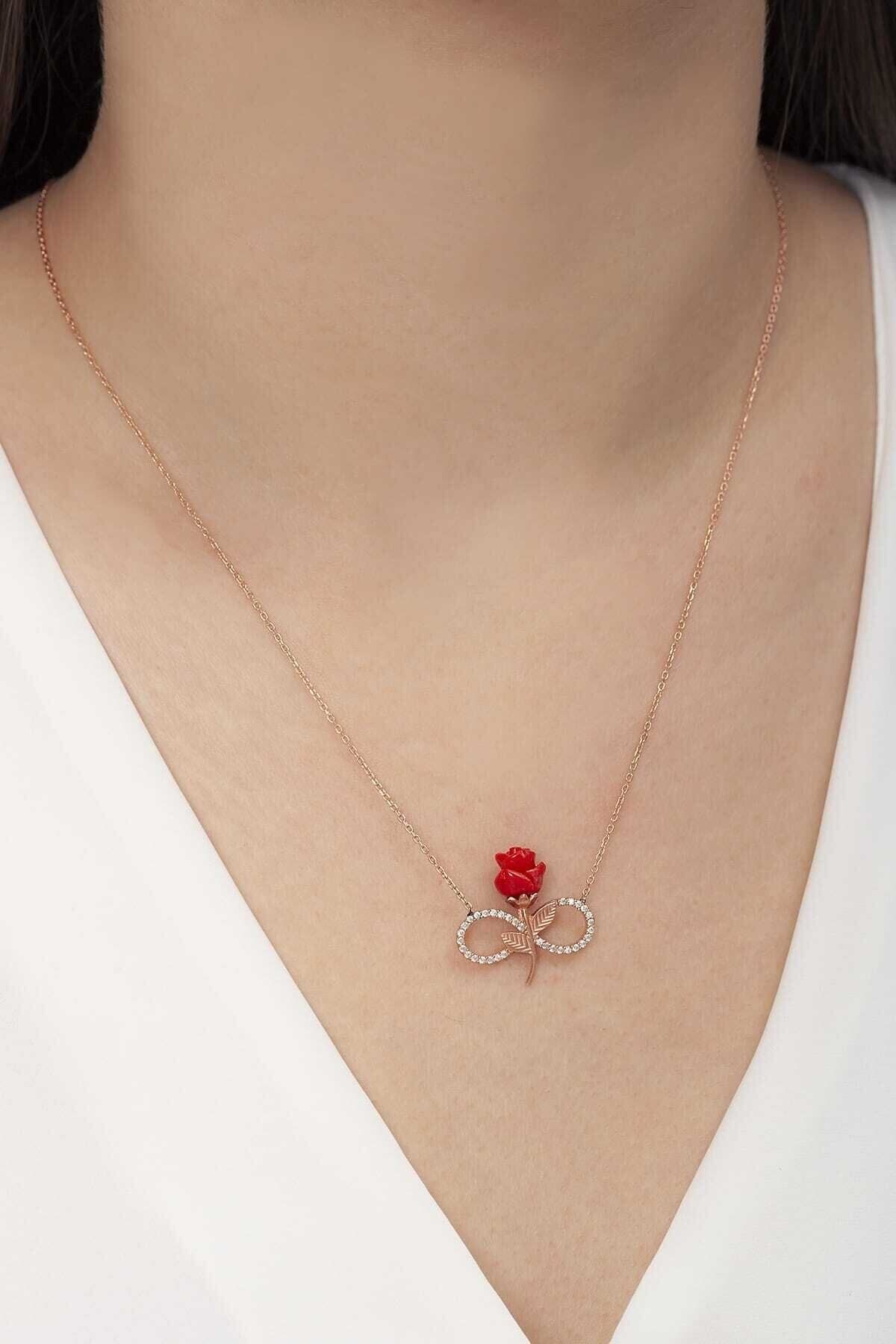 925 Ayar Güllü Sonsuzluk Rose Gümüş Kolye