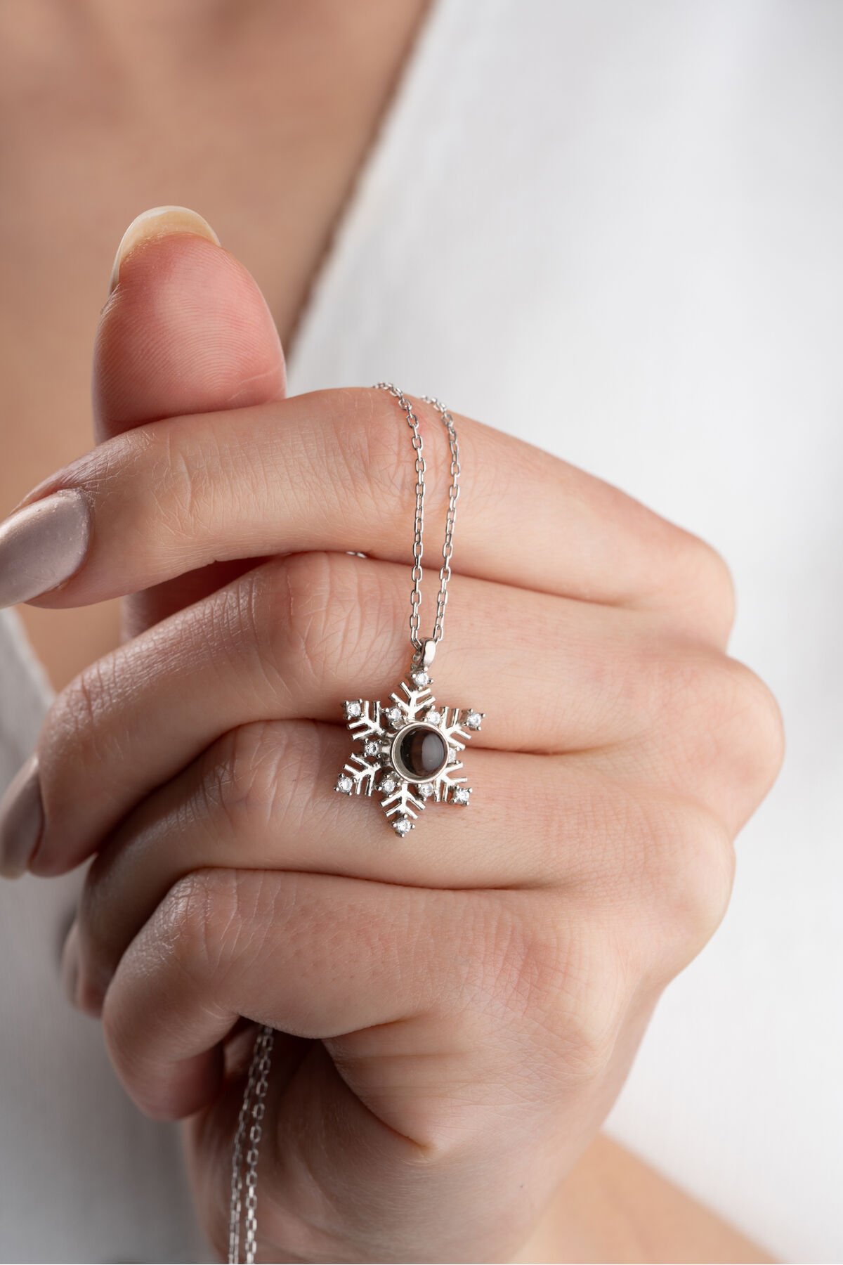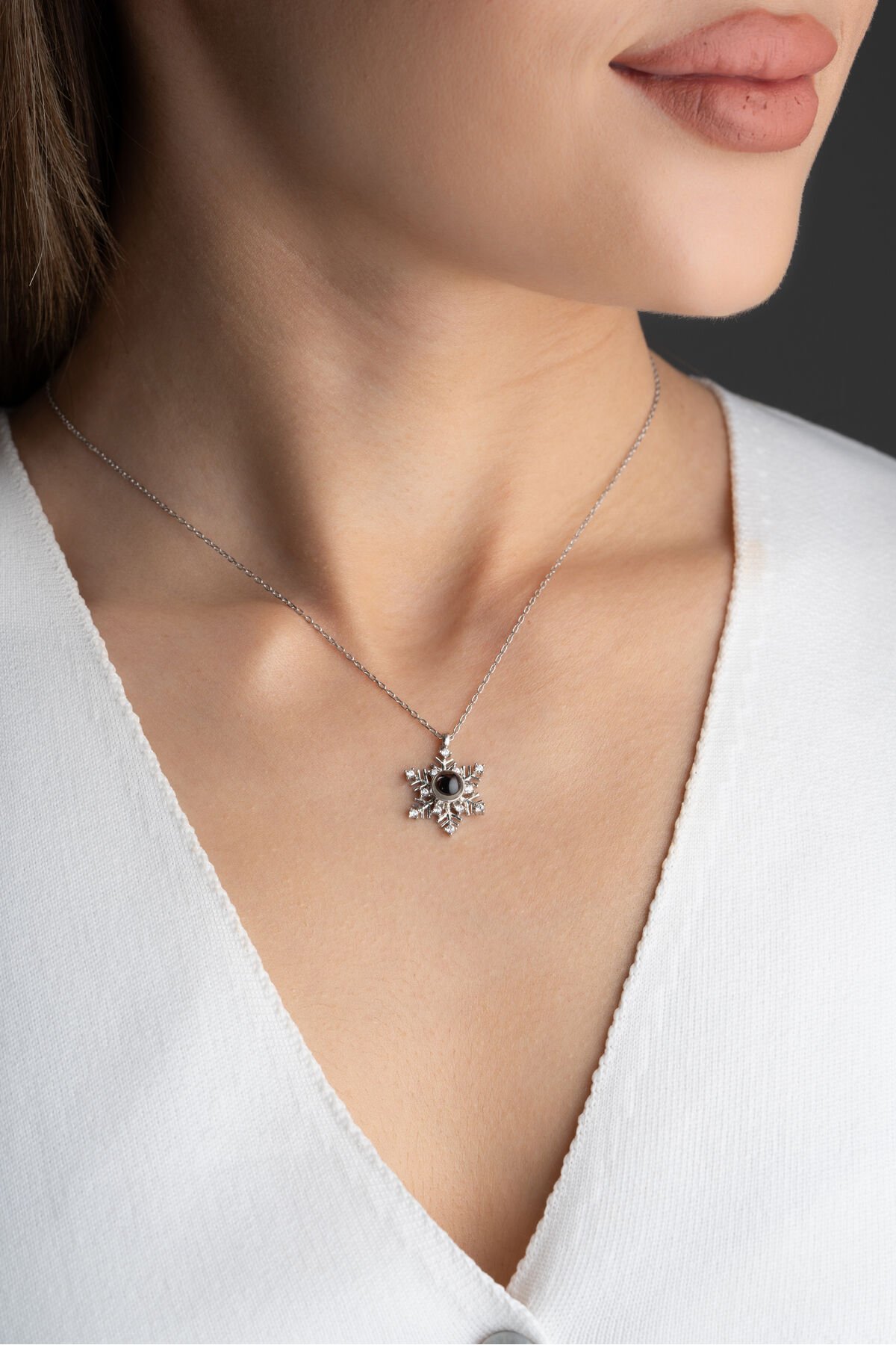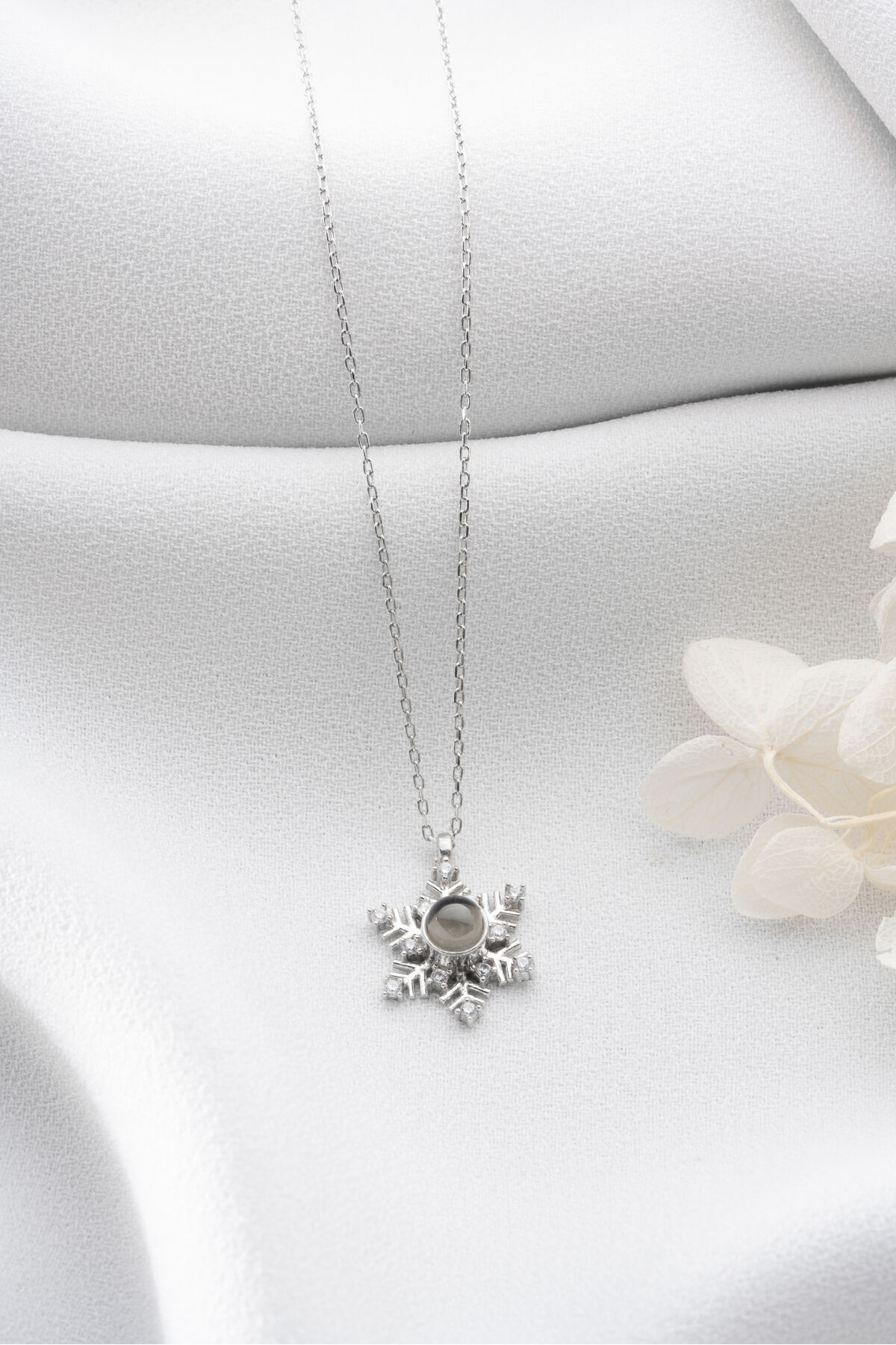 925 Ayar Gümüş 100 Dilde Seni Seviyorum Kar tanesi Kolye