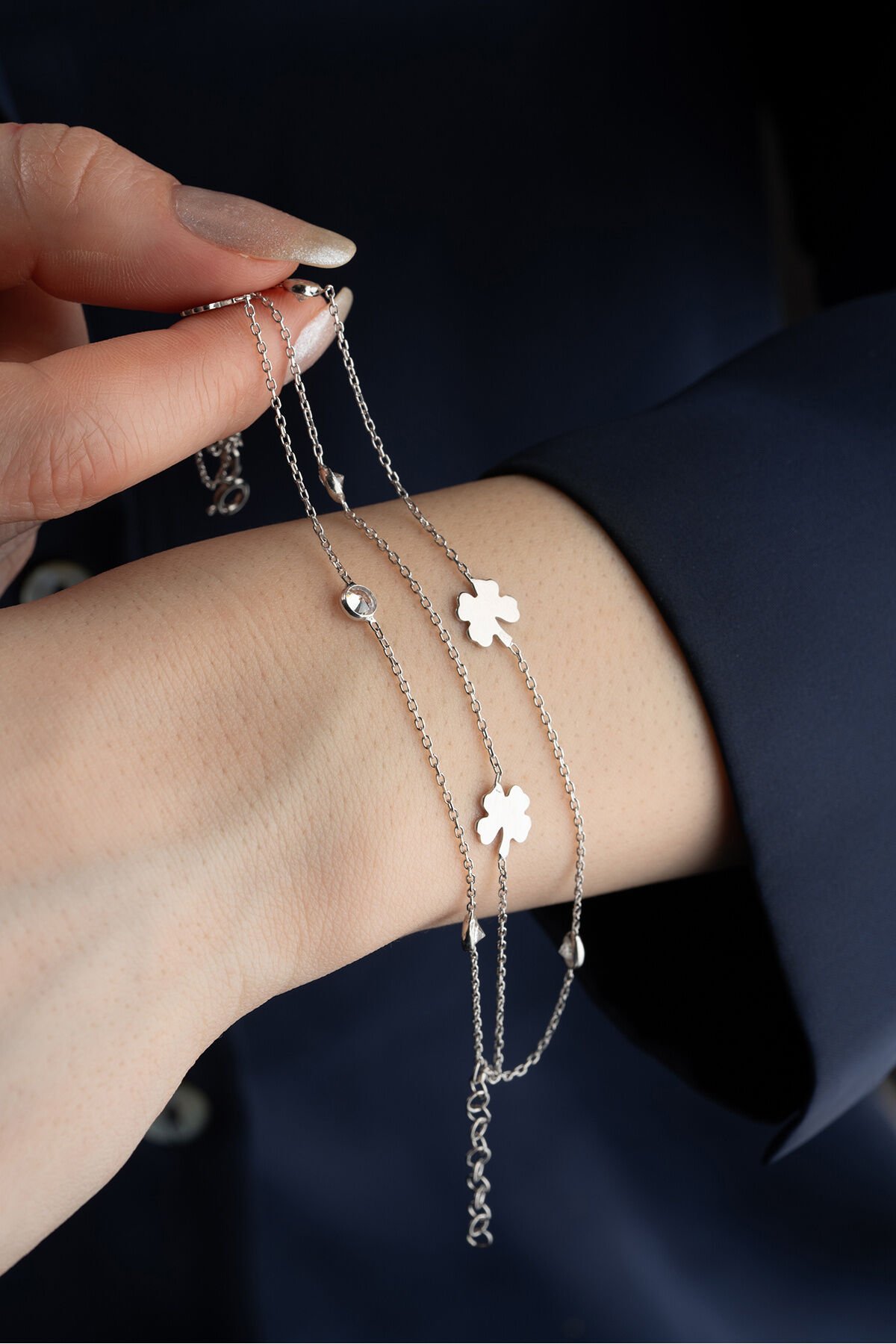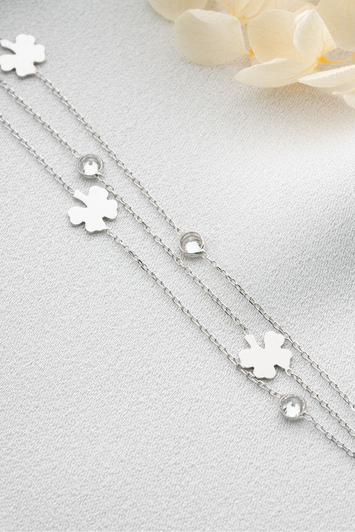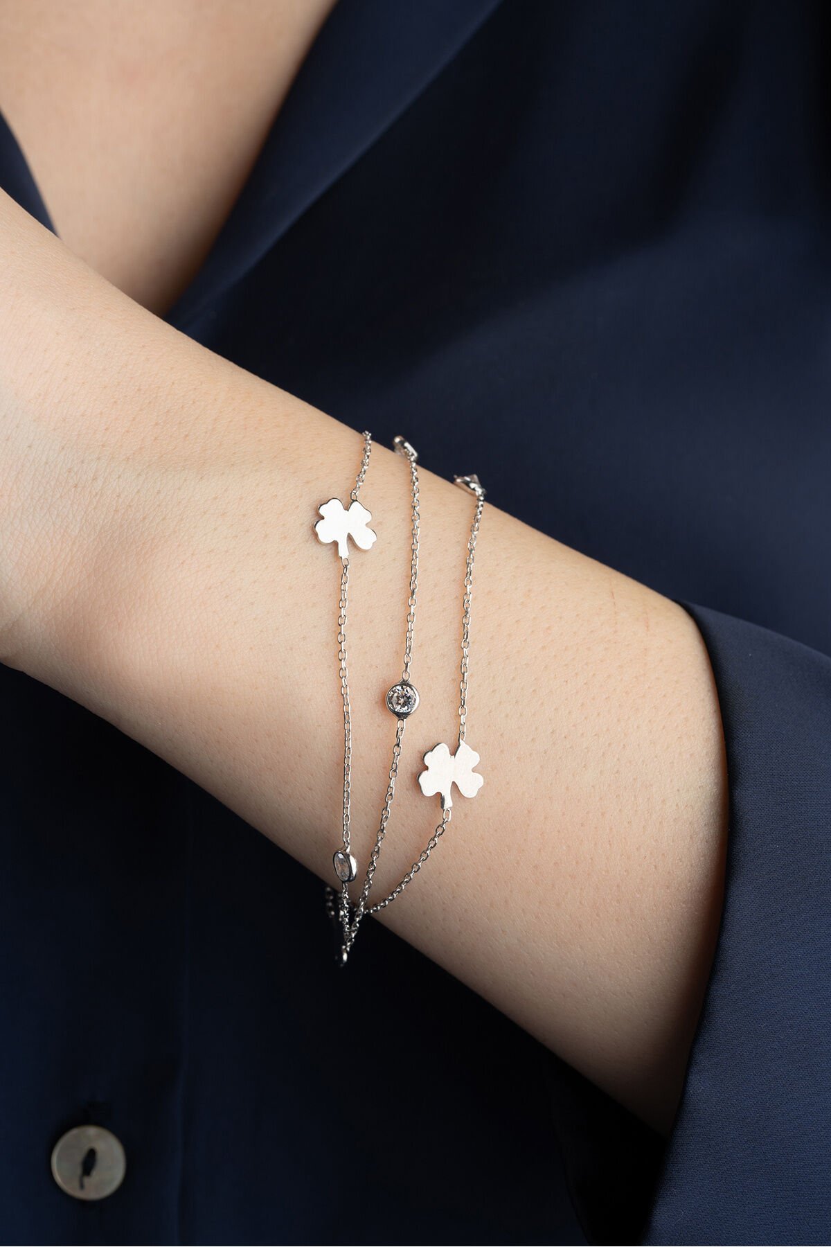 925 Ayar Gümüş 3 Sıra Yoncalı Taşlı Bileklik