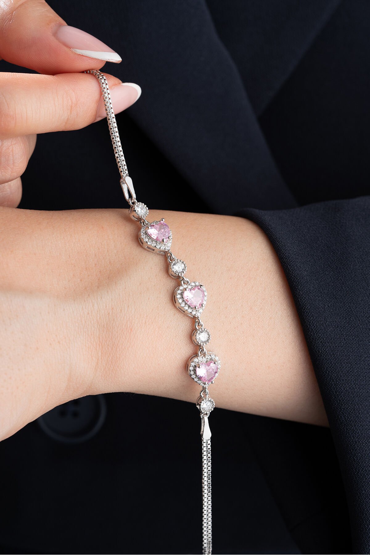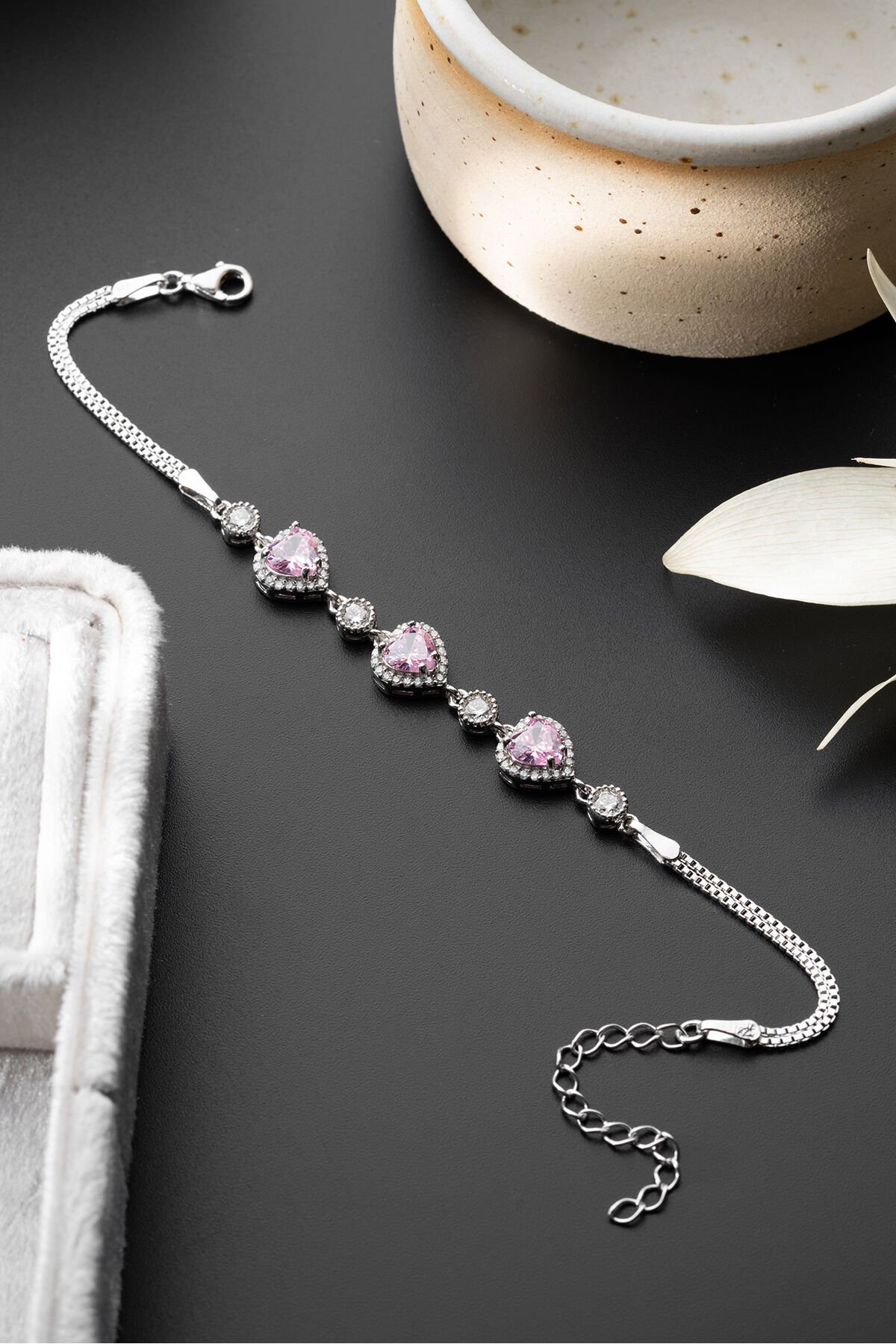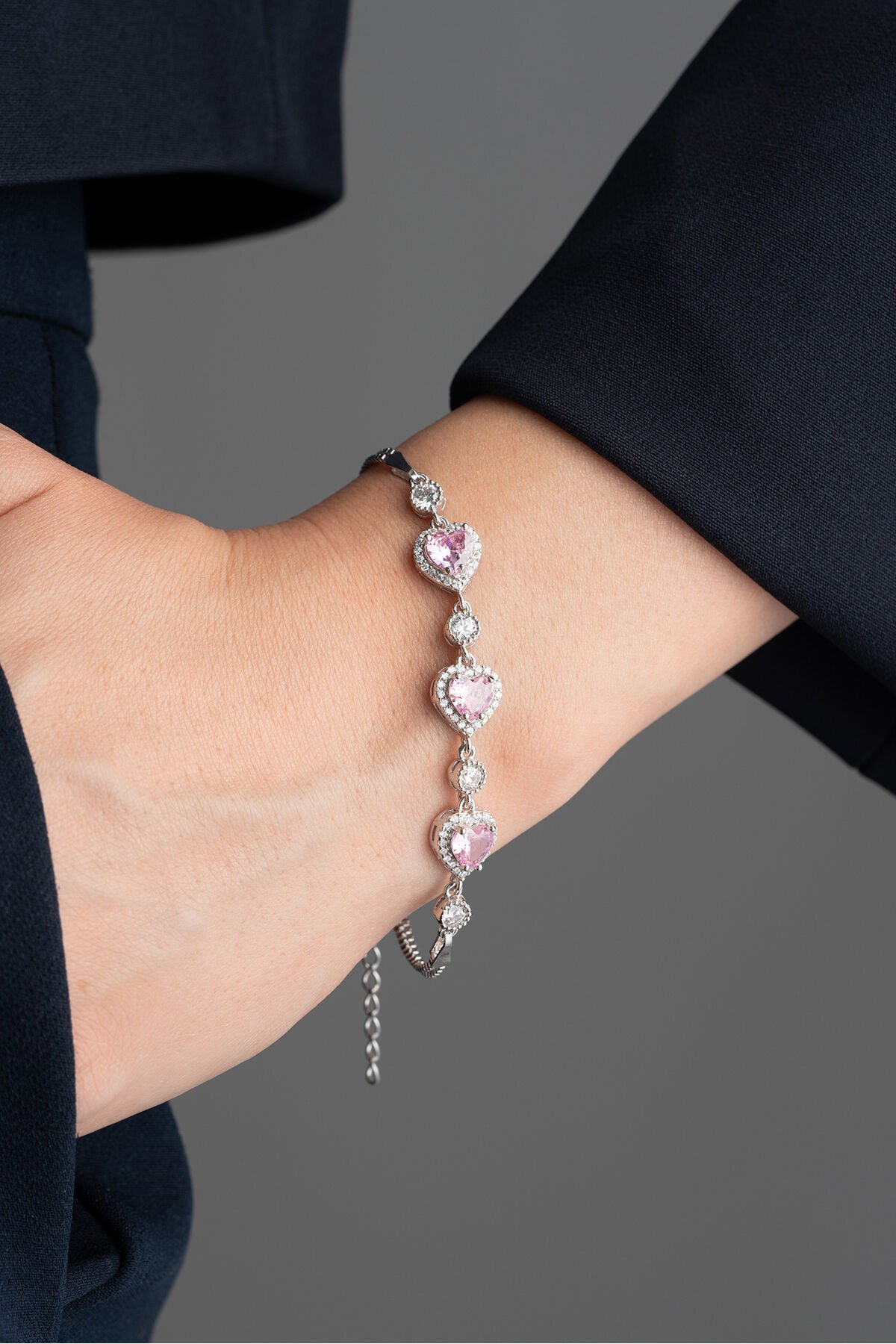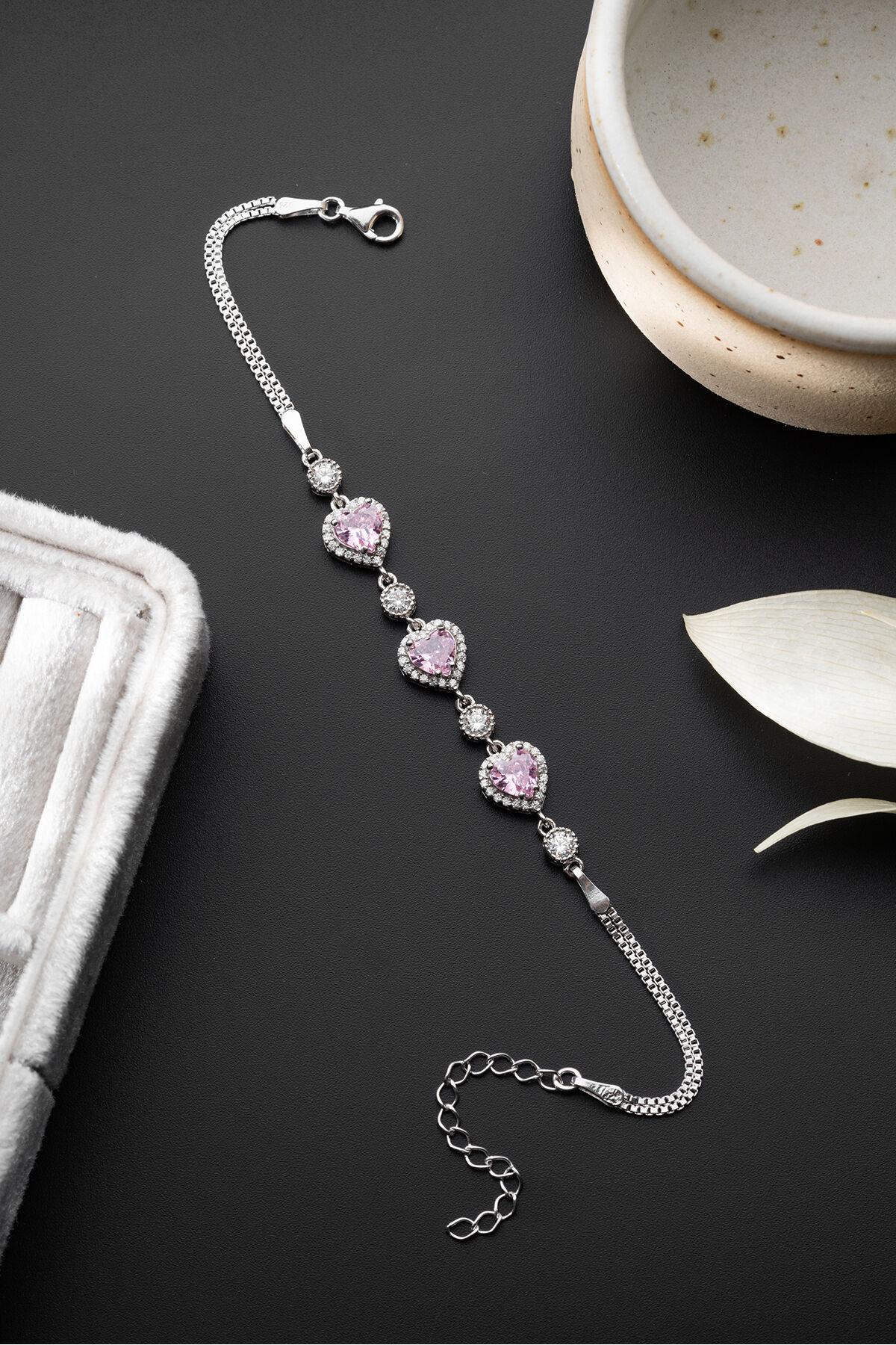 925 Ayar Gümüş 3'lü Pembe Kalpli Bileklik