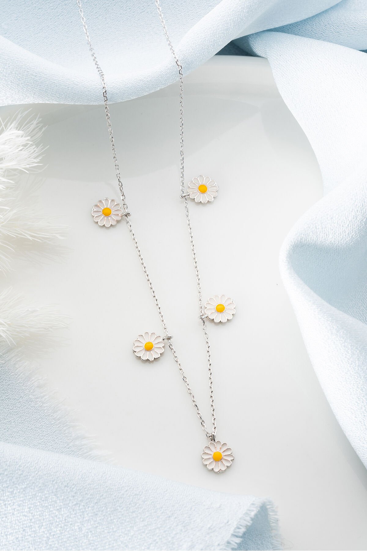 925 Ayar Gümüş 5'li Papatya Kolye