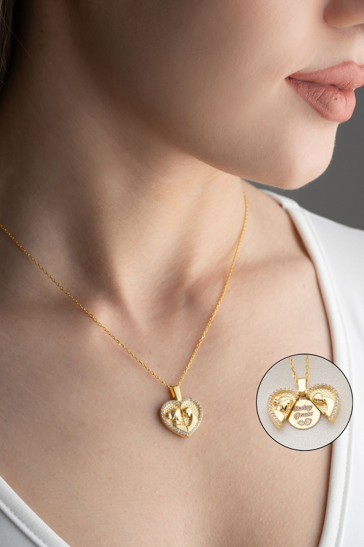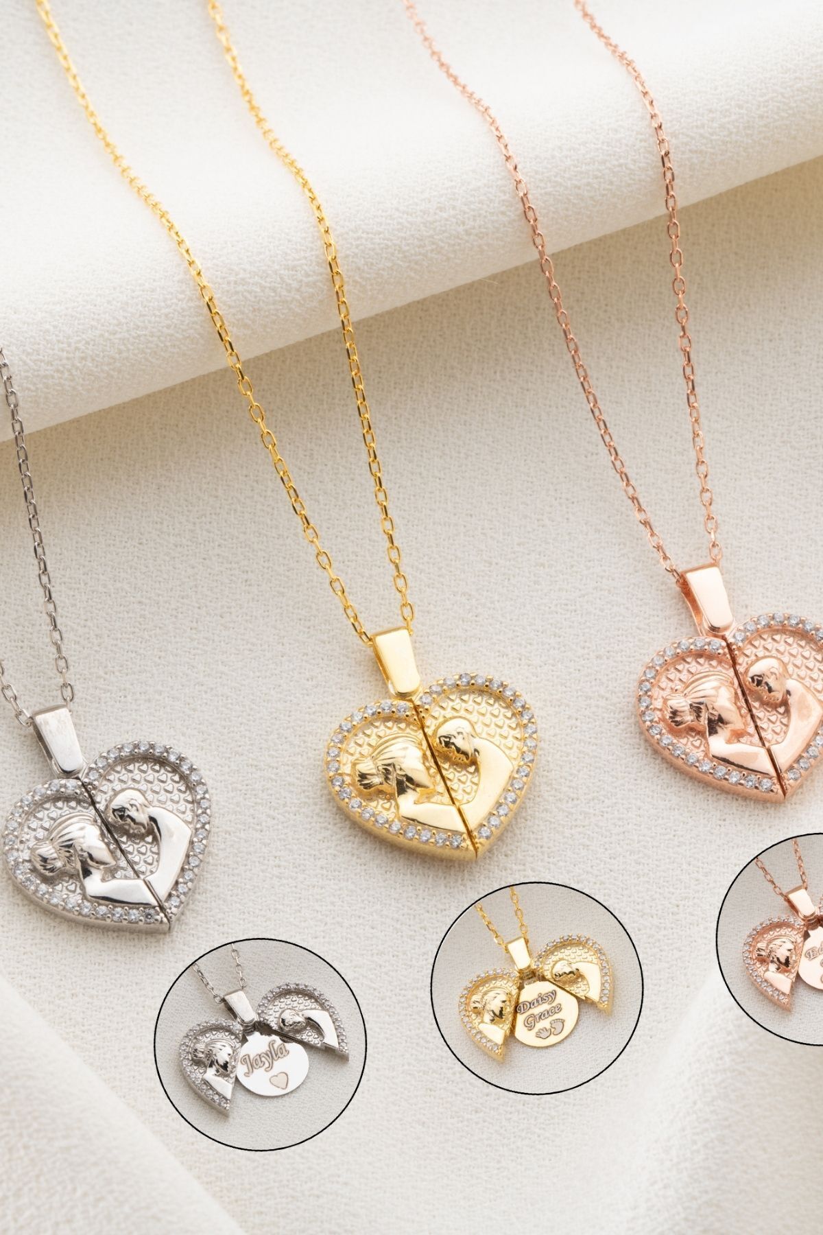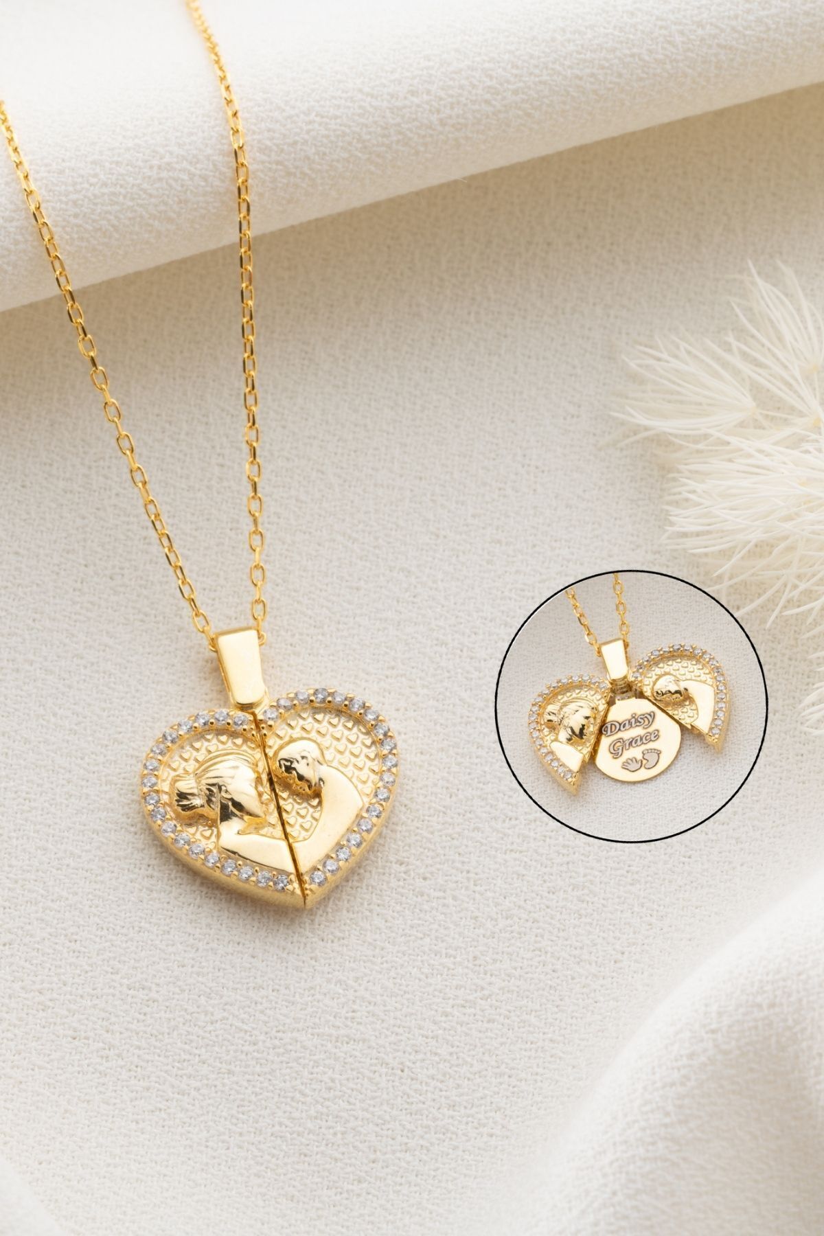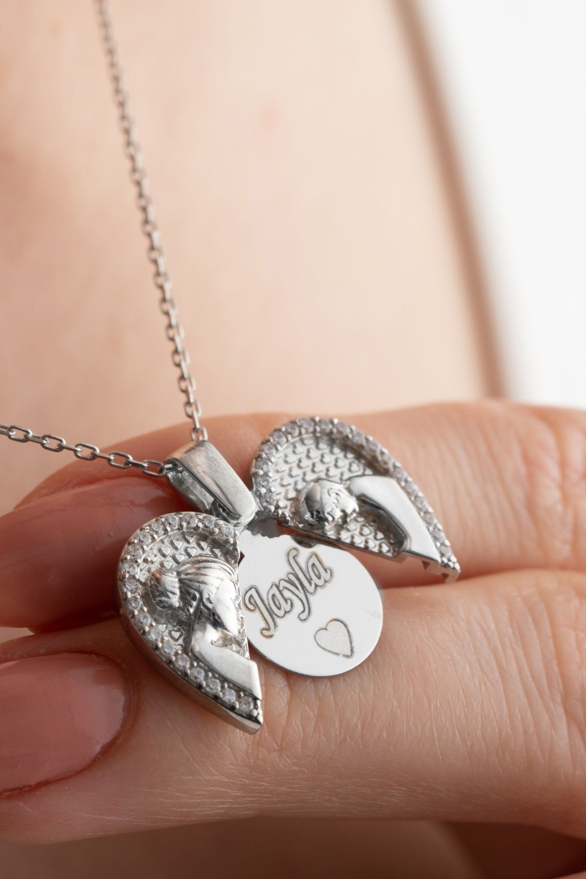 925 Ayar Gümüş Açılabilen Isimli Anne Bebek Kolye