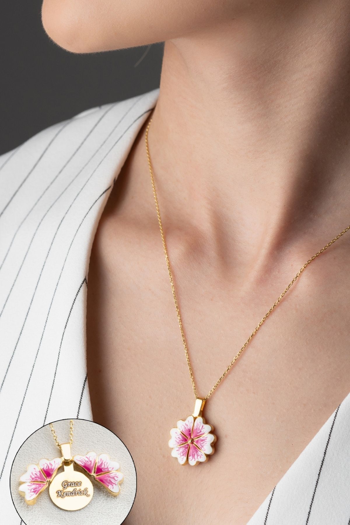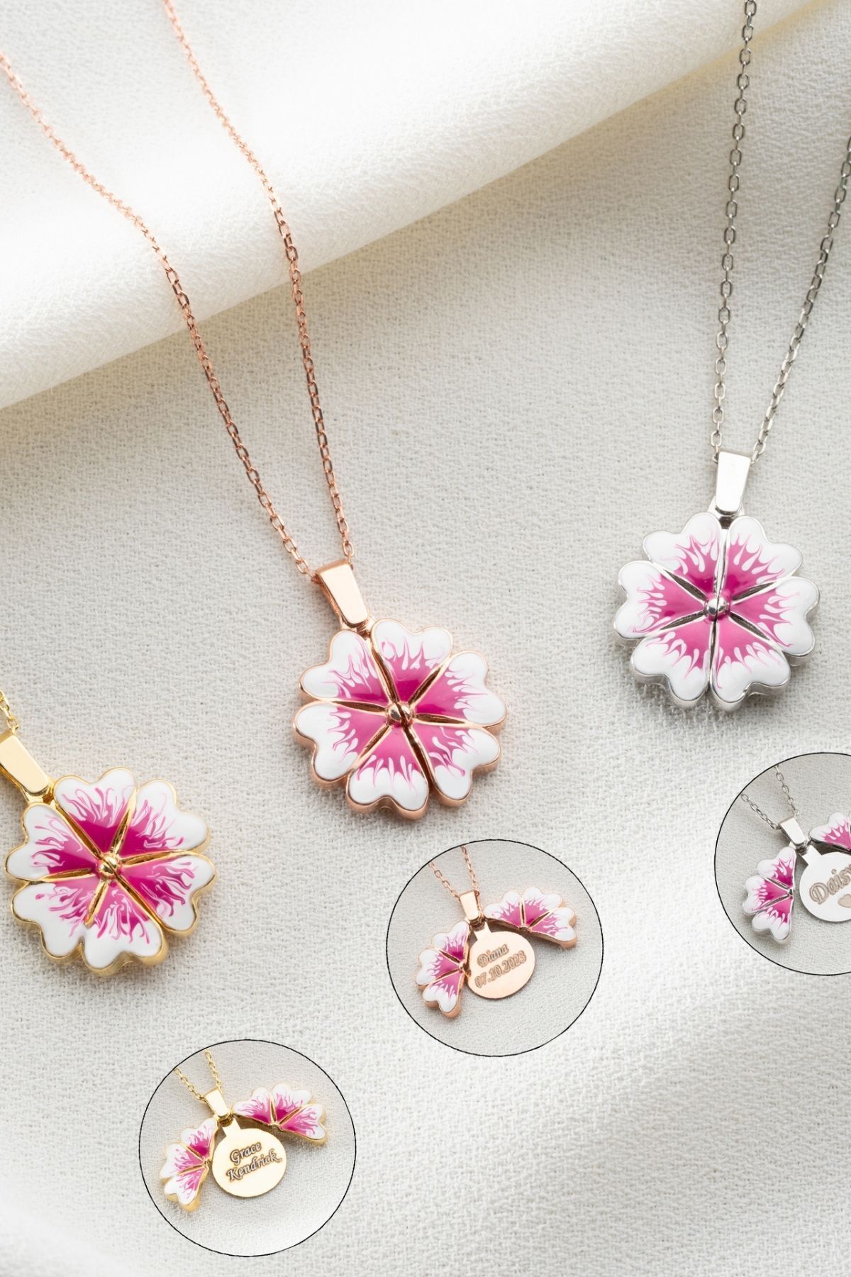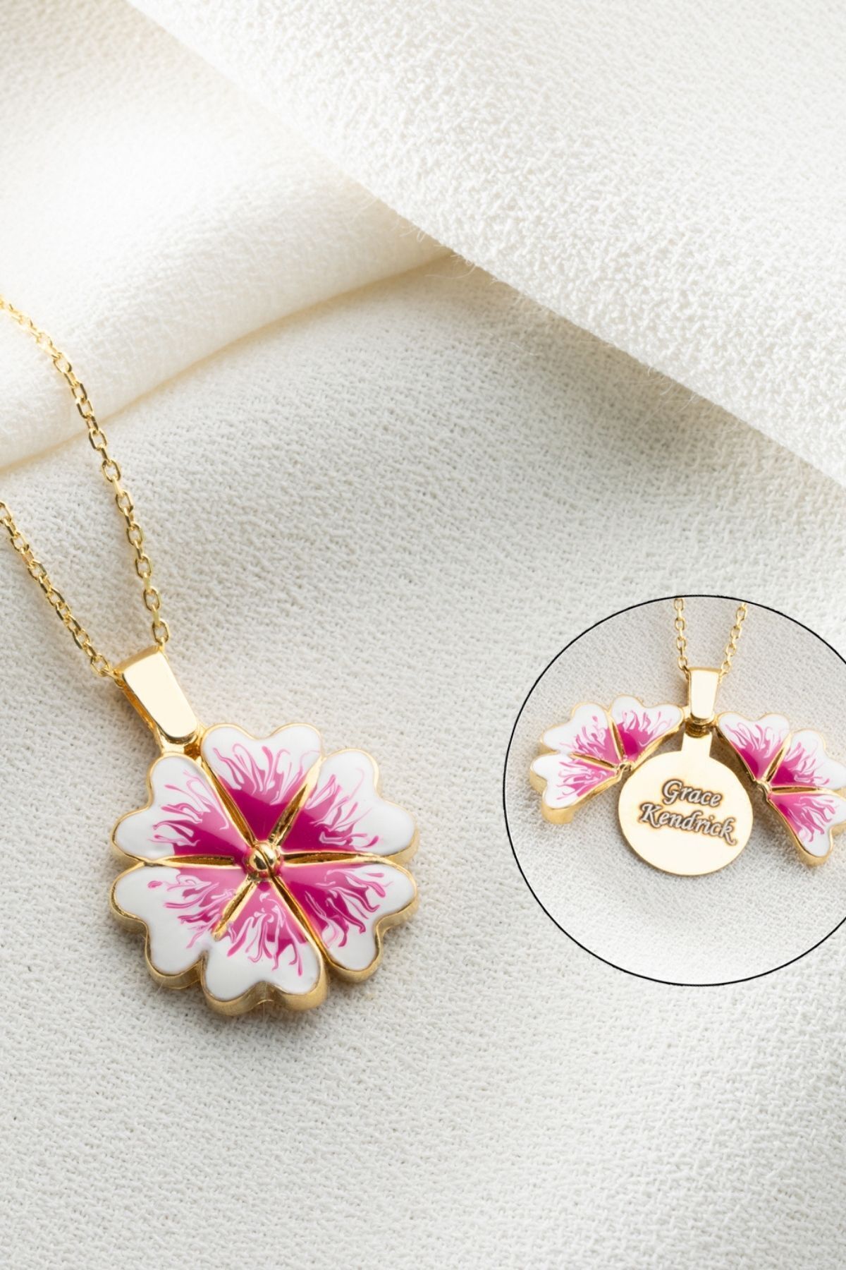 925 Ayar Gümüş Açılabilen İsimli Çiçek Kolye