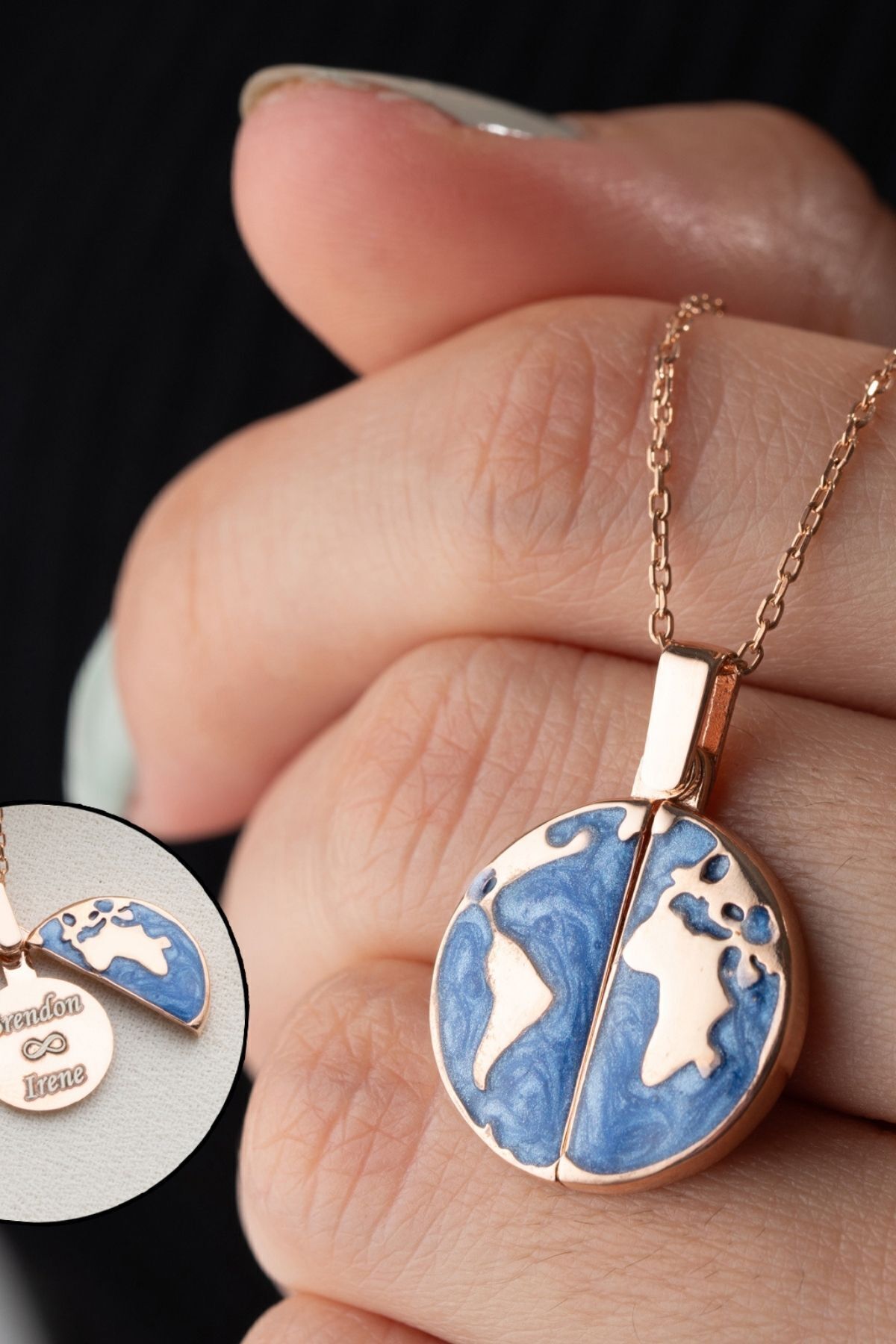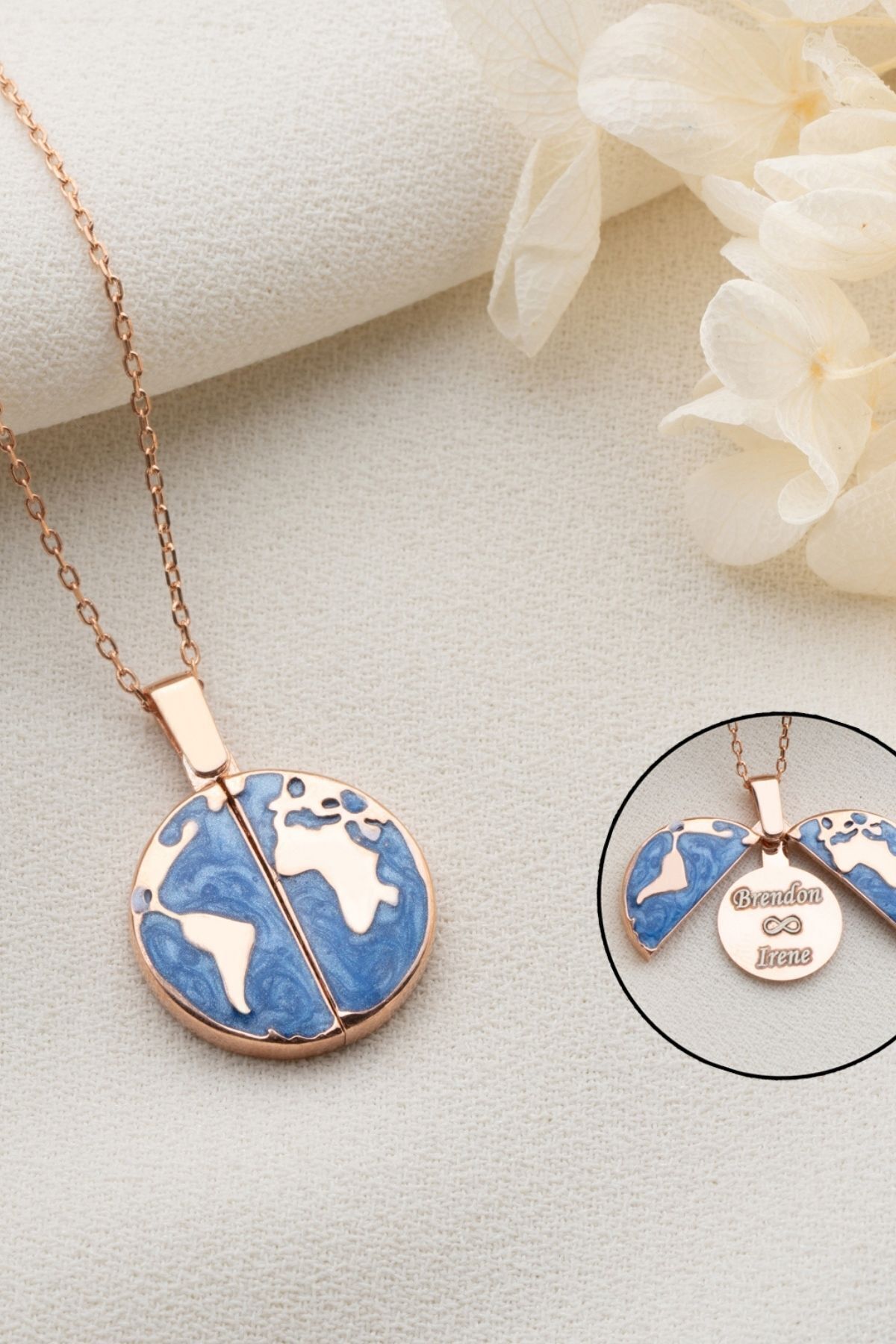 925 Ayar Gümüş Açılabilen İsimli Dünya Kolye