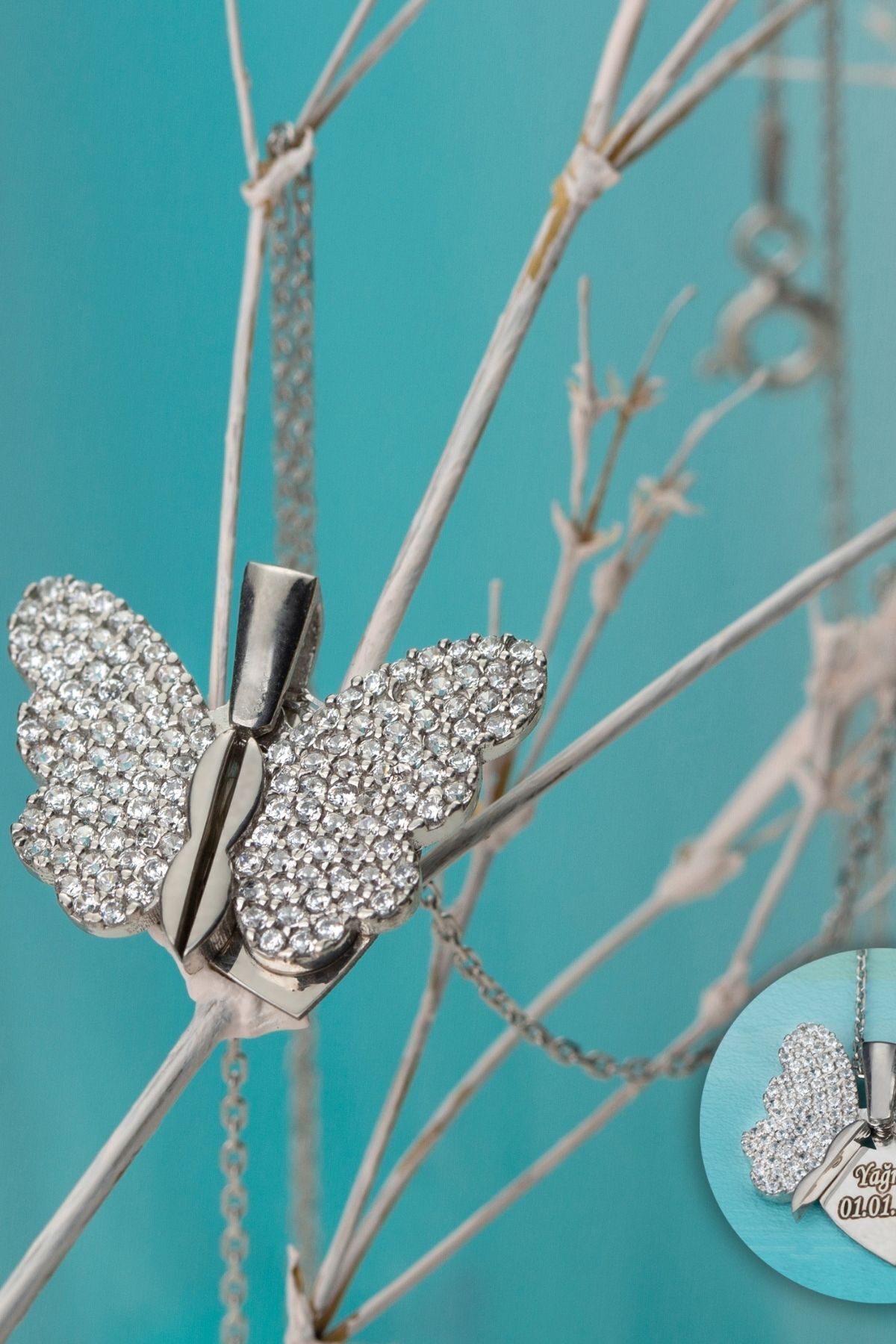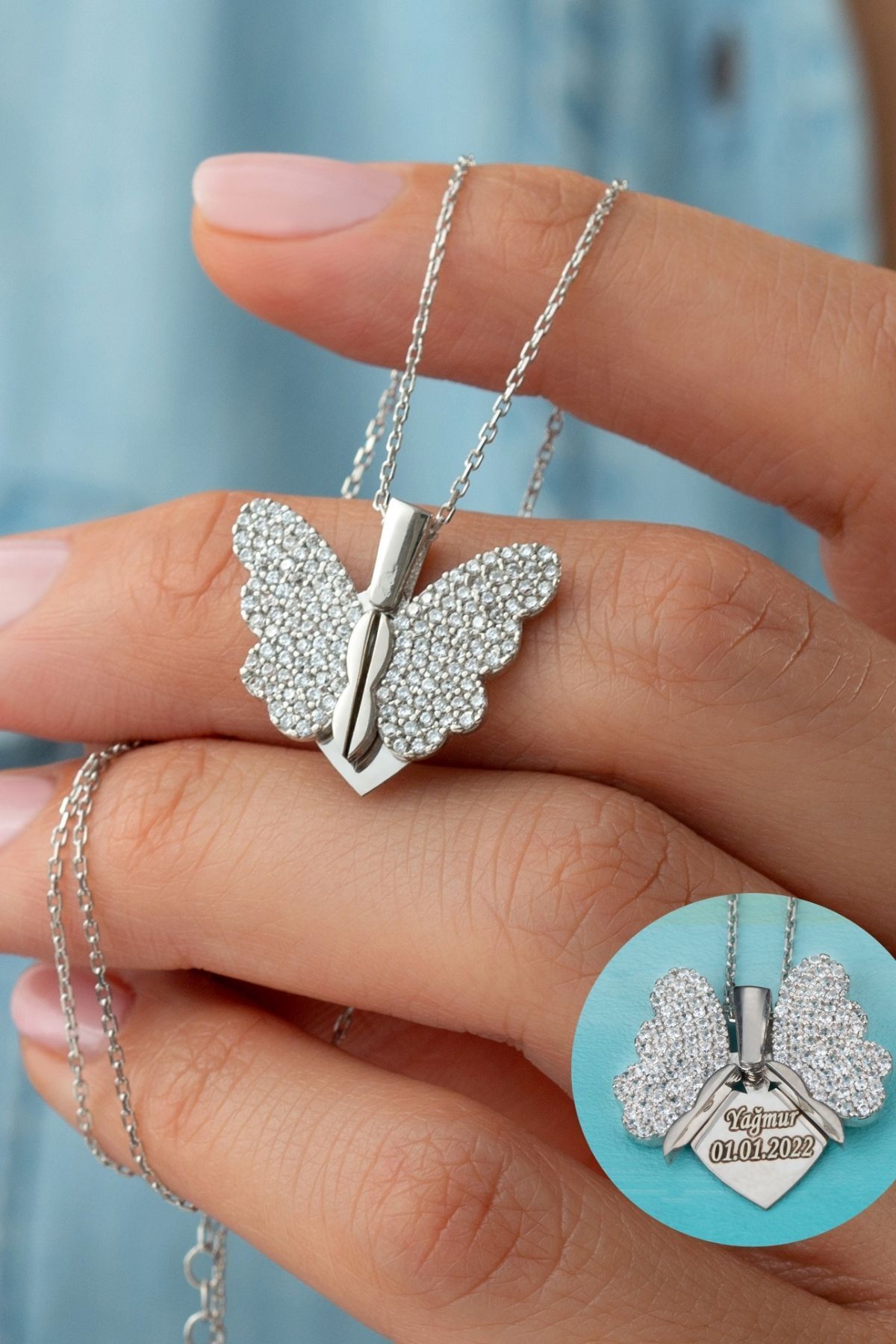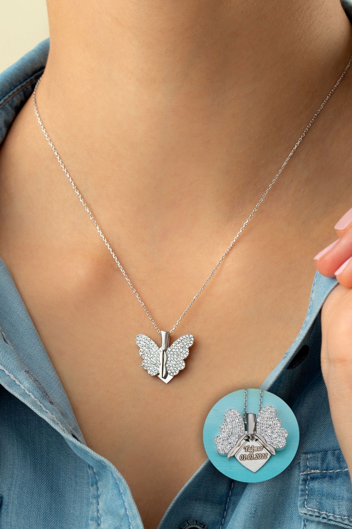 925 Ayar Gümüş Açılan Kelebek Kanatlı Kolye