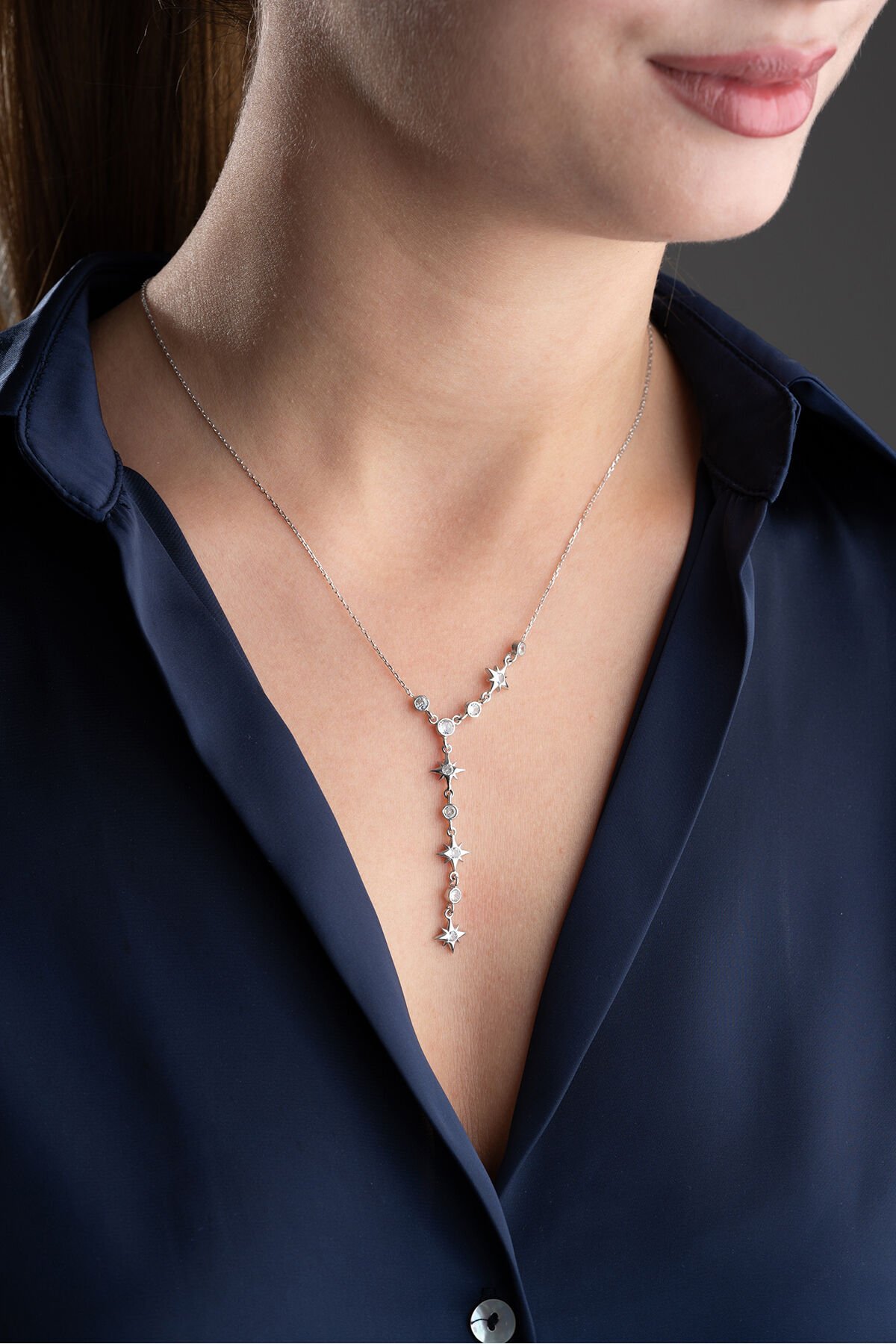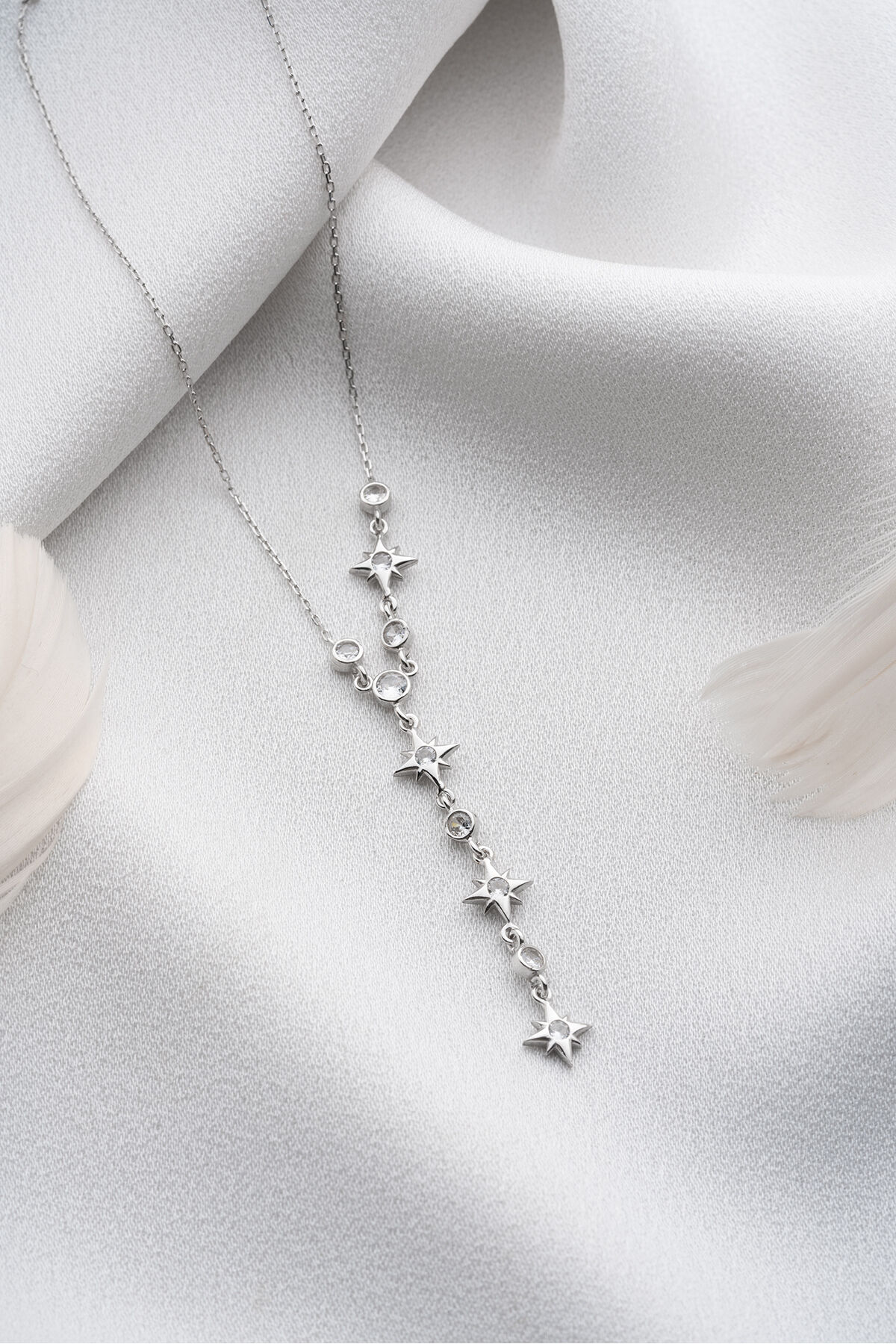 925 Ayar Gümüş Akışlı Kutup Yıldızı Kolye