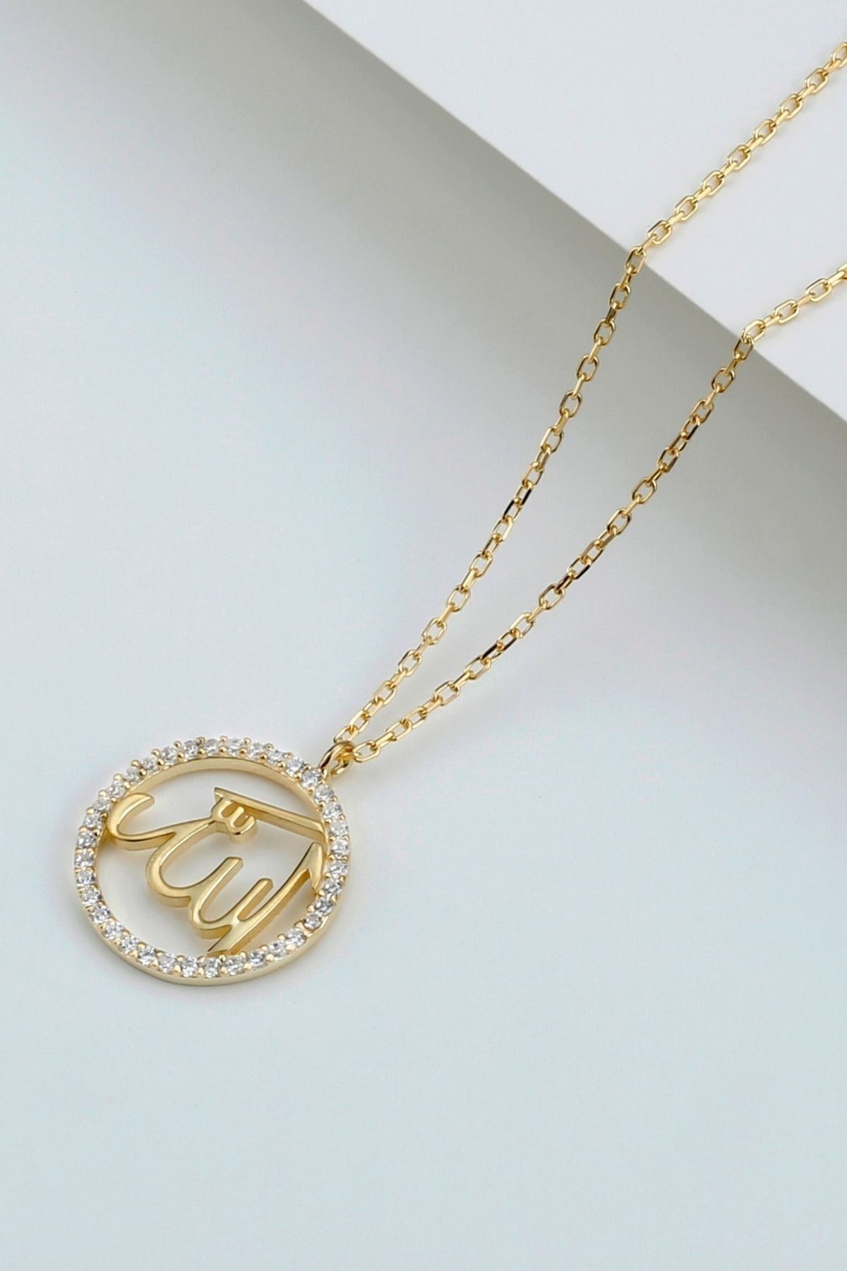 925 Ayar Gümüş Allah Yazılı Taşlı Gold Kolye
