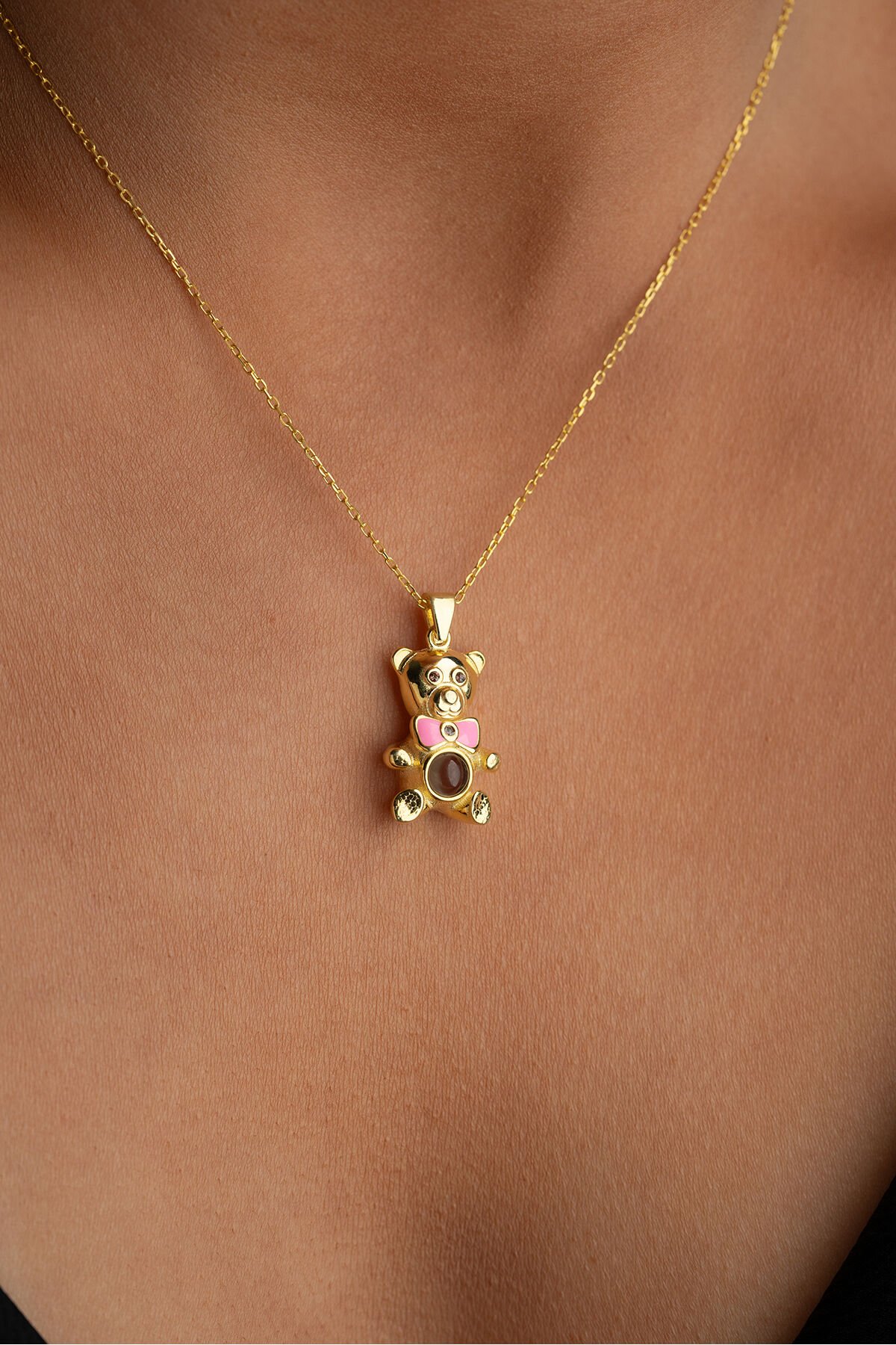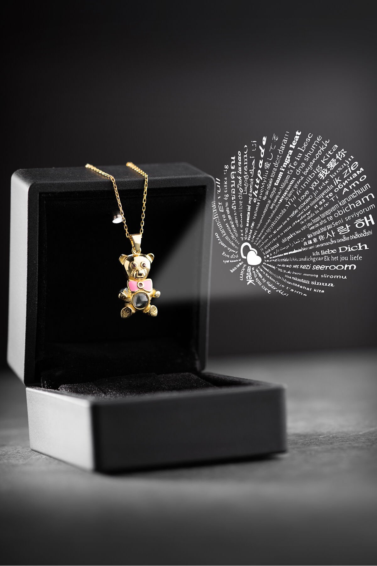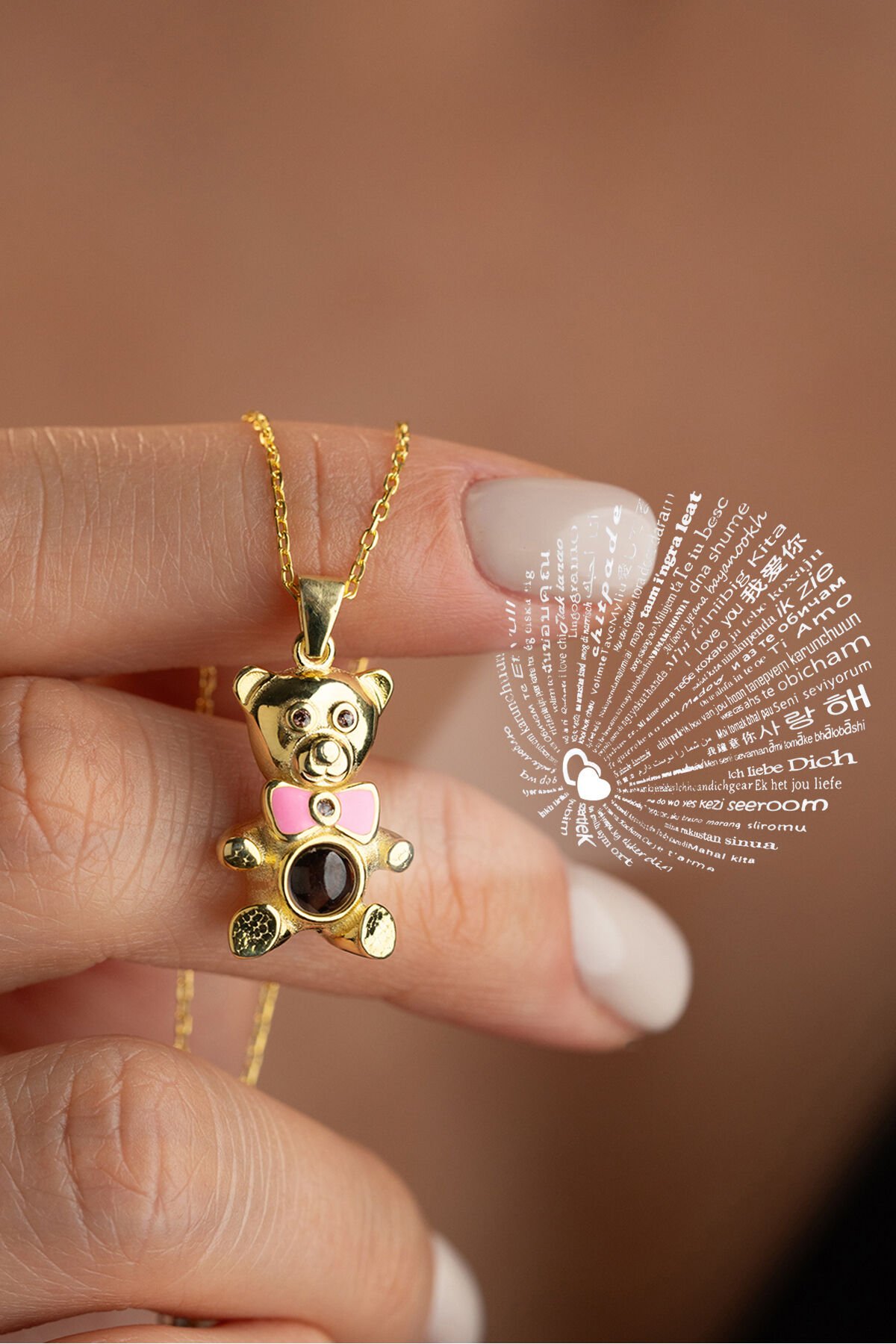 925 Ayar Gümüş Altın Kaplama 100 Dilde Seviyorum Ayıcık Kolye