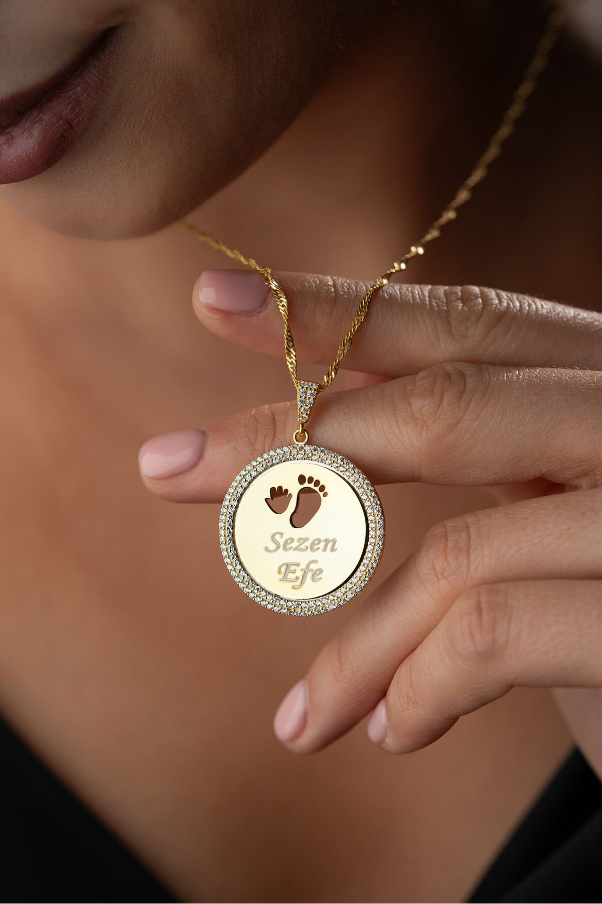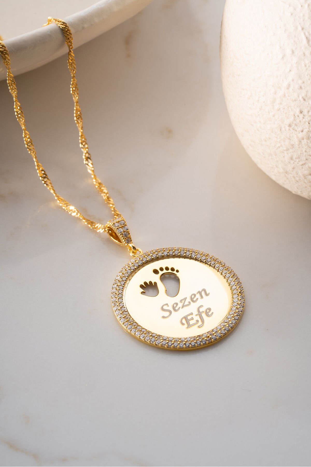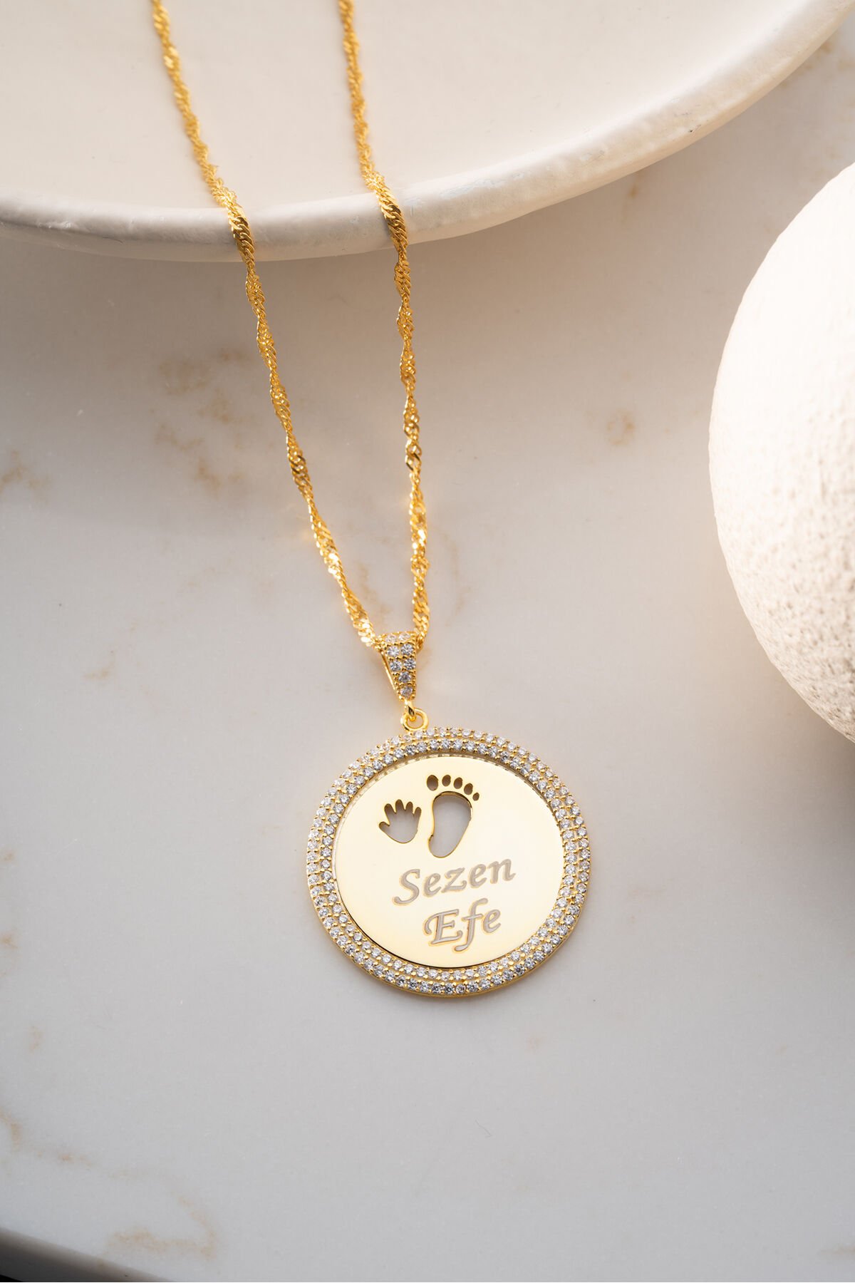 925 Ayar Gümüş Altın Kaplama Anne Bebek Ayakizi İsimli Kolye