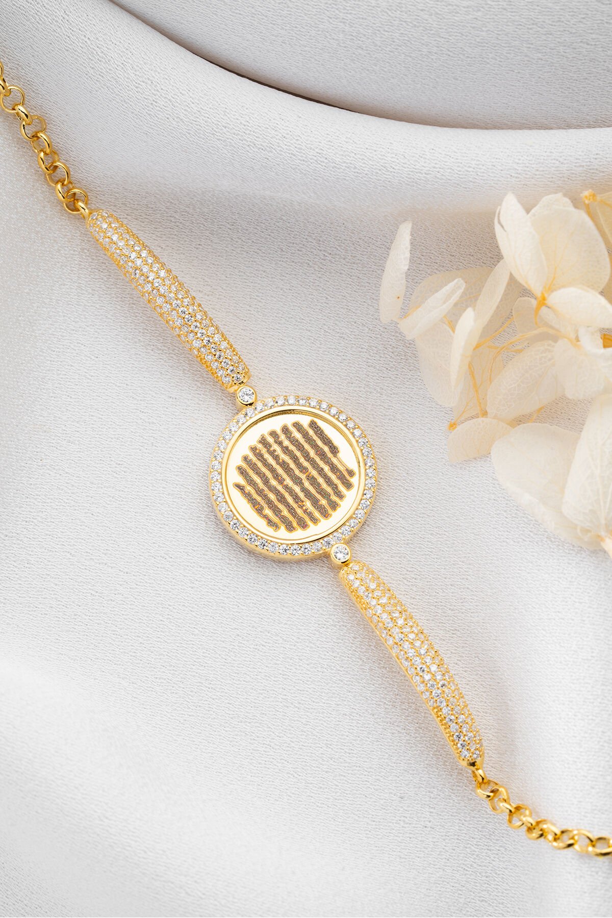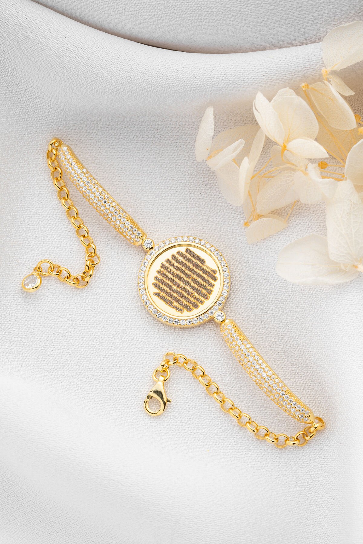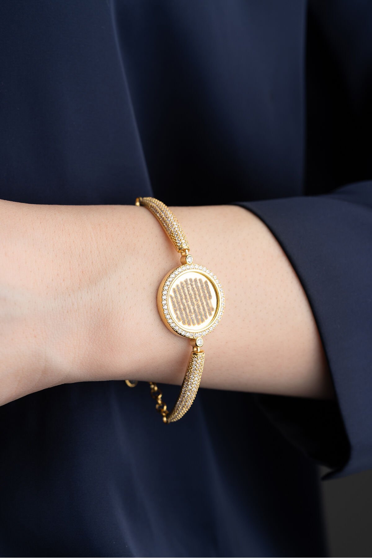 925 Ayar Gümüş Altın Kaplama Ayetel Kursi Dualı Asansörlü Bileklik