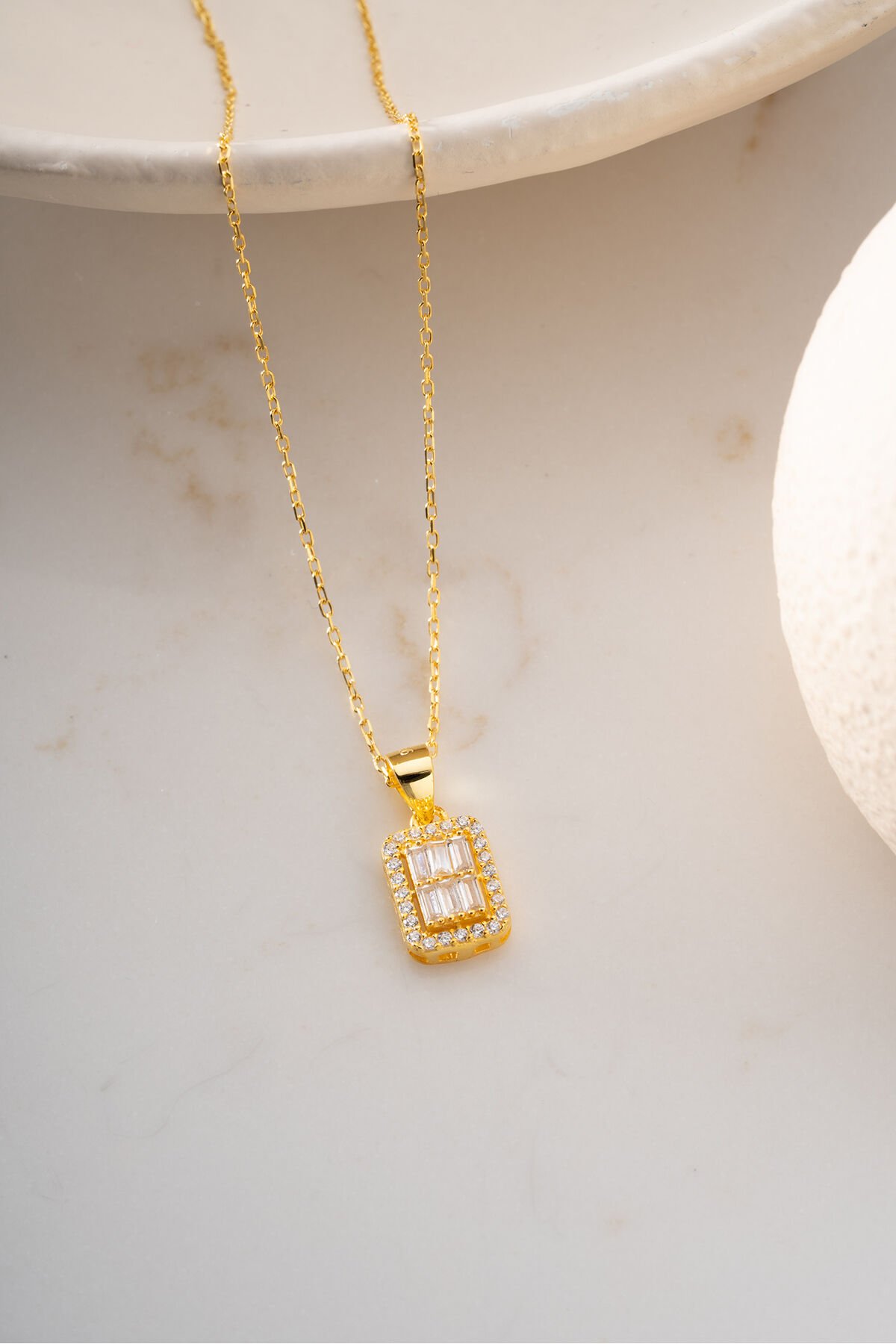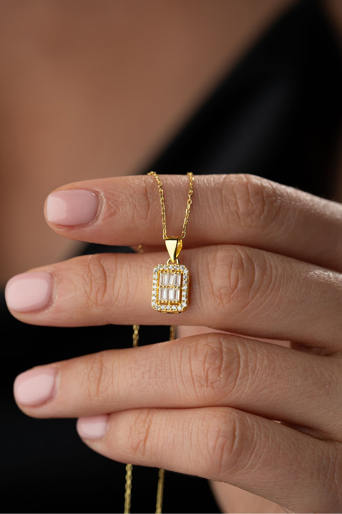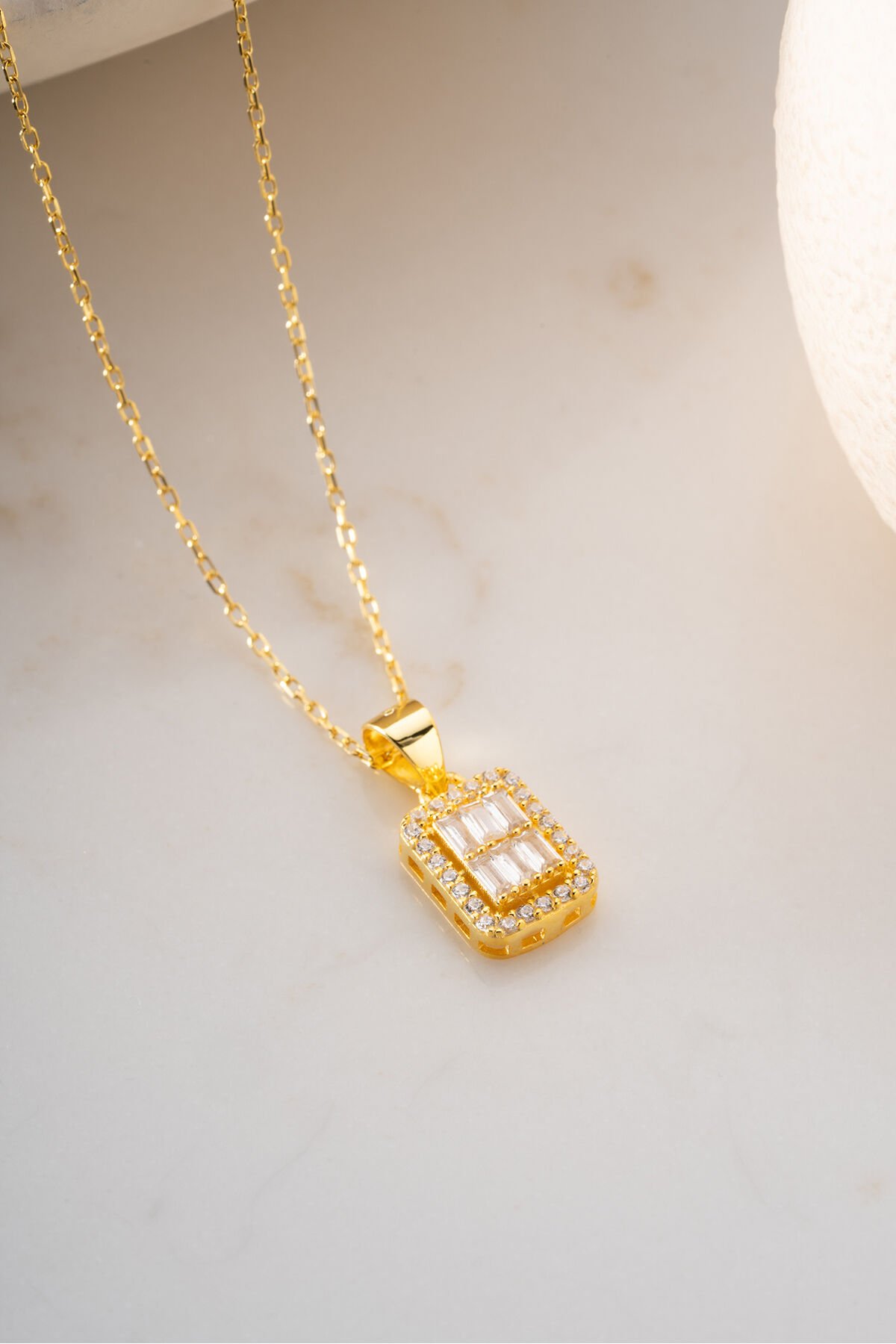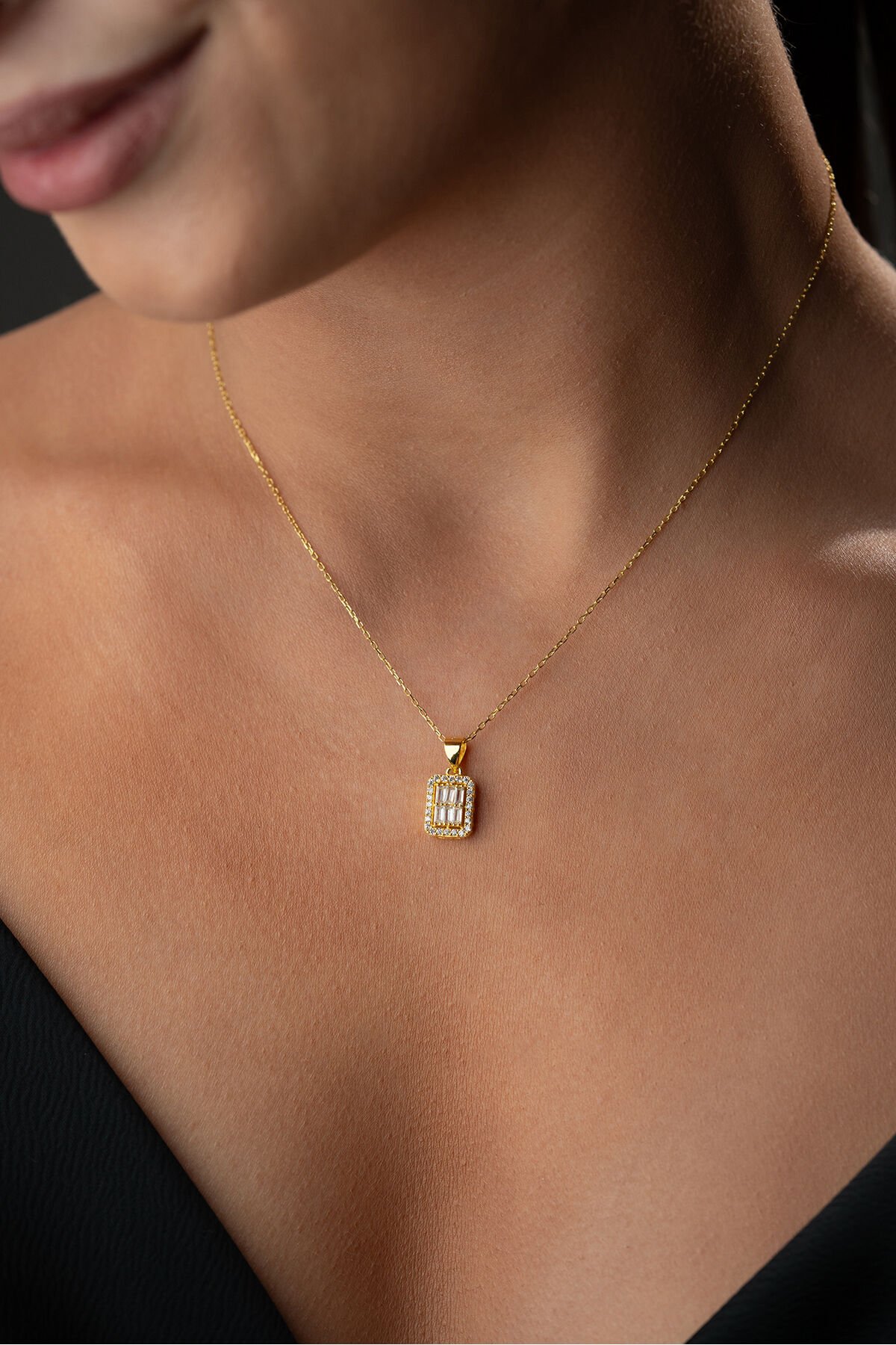 925 Ayar Gümüş Altın Kaplama Baget Kolye