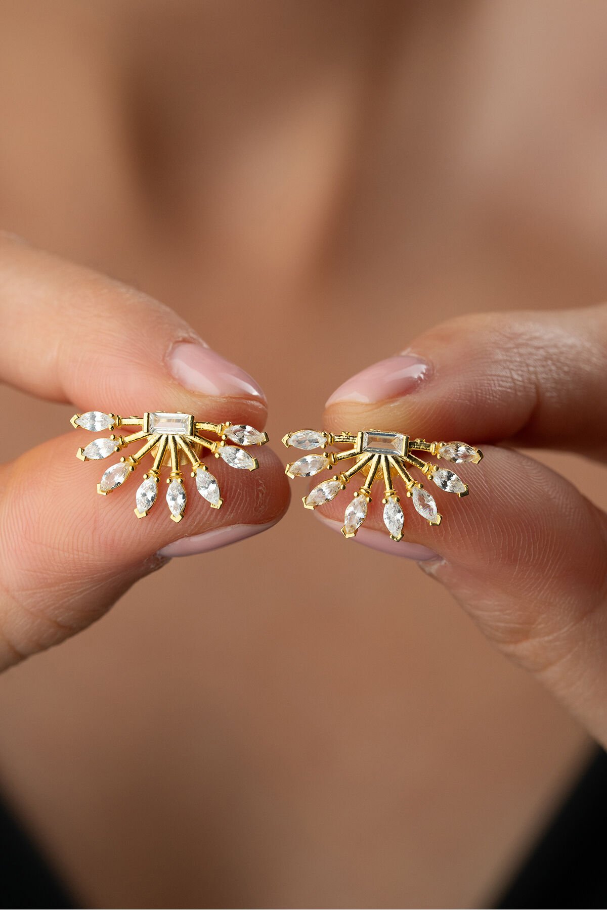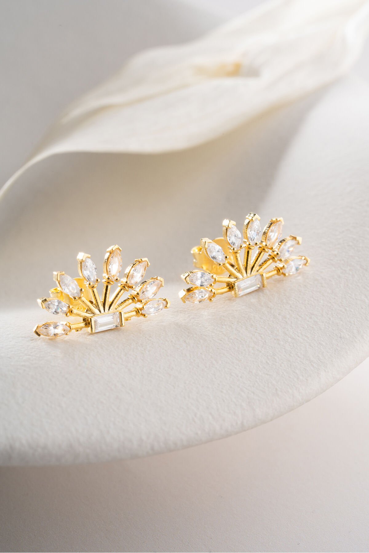 925 Ayar Gümüş Altın Kaplama Baget Yelpaze Küpe