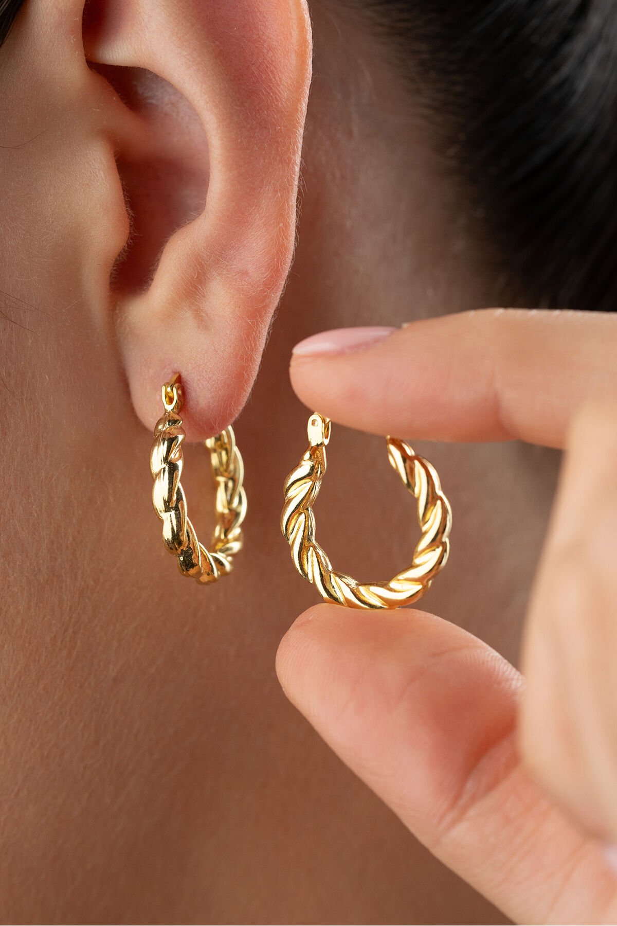925 Ayar Gümüş Altın Kaplama Burgu Küpe