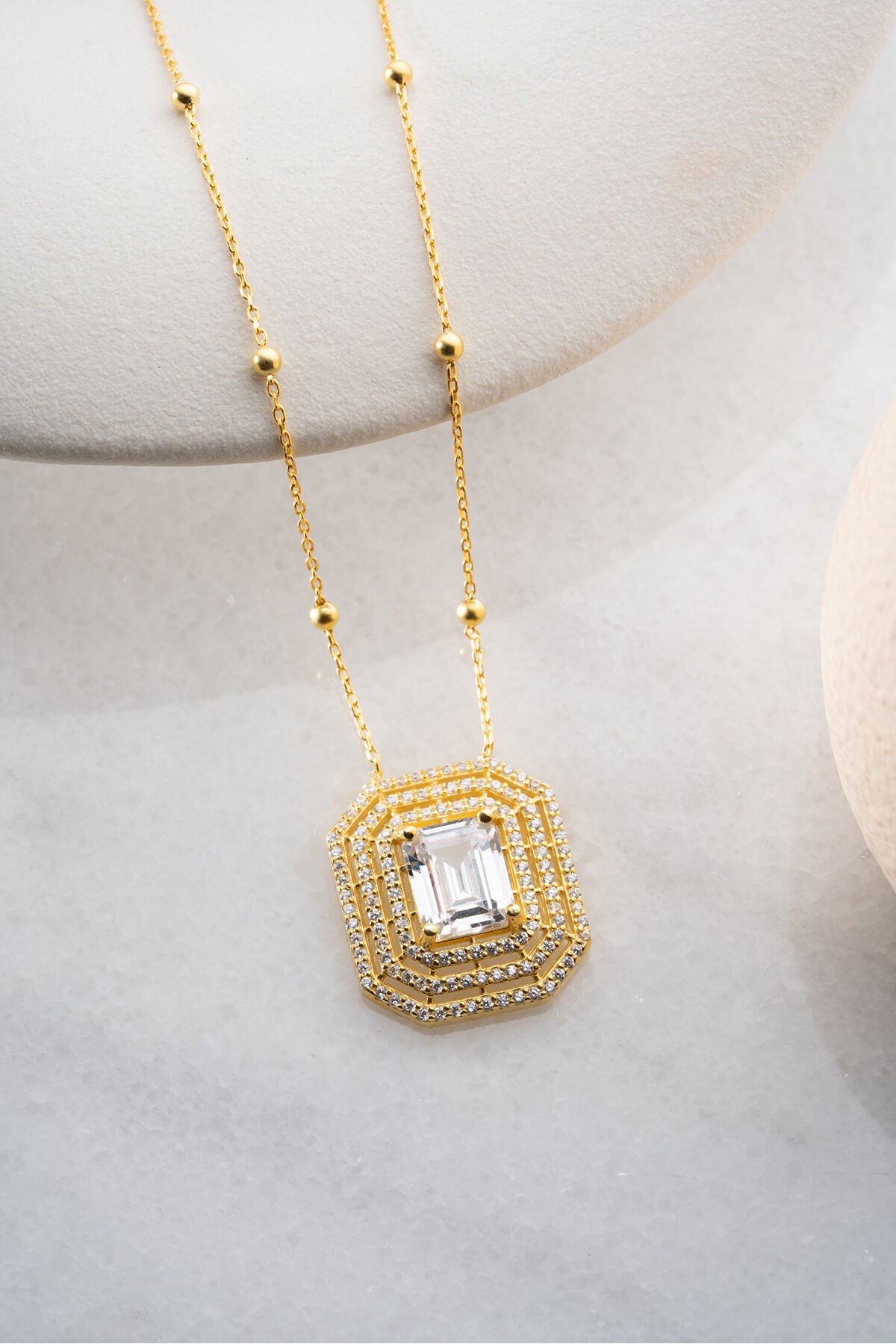 925 Ayar Gümüş Altın Kaplama Büyük Taşlı Baget Pırlanta Model Kolye