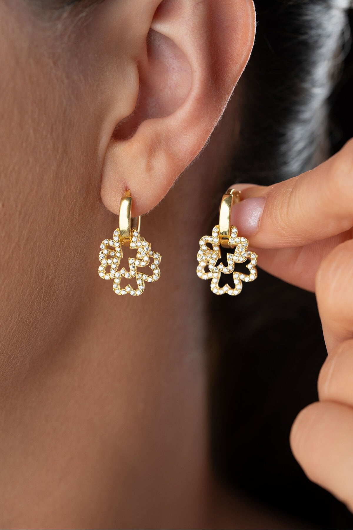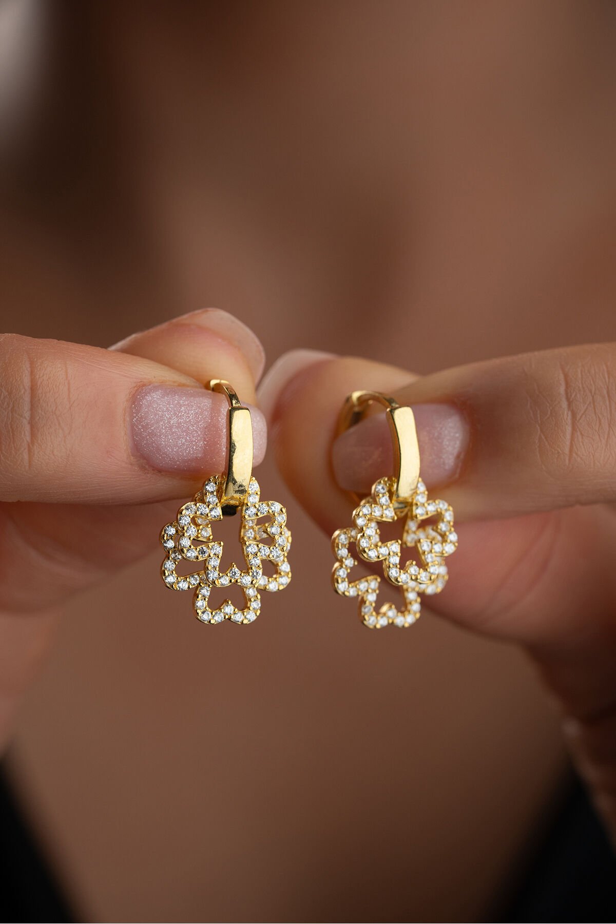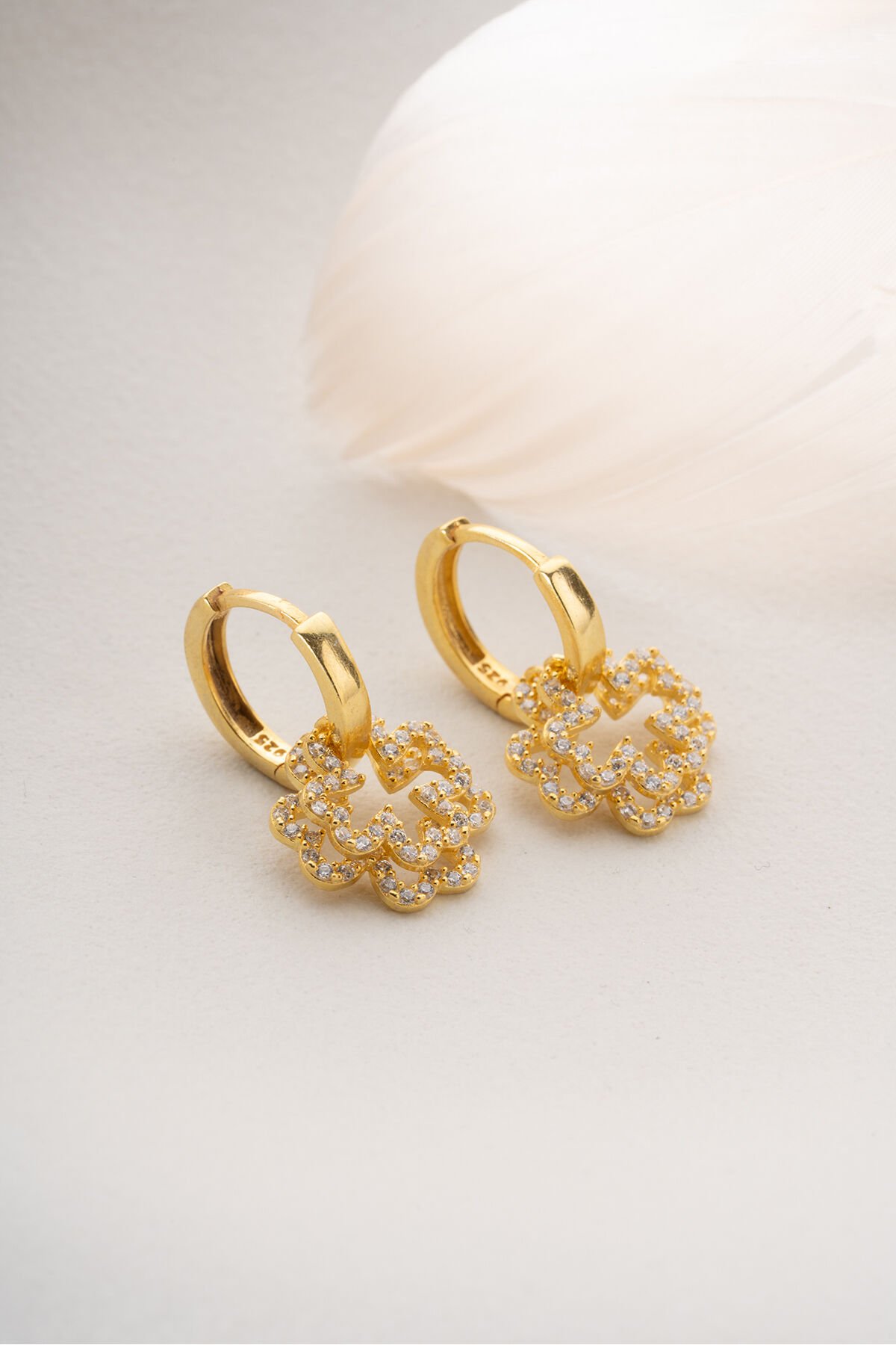 925 Ayar Gümüş Altın Kaplama Çiçek Model Küpe