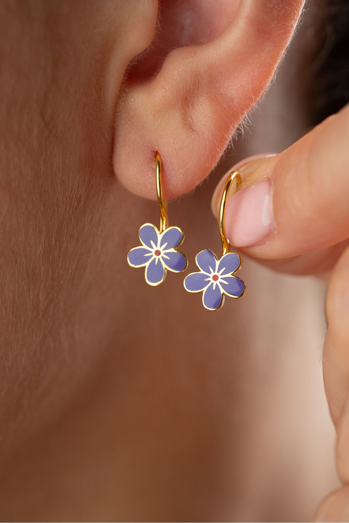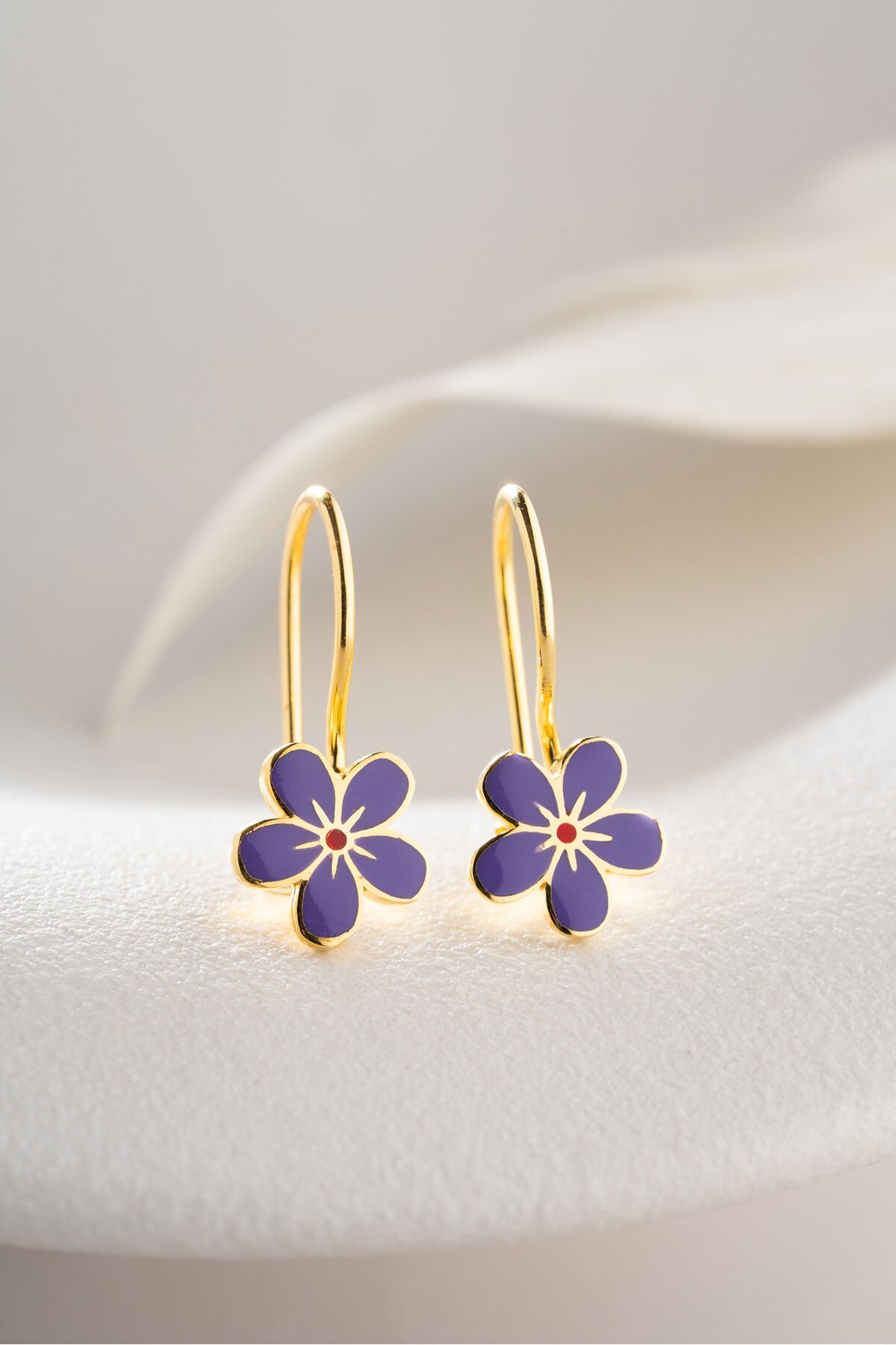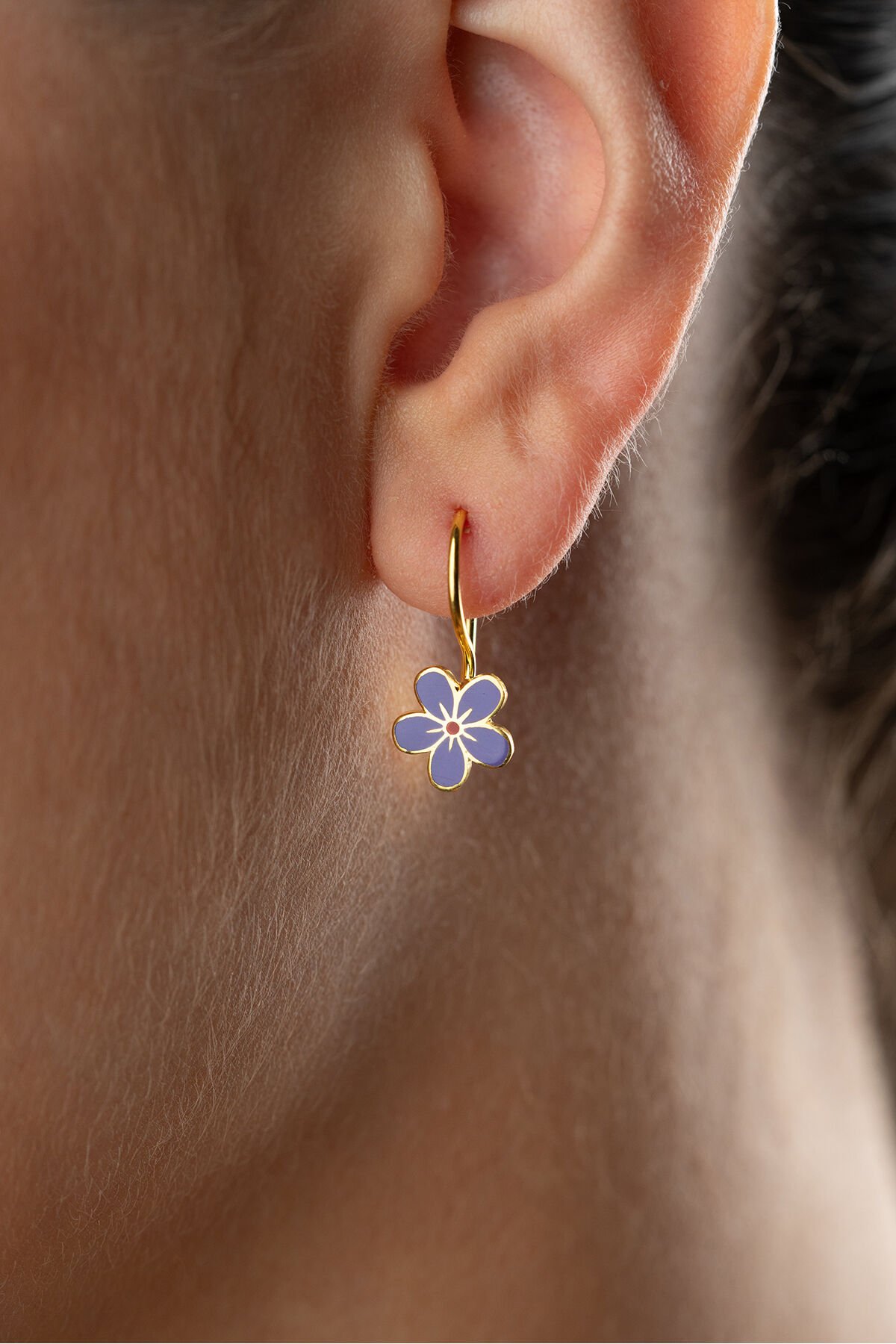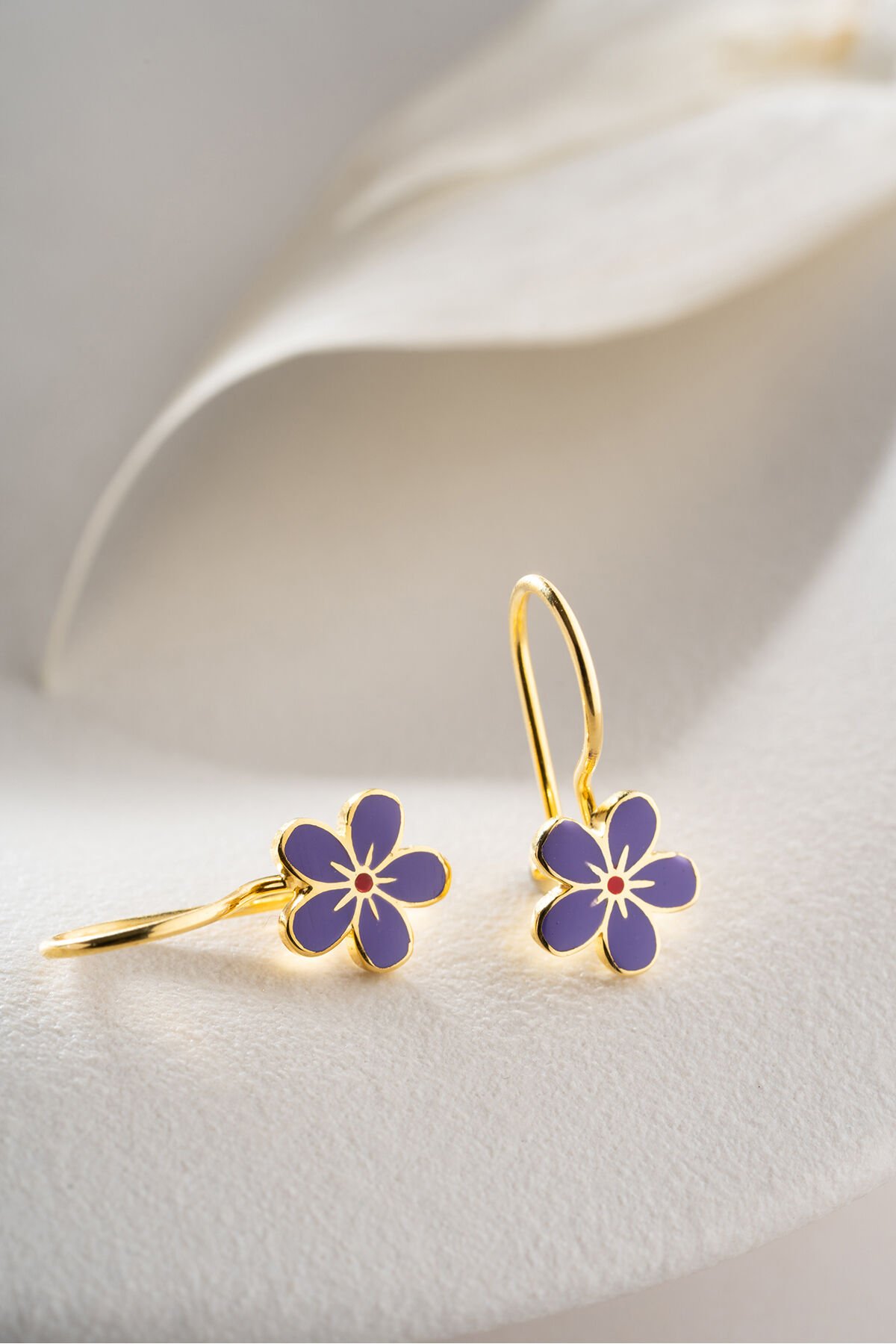 925 Ayar Gümüş Altın Kaplama Çocuk Çiçek Küpe
